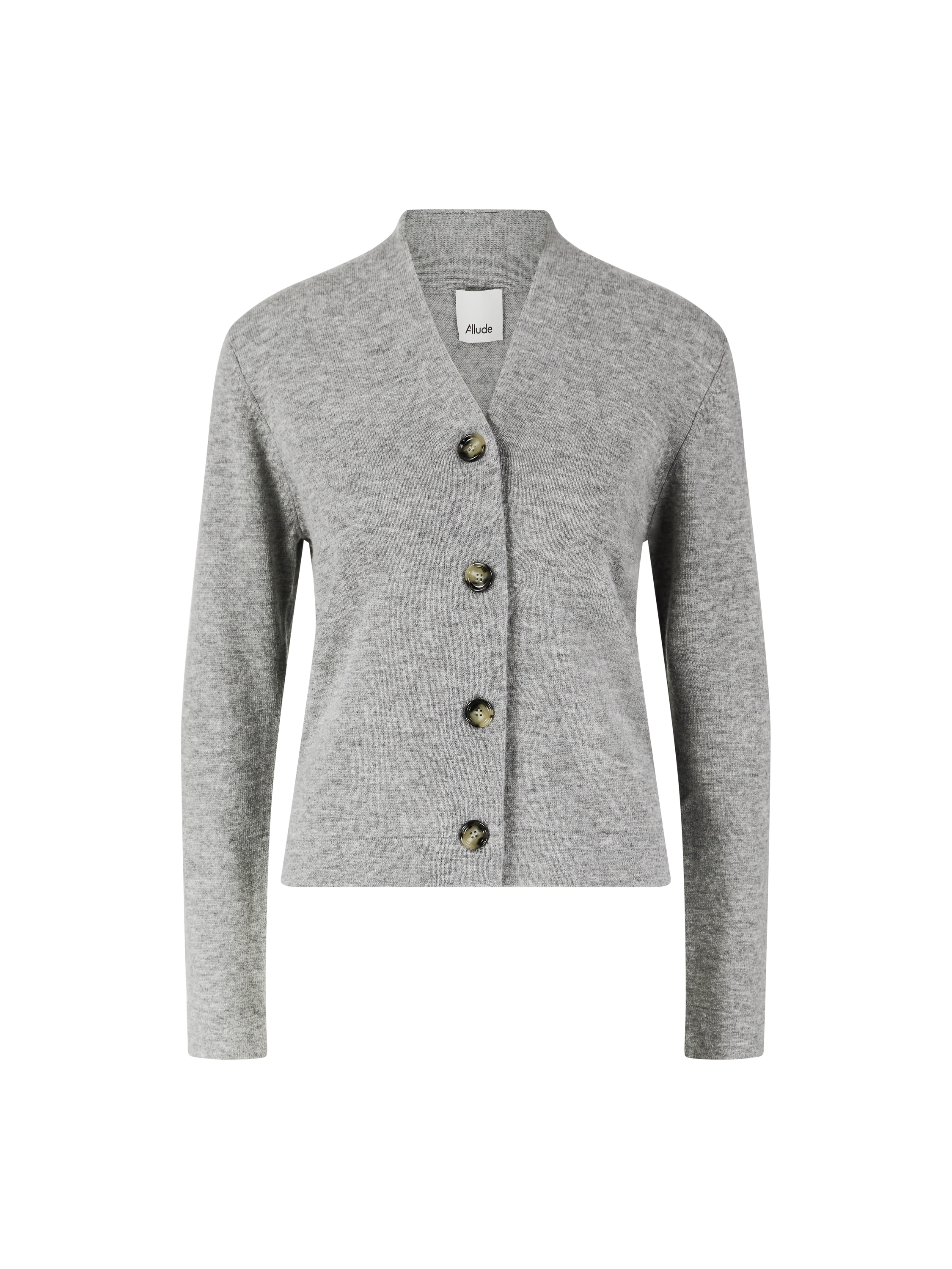 Diese klassische Strickjacke in Grau von Allude wurde aus einer hochwertigen Woll-Cashmere-Mischung gefertigt und besticht durch das klassische Design. Der V-Ausschnitt und die gerade Silhouette vervollständigen das stilvolle Modell.