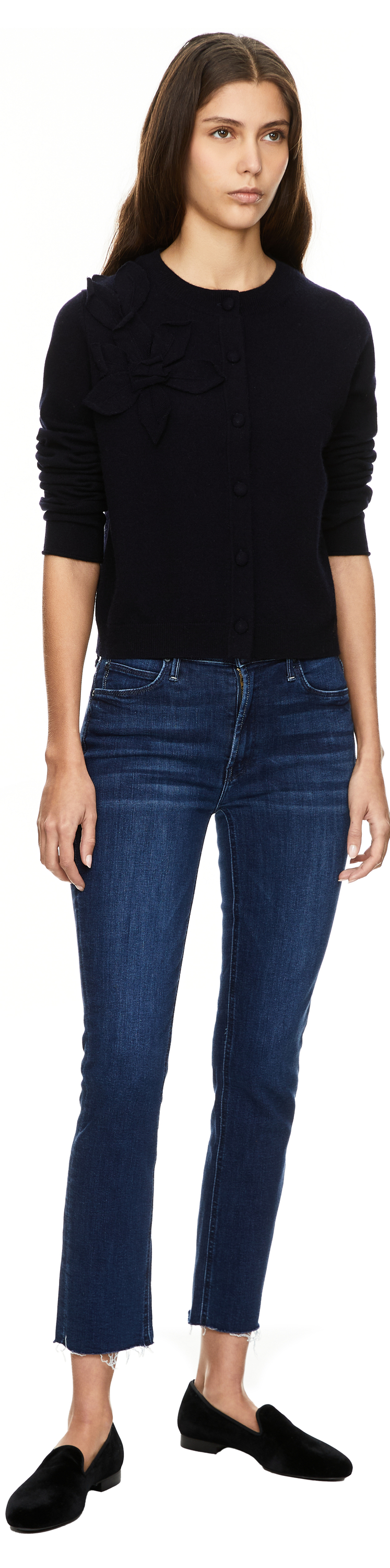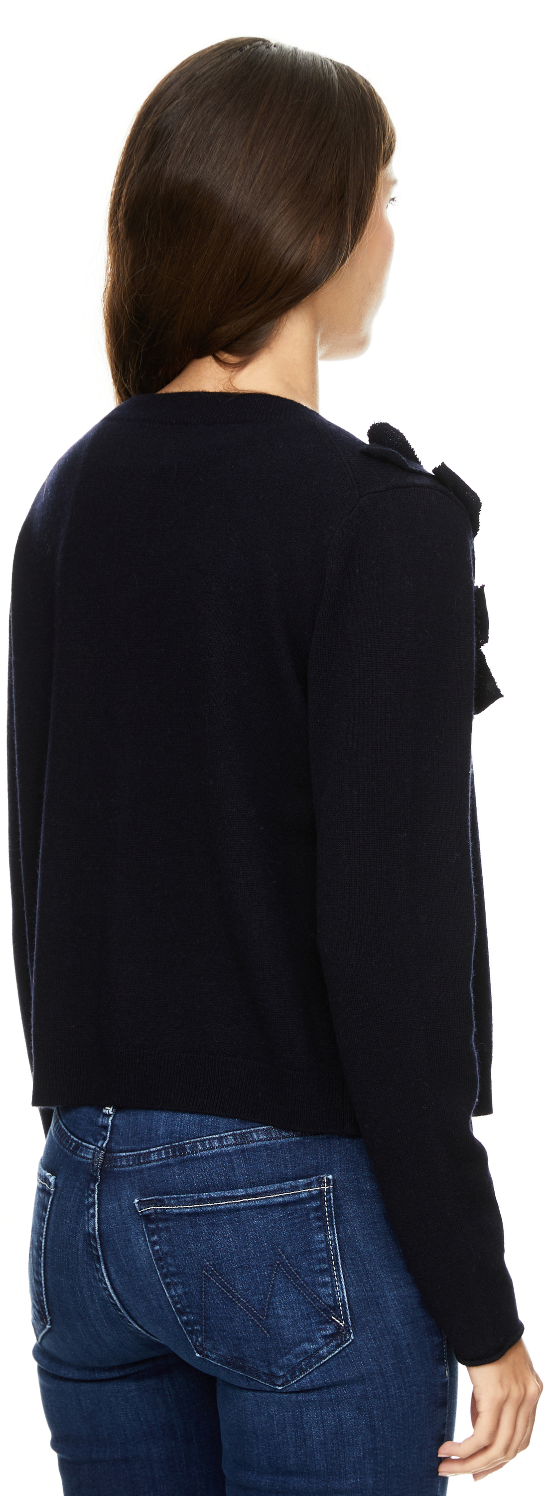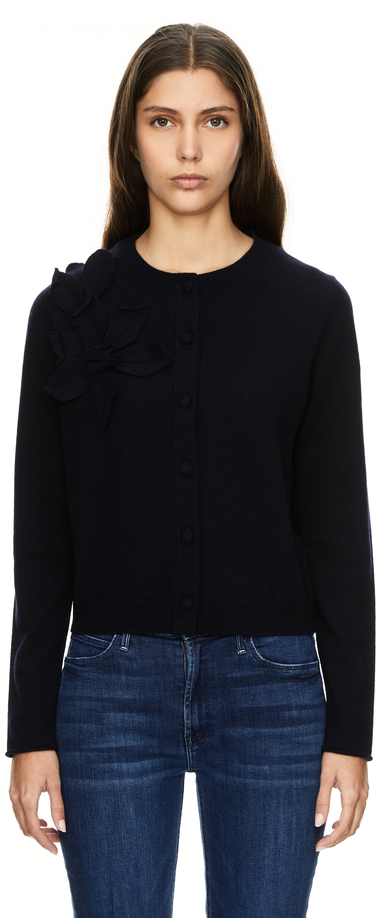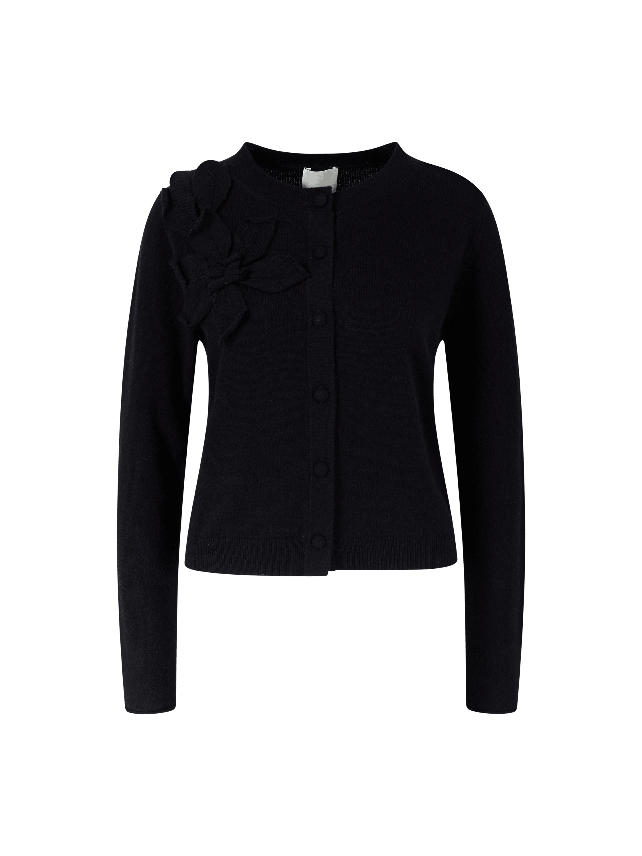 Die Strickjacke 'Lilies' in Marineblau von Allude wurde aus einer Woll-Cashmere-Mischung gefertigt und besticht durch das Blumen-Detail. Der Rundhalsausschnitt, die langen Ärmel und der Rippstrick am Saum vollenden diesen Klassiker.