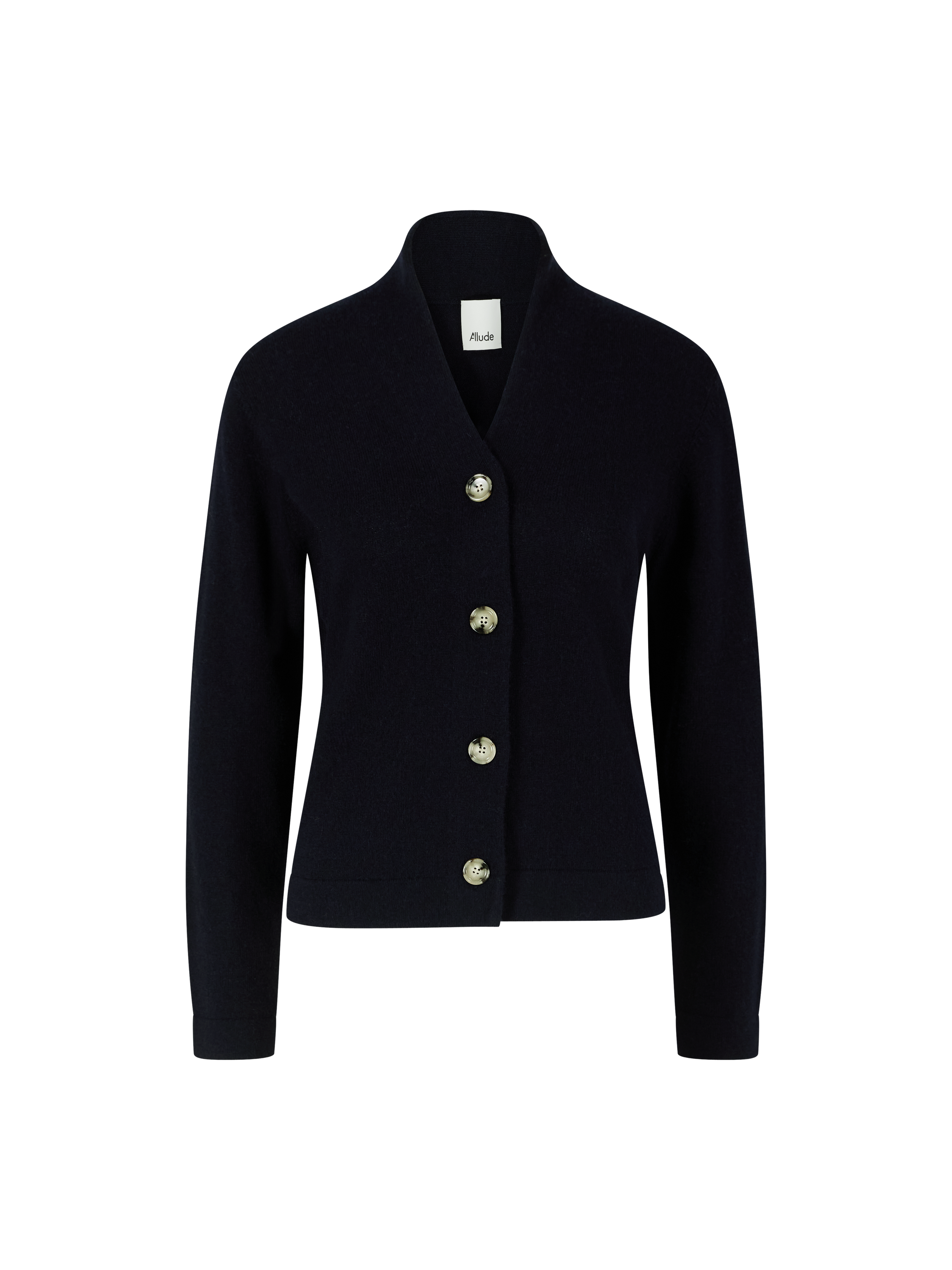 Diese klassische Strickjacke in Marineblau von Allude wurde aus einer hochwertigen Woll-Cashmere-Mischung gefertigt und besticht durch das klassische Design. Der V-Ausschnitt und die gerade Silhouette vervollständigen das stilvolle Modell.