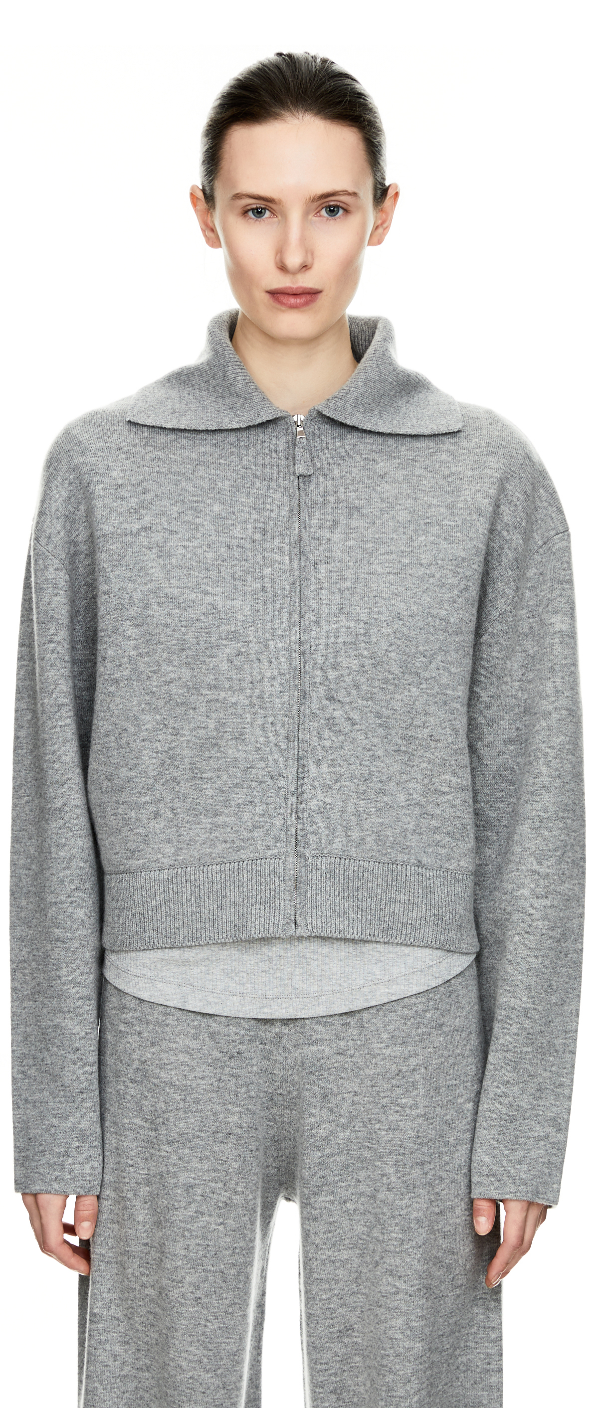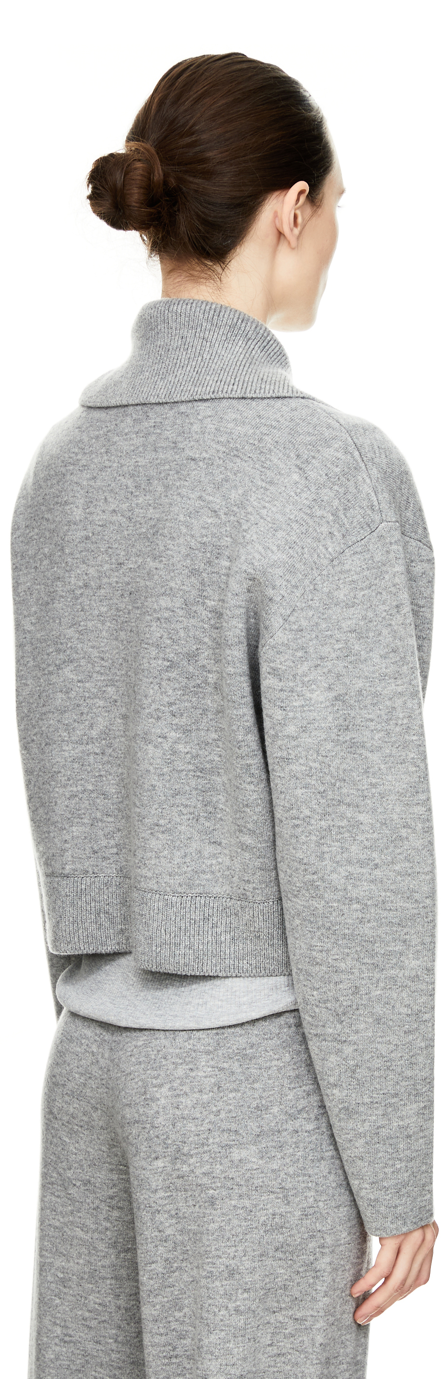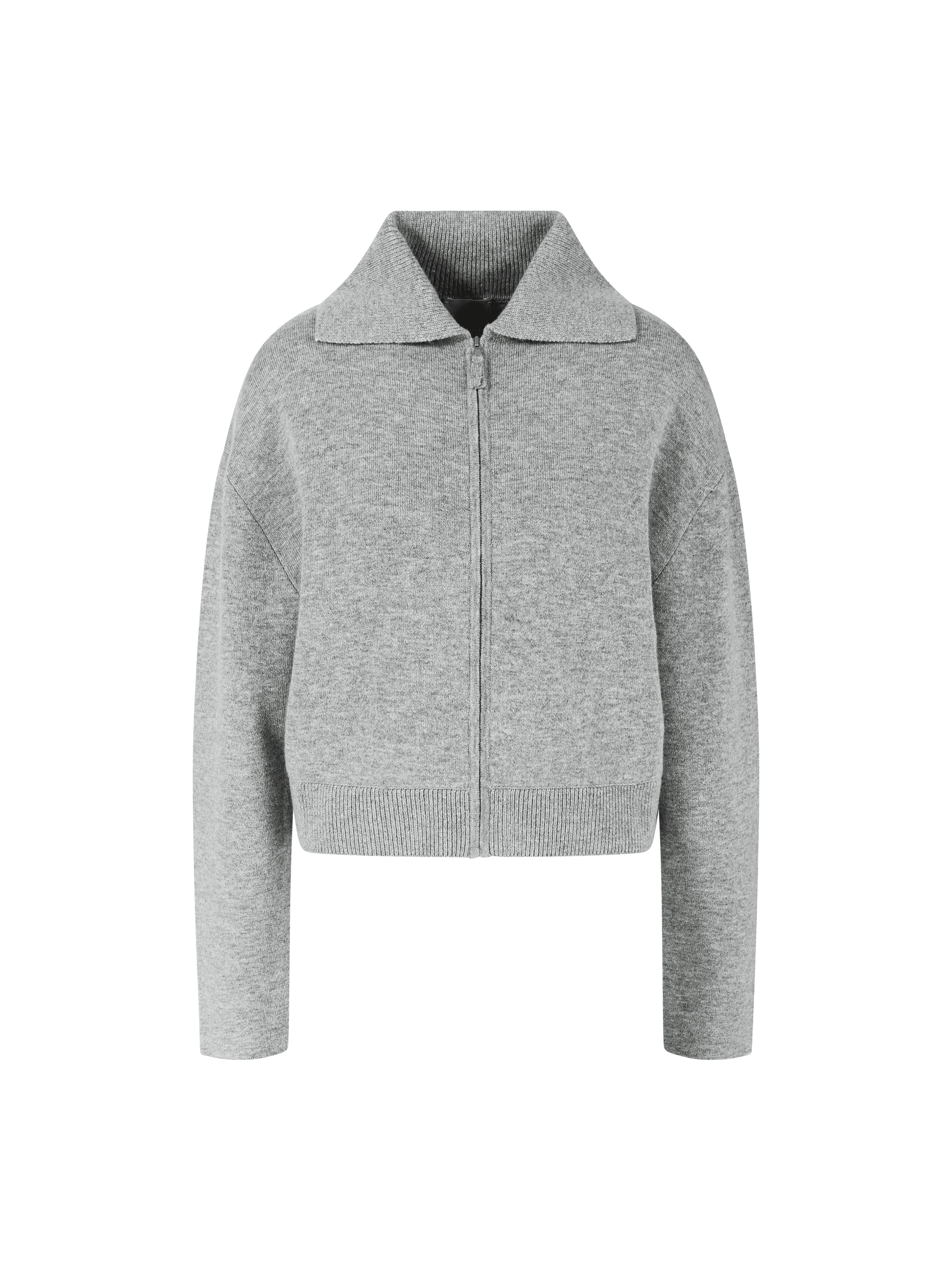 Diese Strickjacke in Grau von Allude wurde aus einer hochwertigen Woll-Cashmere-Mischung gefertigt und besticht durch die melierte Optik. Der Rippstrick, der hohe Kragen mit Zipper und die weiche Haptik vervollständigen das stilvolle Modell.