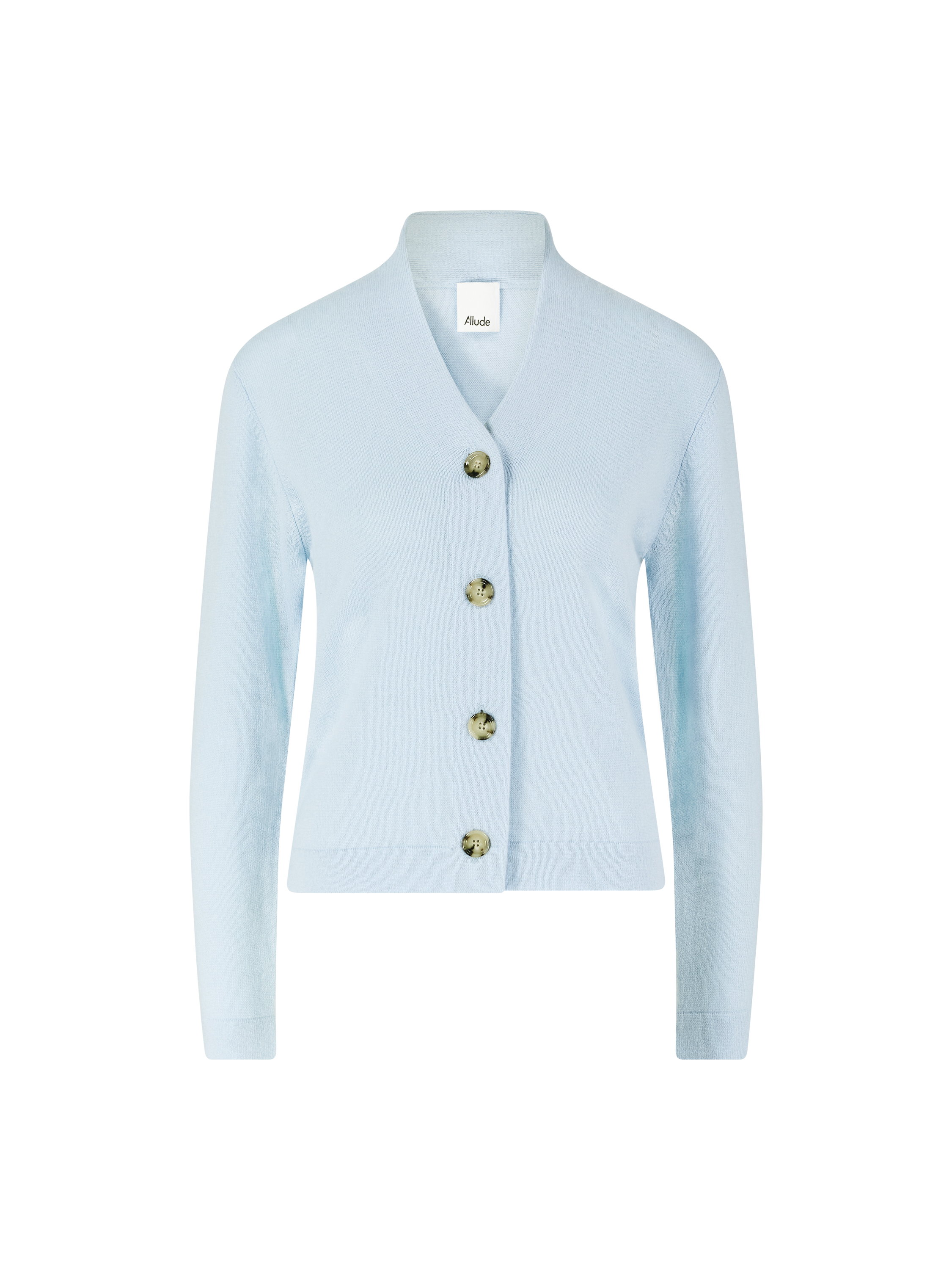 Diese klassische Strickjacke in Hellblau von Allude wurde aus einer hochwertigen Woll-Cashmere-Mischung gefertigt und besticht durch das klassische Design. Der V-Ausschnitt und die gerade Silhouette runden das stilvolle Modell ab.