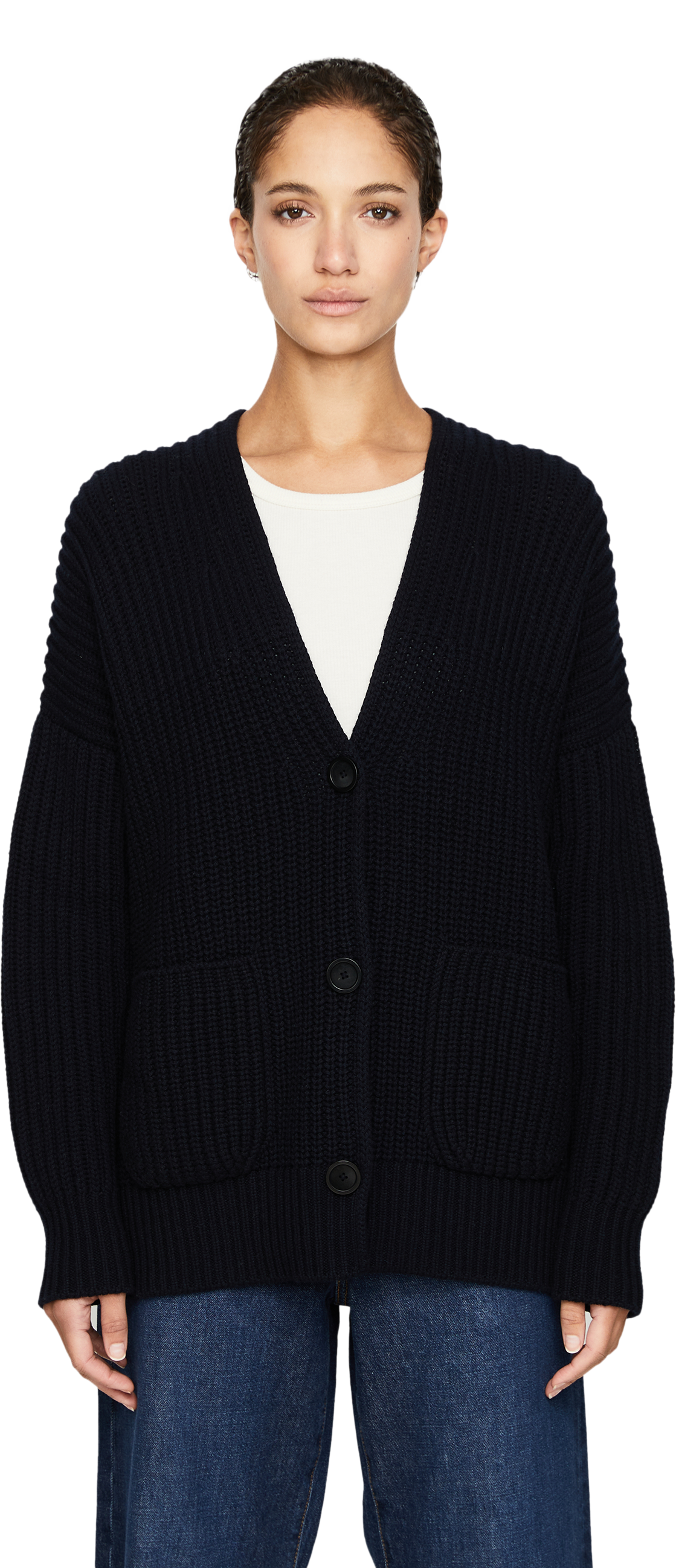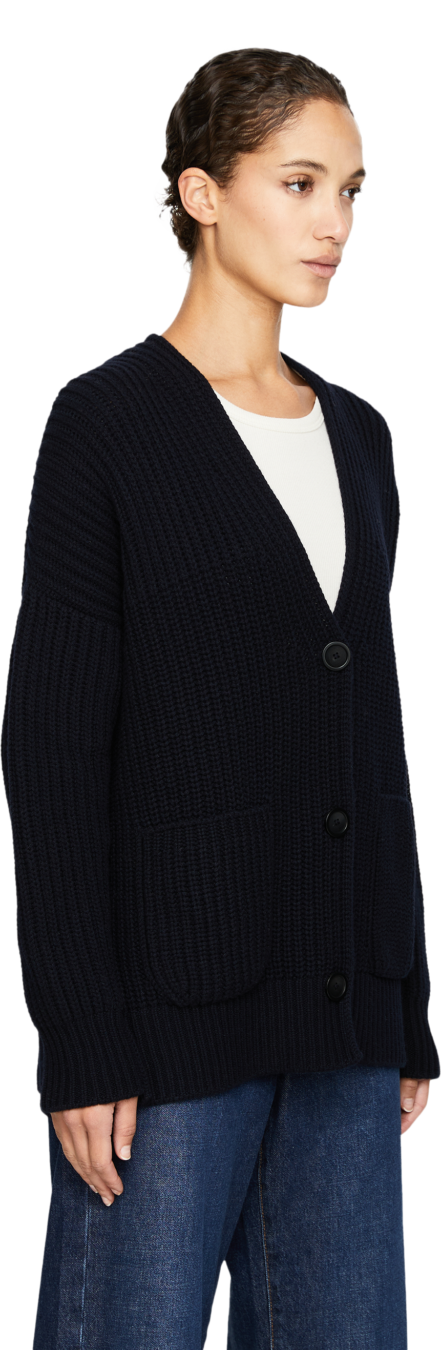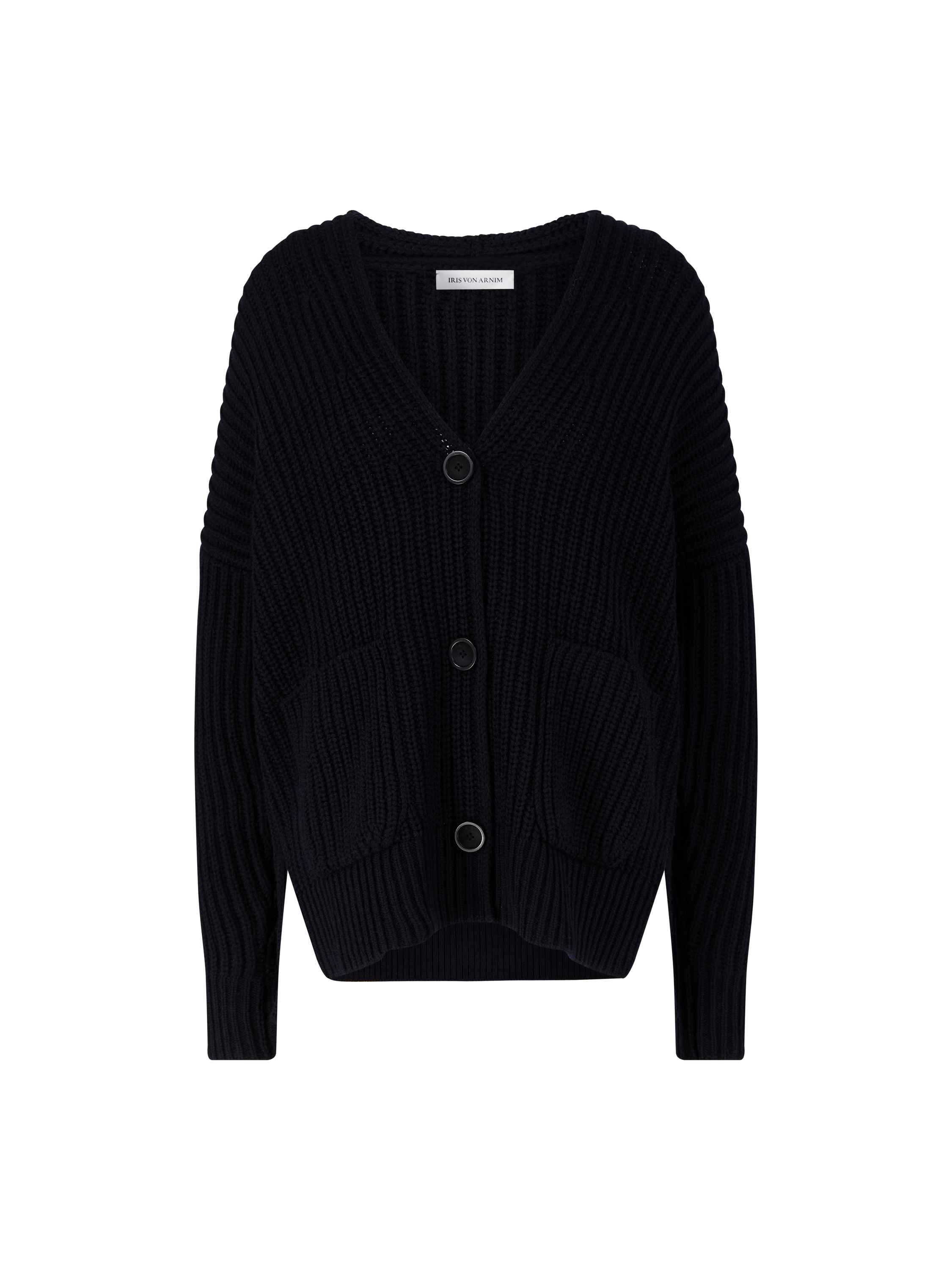 Die Strickjacke 'Aubrieta' in Navy von Iris von Arnim wurde aus reinem Cashmere gefertigt und besticht durch die weiche Haptik. Die lässige Passform und die aufgesetzten Taschen machen dieses Modell zu einem echten Hingucker. Der V-Ausschnitt und die Knopfleiste mit Logo-Prägung vollenden das Design.