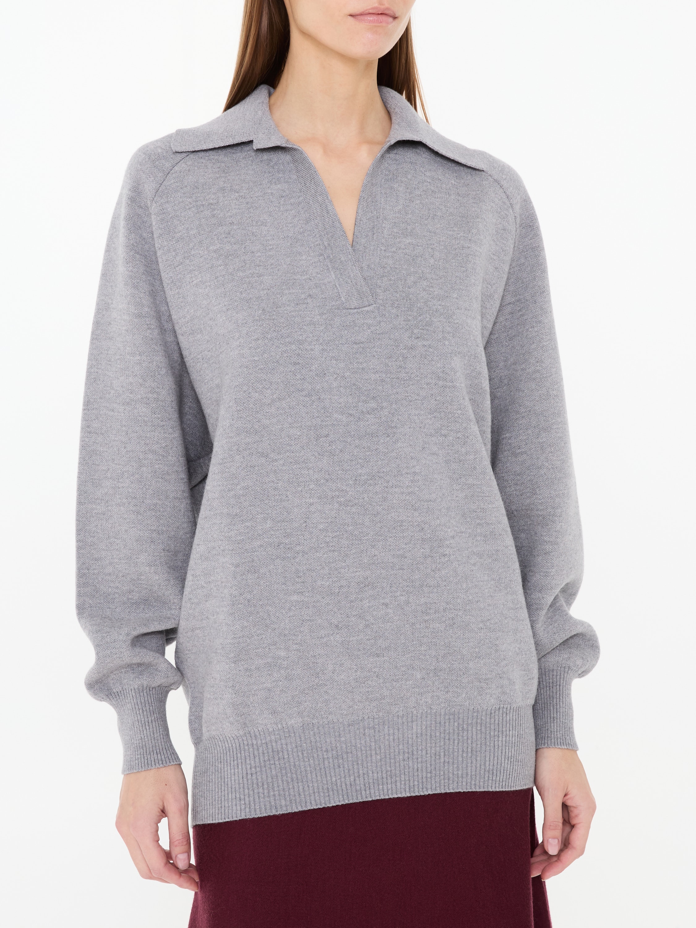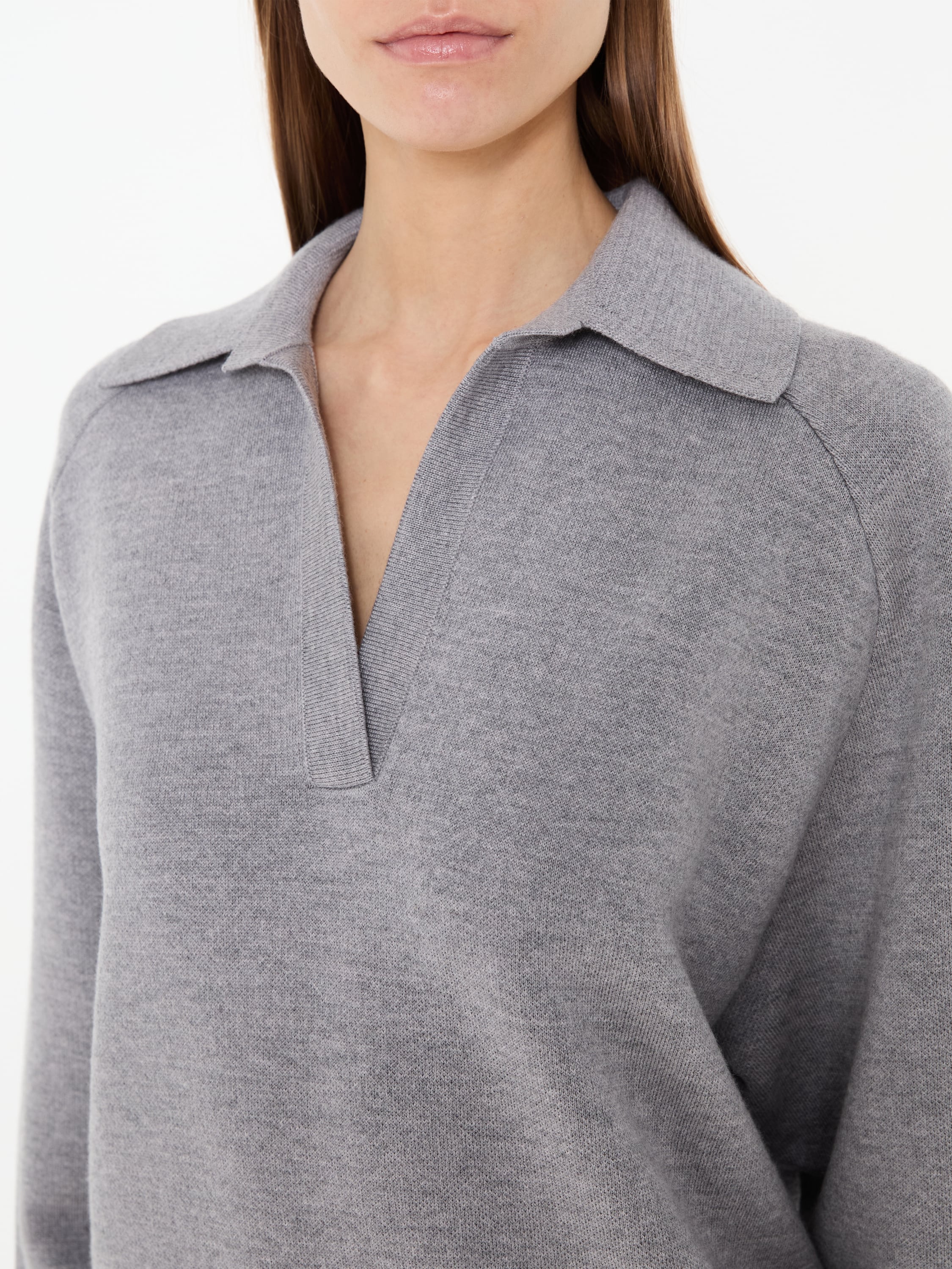 Der Pullover 'Jonas' in Grau von Khaite wurde aus einer hochwertigen Wollmischung gefertigt und besticht durch den V-Ausschnitt. Der Umlegekragen und die weiche Haptik vollenden dieses Modell.