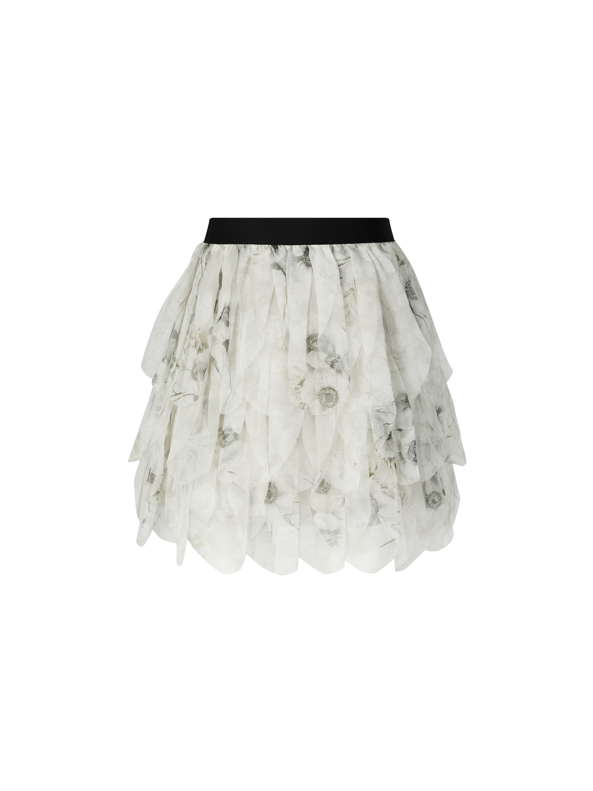 Der Minirock 'Talco' in Hellgrau von Max Mara wurde aus hochwertiger Seide gefertigt und besticht durch den fließenden, kurzen Schnitt aus bedrucktem Chiffon. Die niedrige Taille, der elastische Bund sowie die Volant-Details verleihen dem Modell seinen besonderen Charakter.