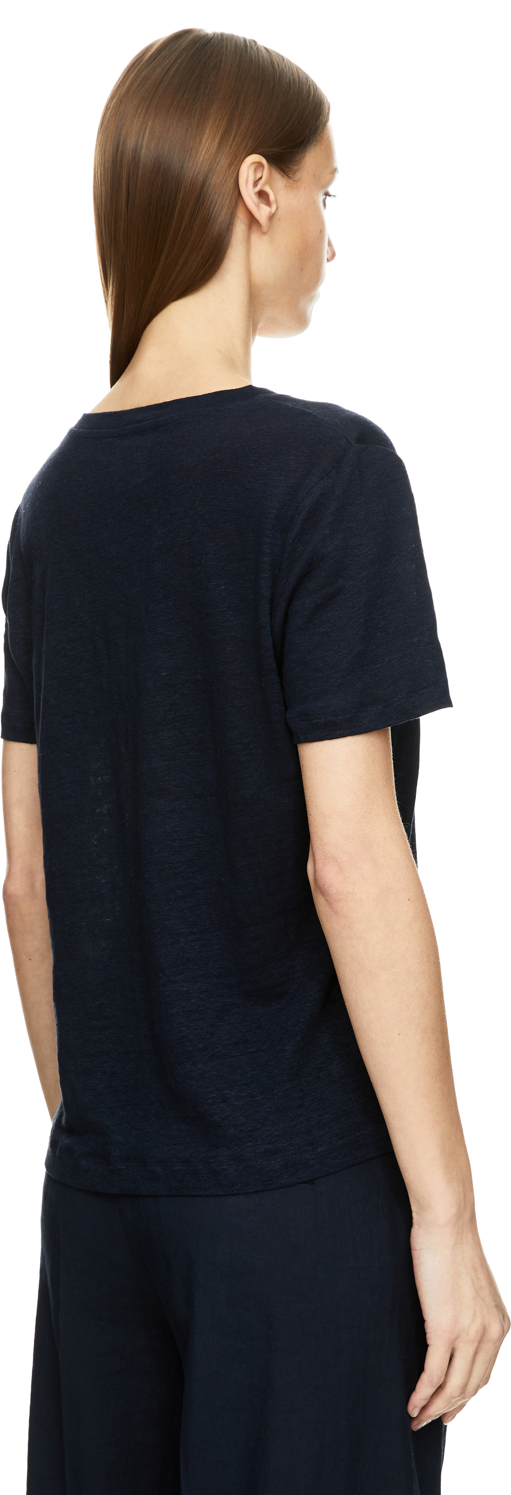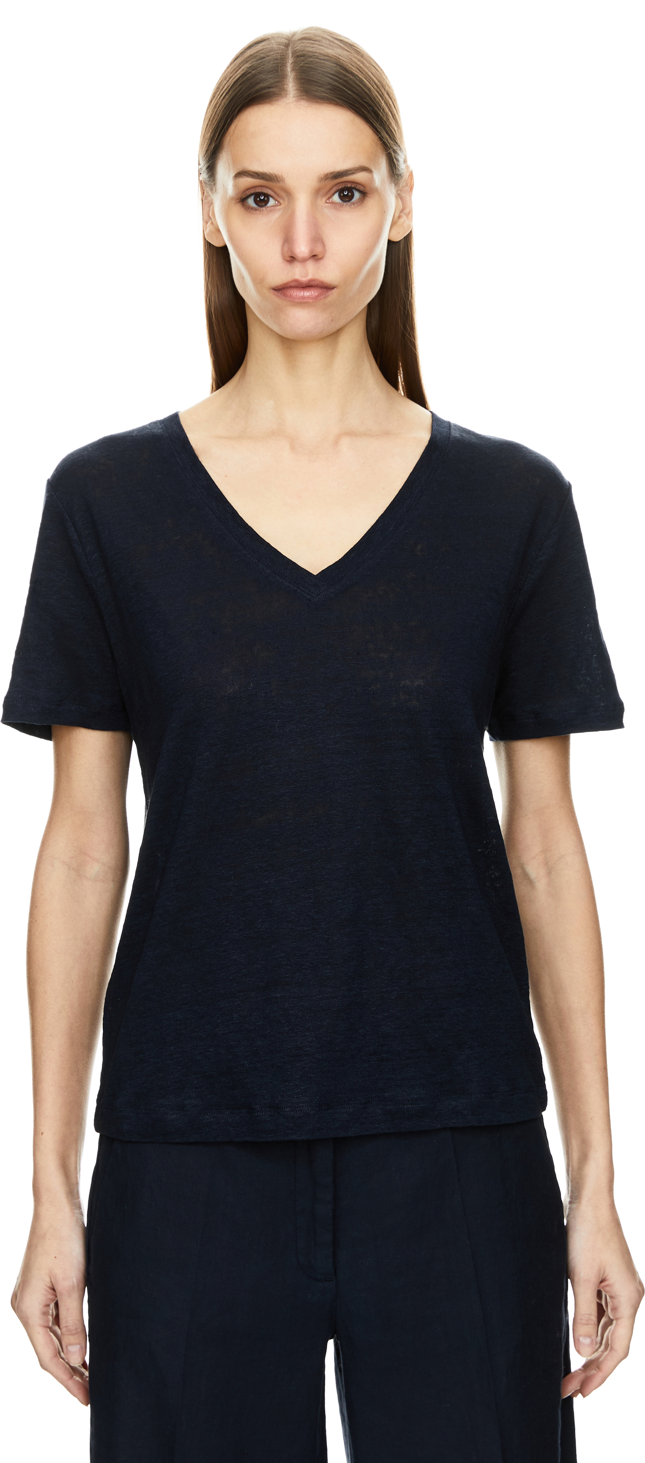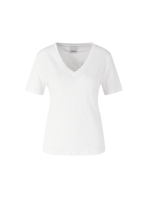 Dieses T-Shirt in Marineblau von Allude wurde aus hochwertigem Leinen gefertigt und besticht durch die semitransparente Optik. Die gerade Passform und der V-Ausschnitt machen das minimalistische Modell zu einem besonderen Klassiker.