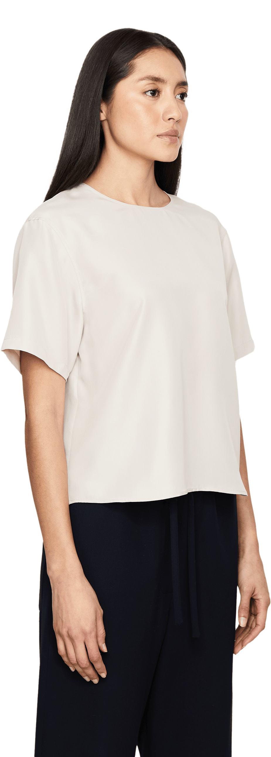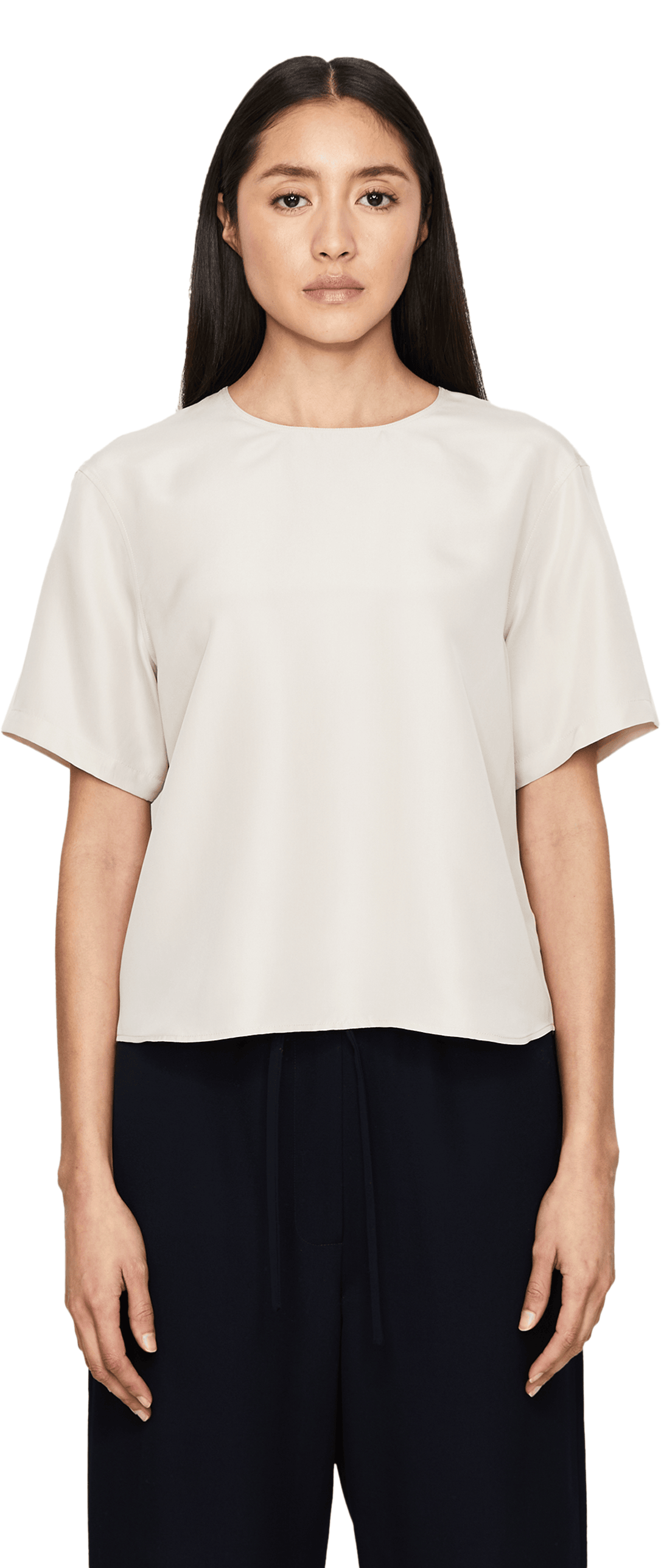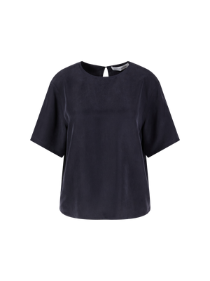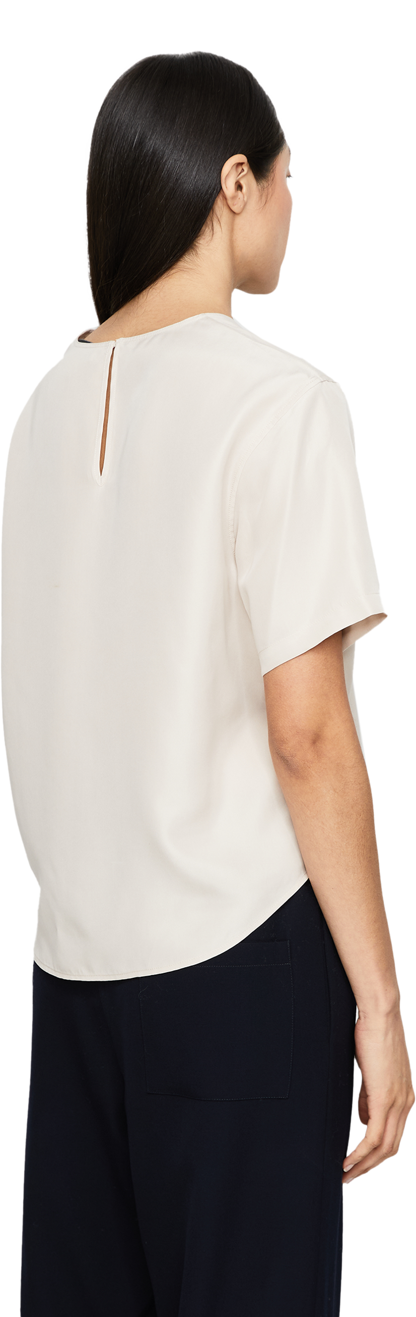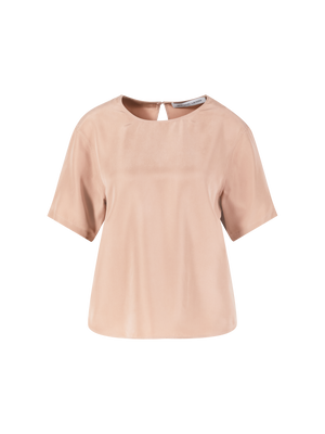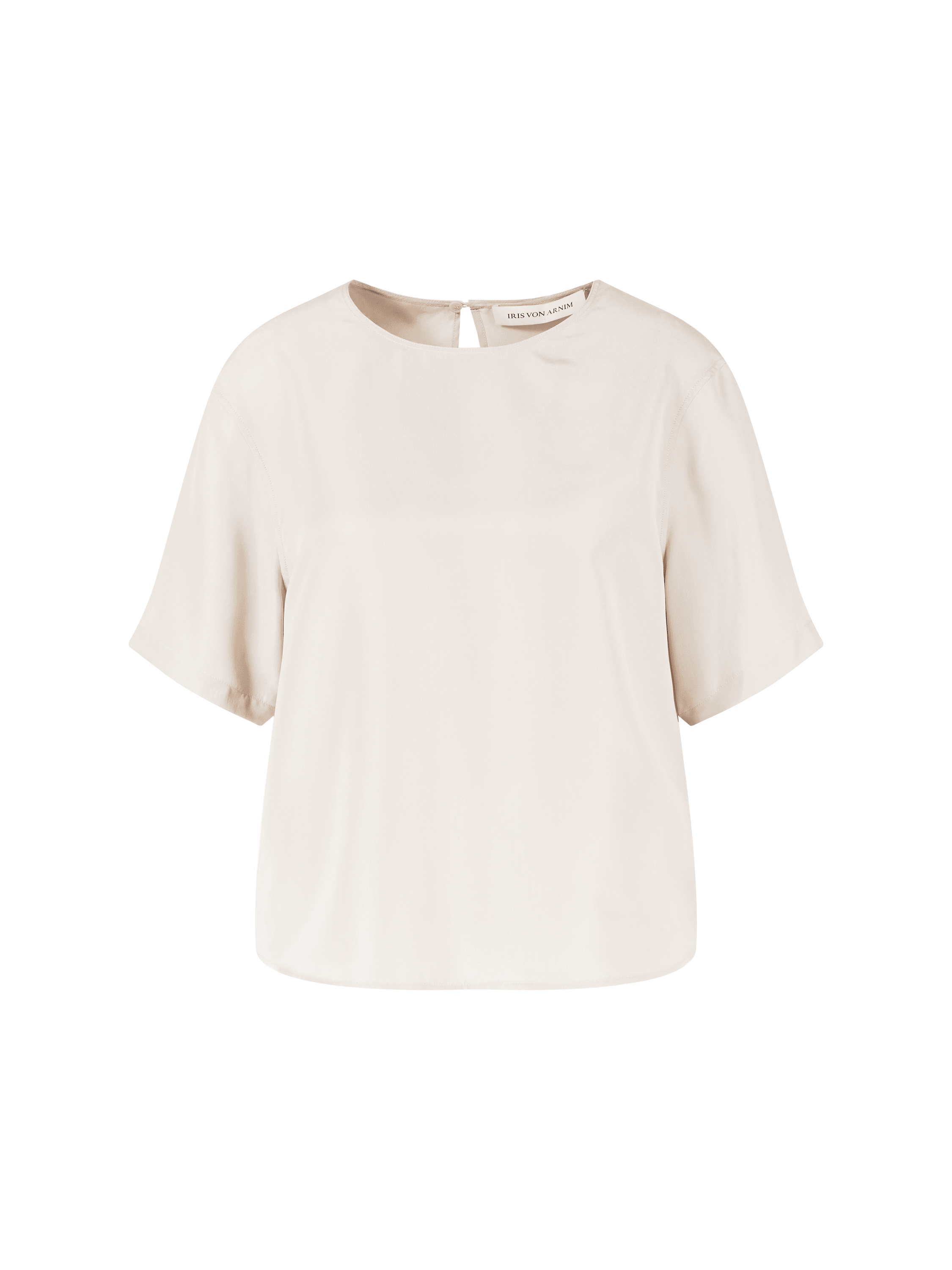 Das Shirt 'Narcissa' in Alabaster von Iris von Arnim wurde aus hochwertiger Seide gefertigt und besticht durch den fließenden Fall. Der Rundhalsausschnitt, der rückseitige Knopfverschluss und die kurzen Ärmel verleihen dem Modell ein modernes Aussehen.