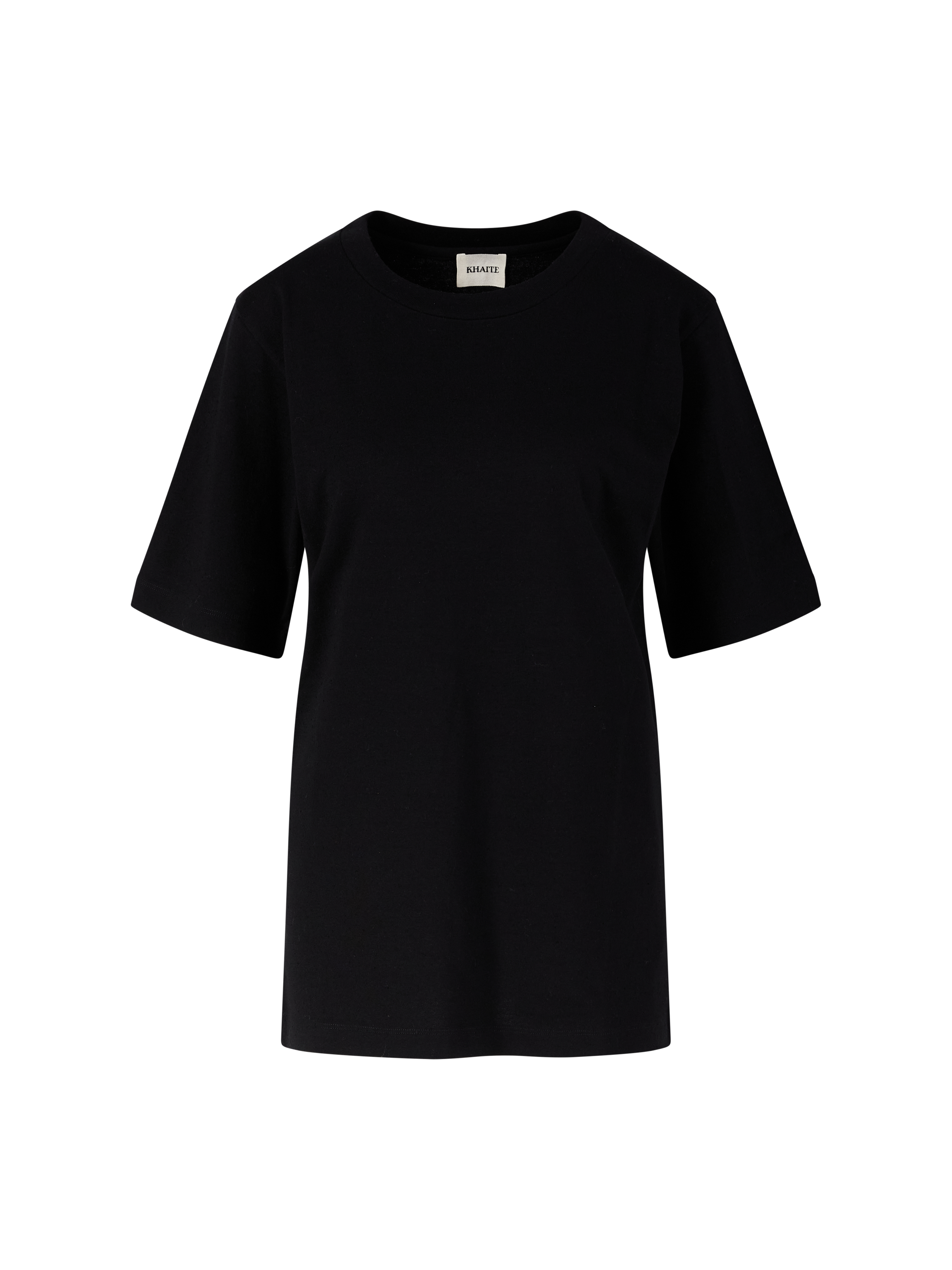 Das T-Shirt 'Allen' in Schwarz von Khaite wurde aus hochwertiger Seide gefertigt und besticht durch den fließenden Fall. Die lange Passform und die überschnittenen Schultern verleihen dem Design eine moderne Silhouette. Die feine Materialstruktur unterstreicht die hochwertige Verarbeitung und macht das Modell zu einem vielseitigen Essential.