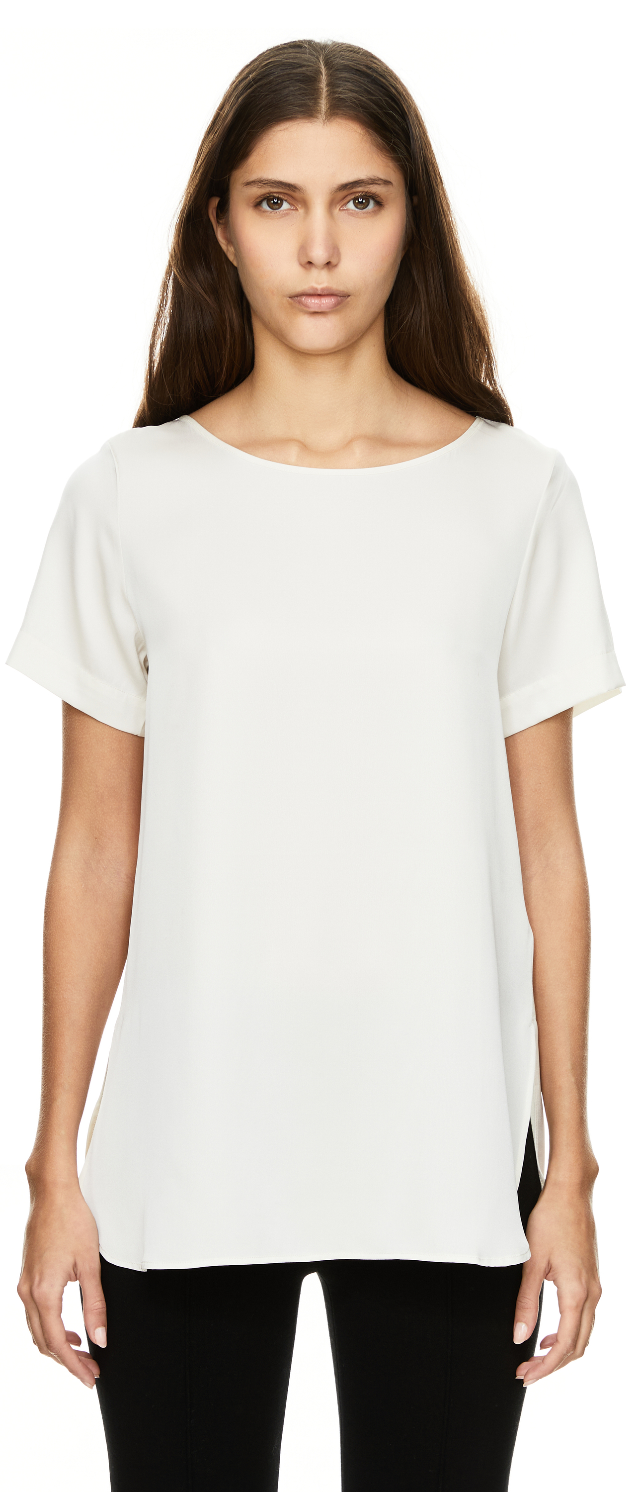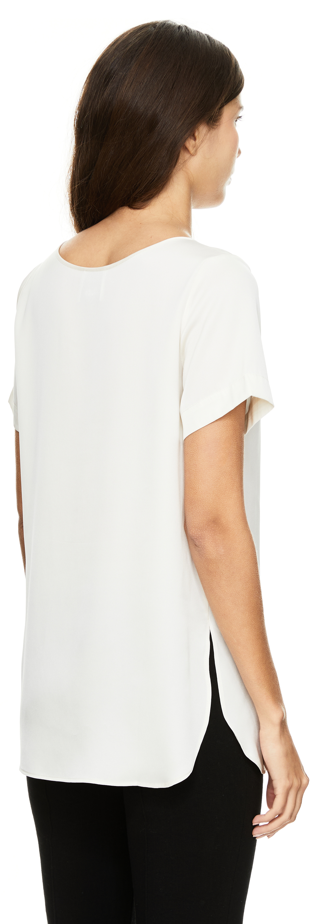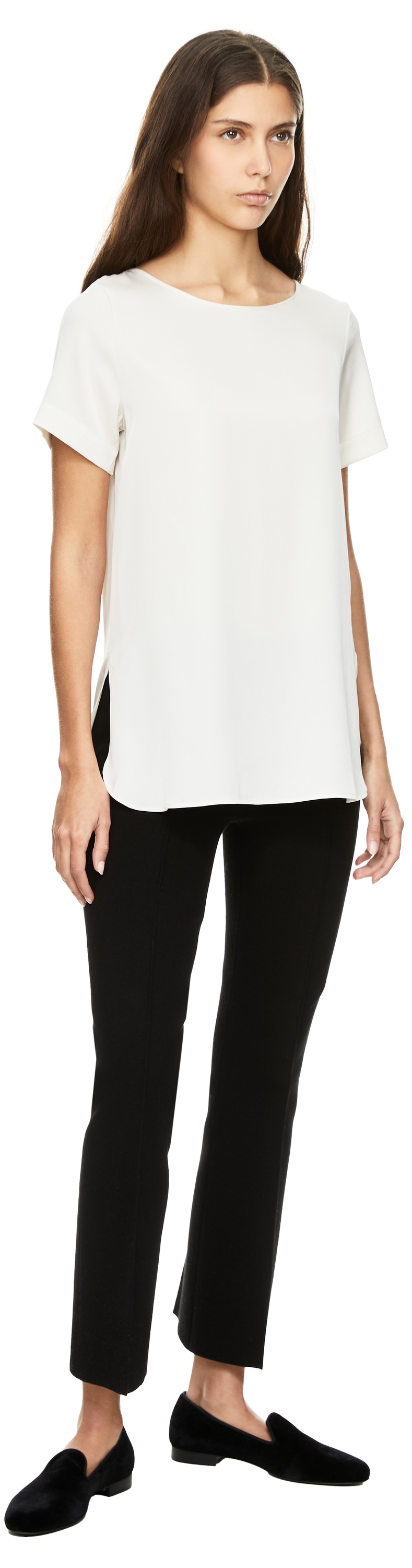 Dieses T-Shirt in Crème von Allude wurde aus hochwertiger Seide gefertigt und besticht durch den zeitlosen Look. Die leichte, fließende Silhouette verleiht dem Modell elegante Leichtigkeit, während die seitlichen Schlitze für einen modernen Akzent sorgen. Das Design ist vielseitig kombinierbar und dient als perfekter Klassiker.