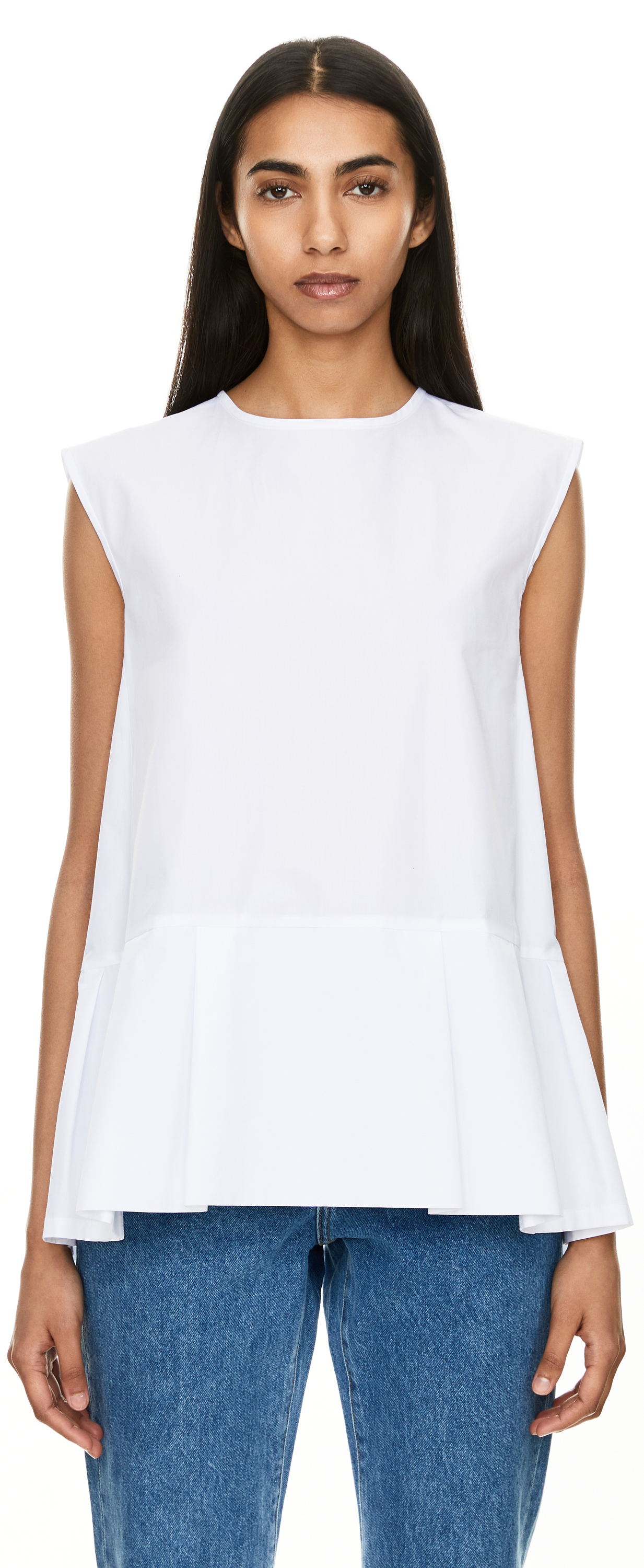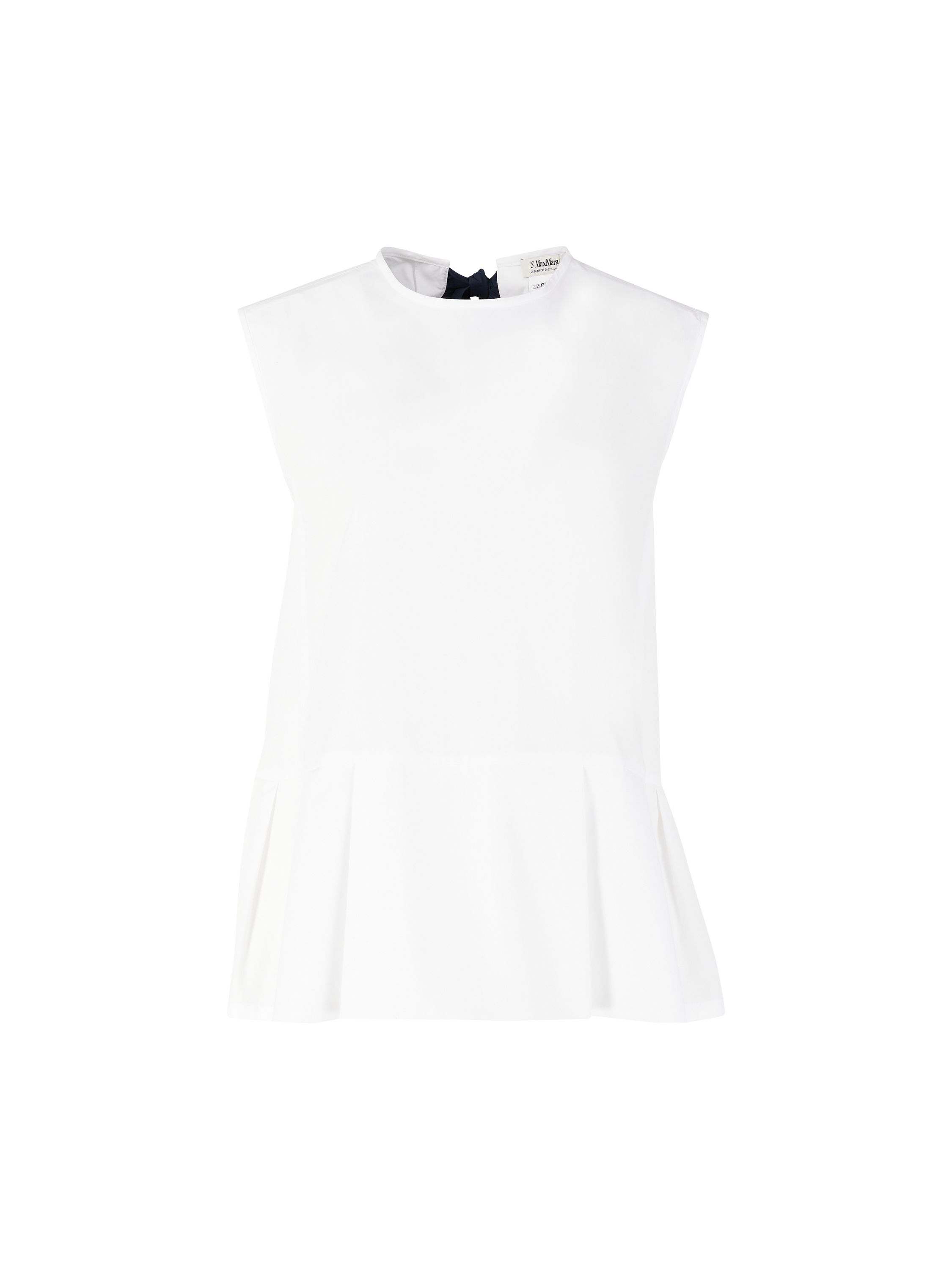 Das Top 'Brava' in Weiß von 'S Max Mara' wurde aus fließendem Baumwollpopeline gefertigt und besticht durch die feminine Schößchen-Silhouette. Die lockere Passform und der klassische Rundhalsausschnitt sorgen für entspannten Tragekomfort. Das kontrastierende Bindeband am Rücken setzt einen verspielten Akzent und macht das Modell zu einem wahren Hingucker.