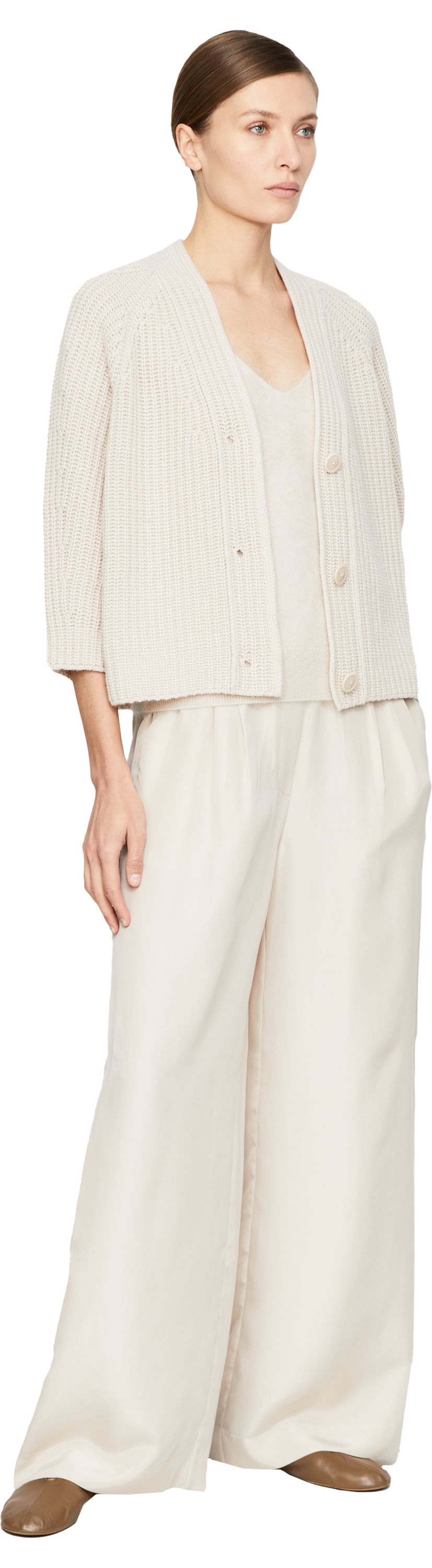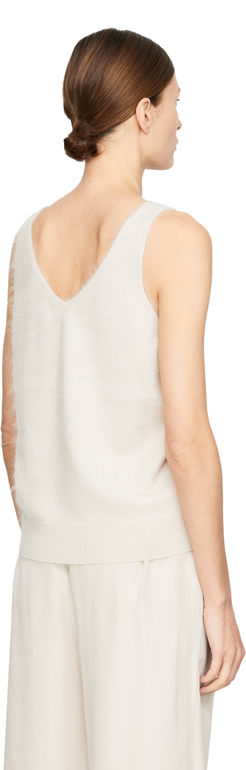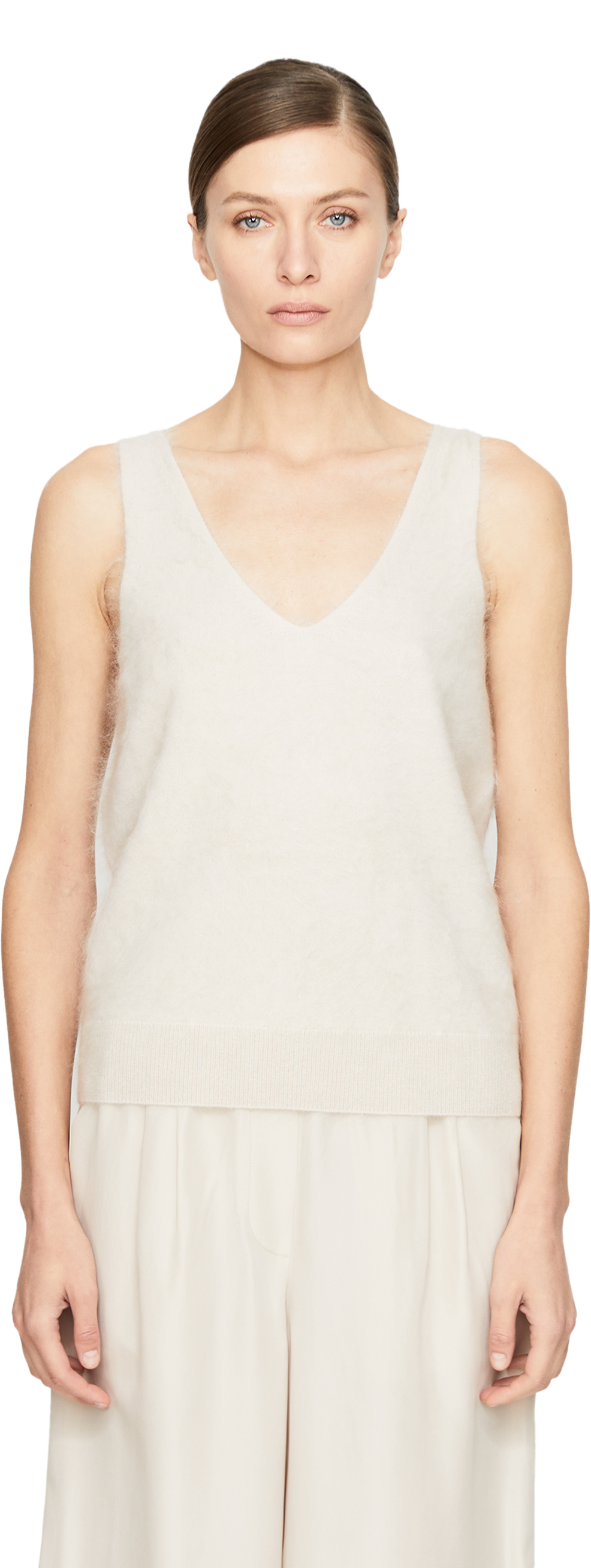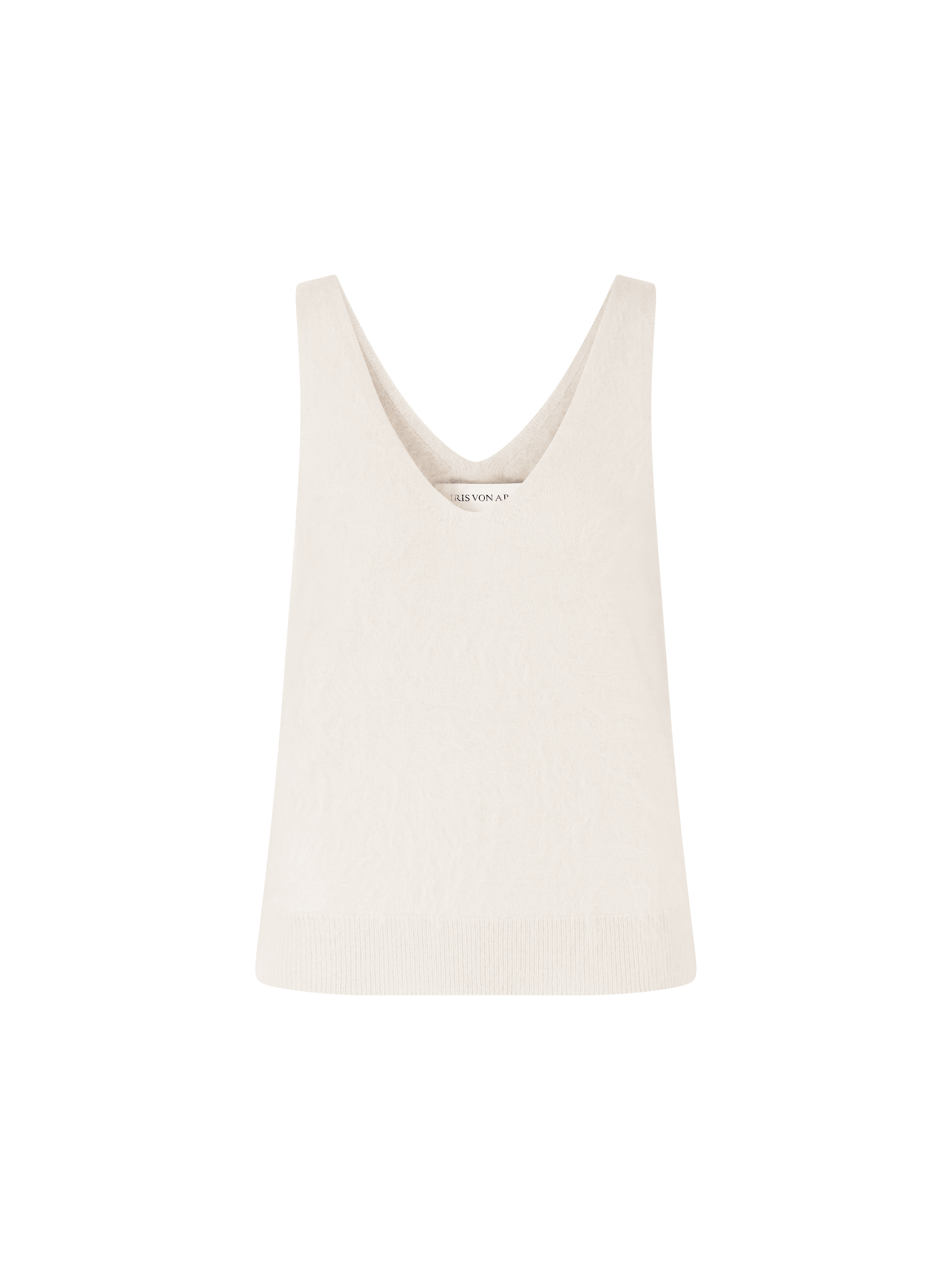 Das Top 'Kala' in Alabaster von Iris von Arnim wurde aus hochwertigem Cashmere gefertigt und besticht durch die gebürstete Optik. Die verkürzte Silhouette, der ärmellose Schnitt und der V-Ausschnitt verleihen dem Modell eine feminine Note. Abgerundet wird das Design durch die angenehme Haptik.