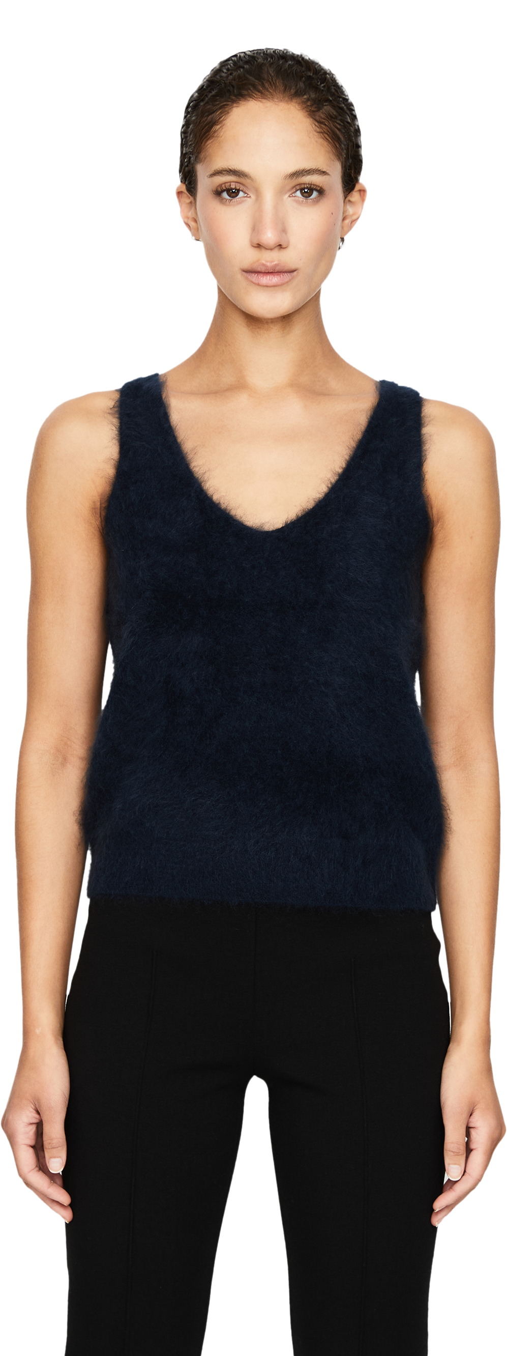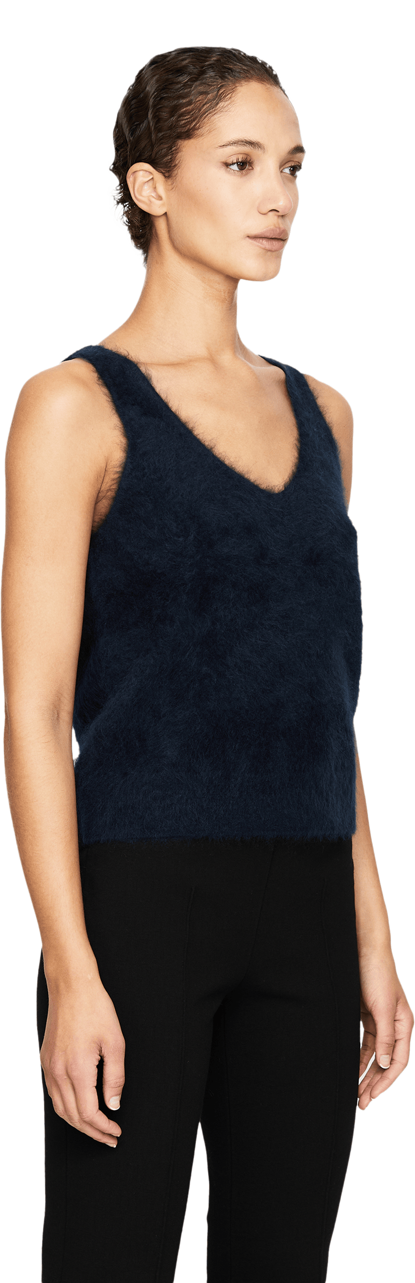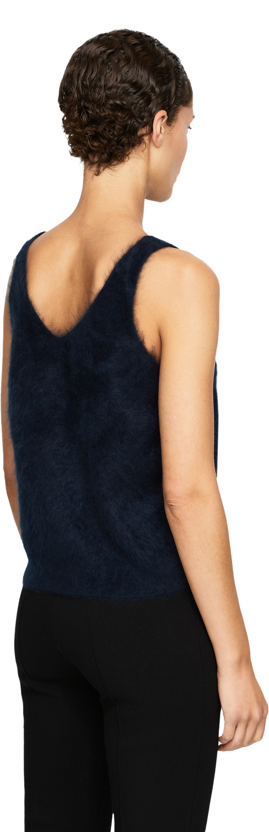 Das Top 'Kala' in Navy von Iris von Arnim wurde aus hochwertigem Cashmere gefertigt und besticht durch die gebürstete Optik. Die verkürzte Silhouette, der ärmellose Schnitt und der V-Ausschnitt verleihen dem Modell eine feminine Note. Abgerundet wird das Design durch die angenehme Haptik.