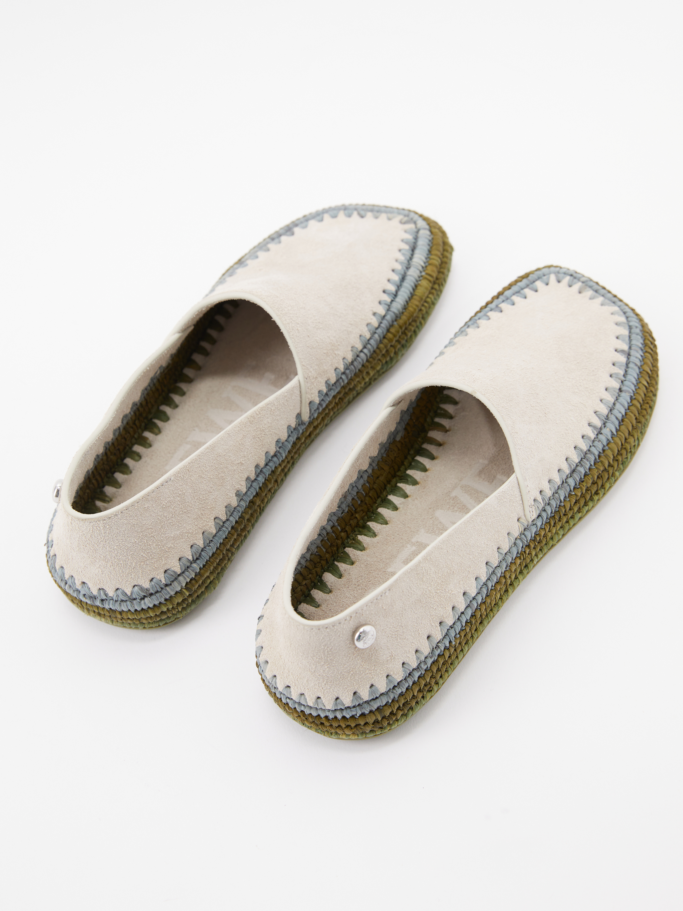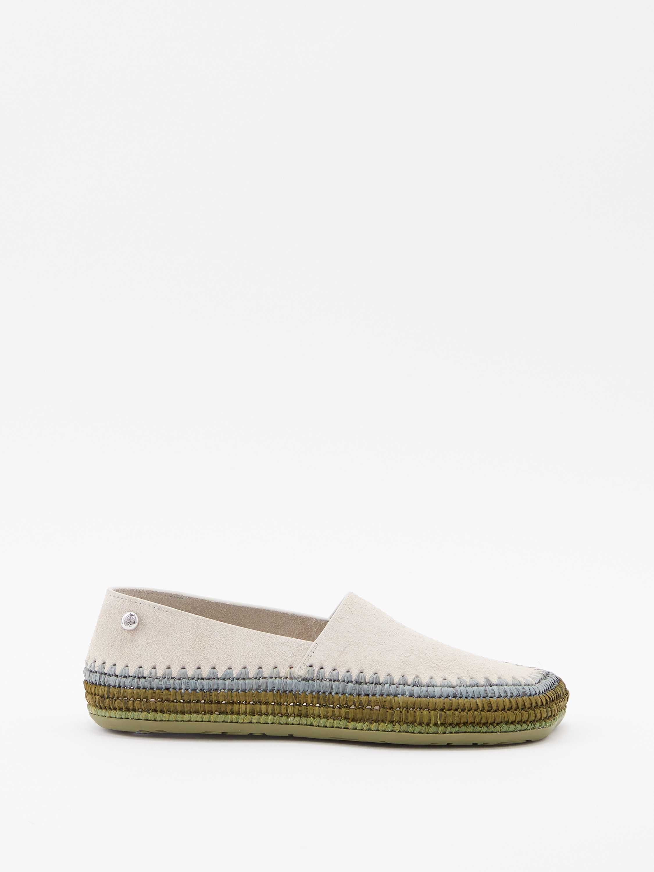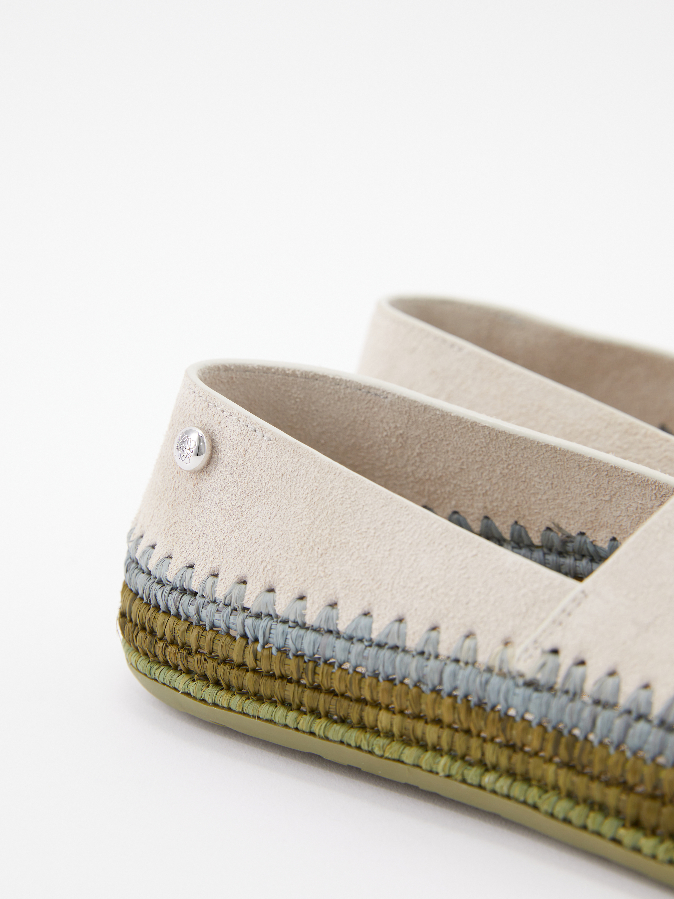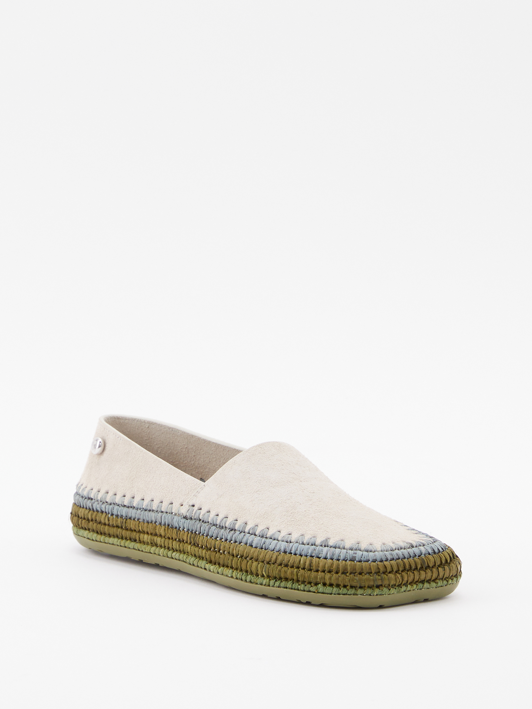 Die Loafer 'Rio' in Hellgrau von LOEWE aus der Kooperation mit Paula's Ibiza wurden aus Wildleder gefertigt und begeistert durch die Raffia Stickerei. Das hochwertige Modell wird durch die eckige Zehenpartie perfektioniert. Das weiche Material und die gepolsterte Innensohle sorgen für ein angenehmes Tragegefühl. Die goldfarbenen Anagram Pebble an der Seite setzen einen stilvollen Kontrast.