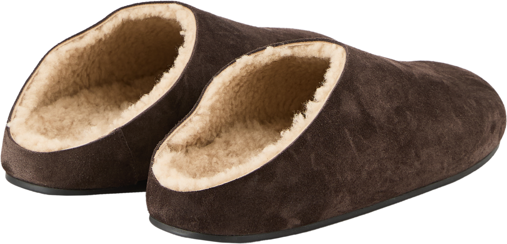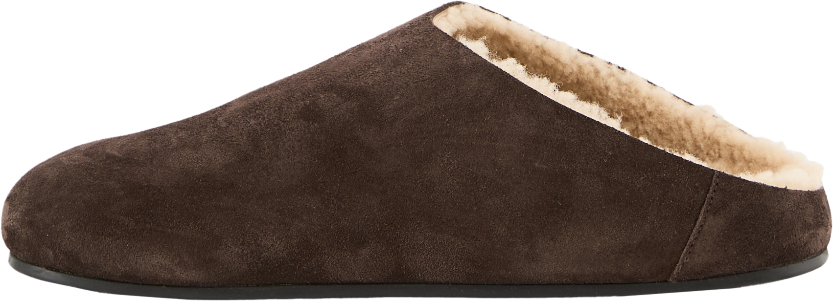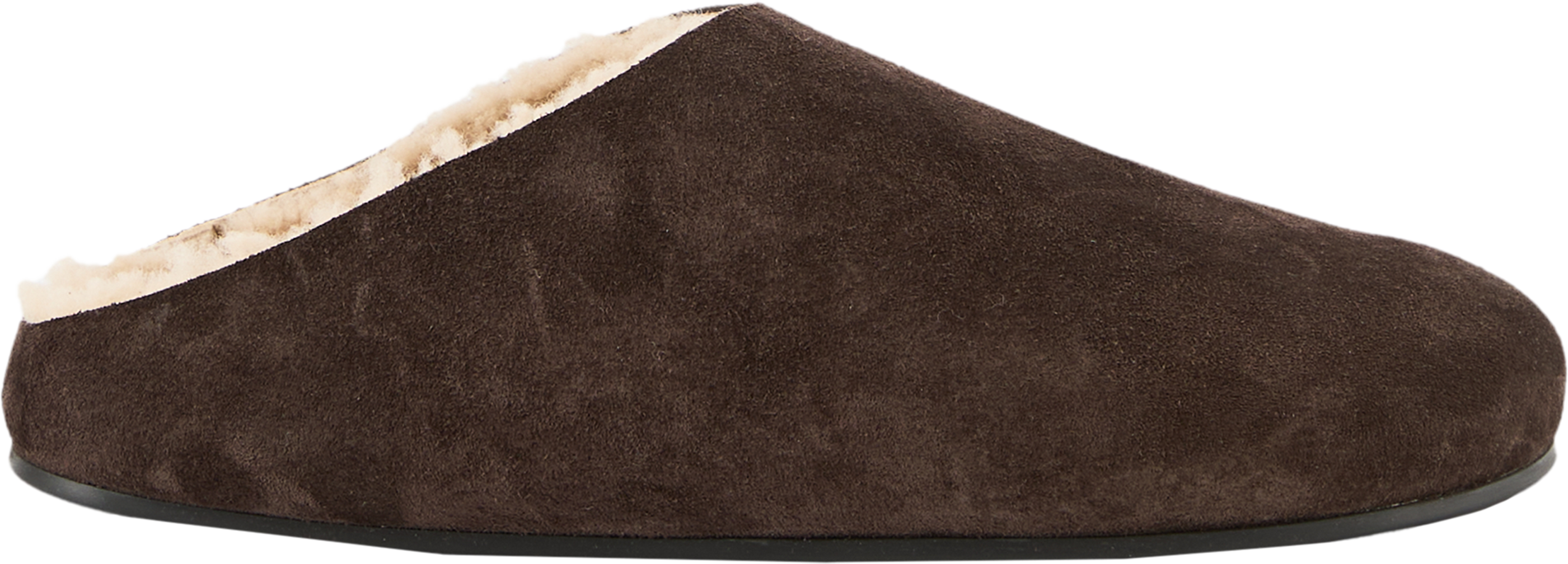 Die Slipper 'Hudson' in Dunkelbraun von The Row wurden aus hochwertigem Kalbsleder gefertigt und bestechen durch das flauschig Futter aus Lammfell. Die runde Zehenpartie und die flache Sohle sorgen für ein besonders angenehmes Tragegefühl.