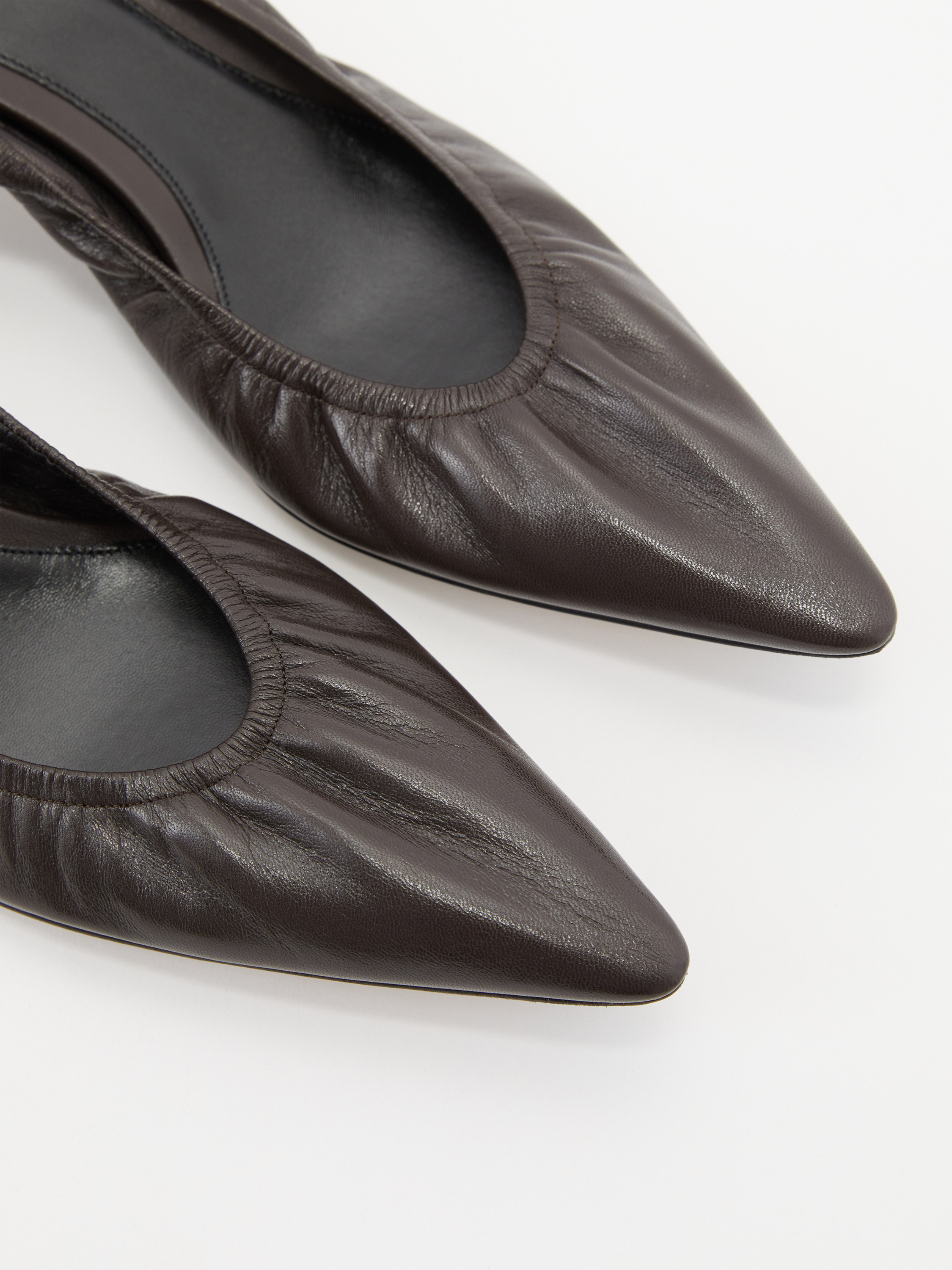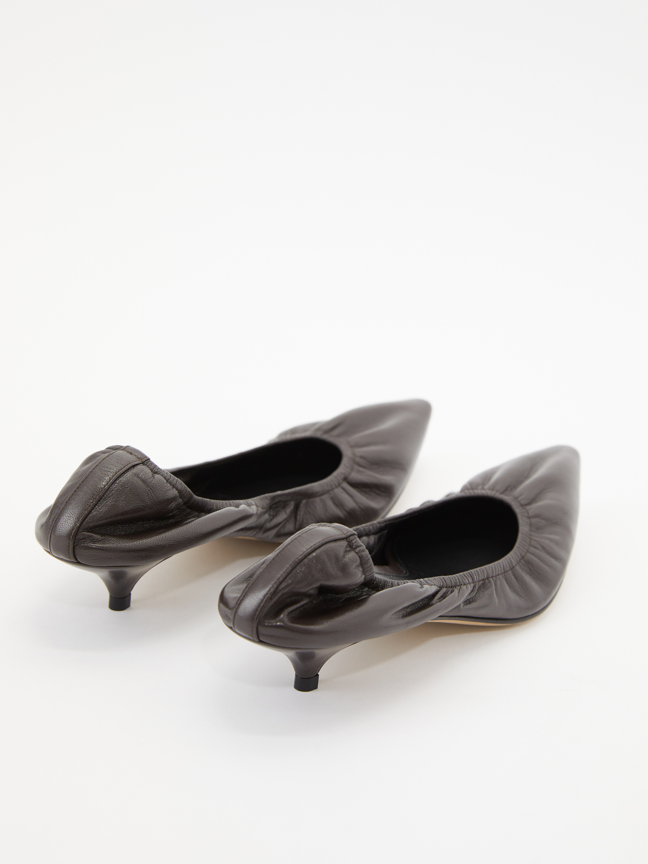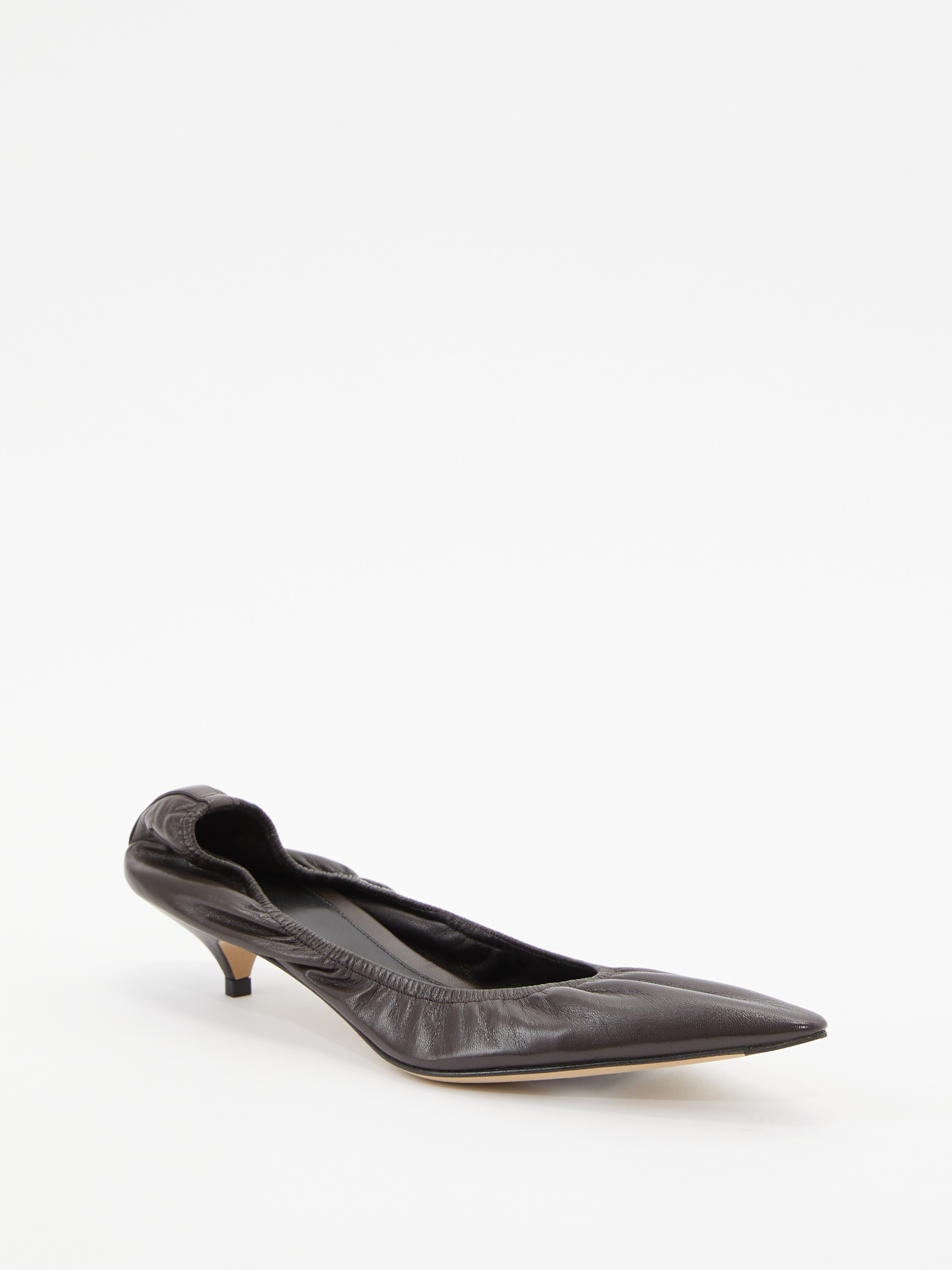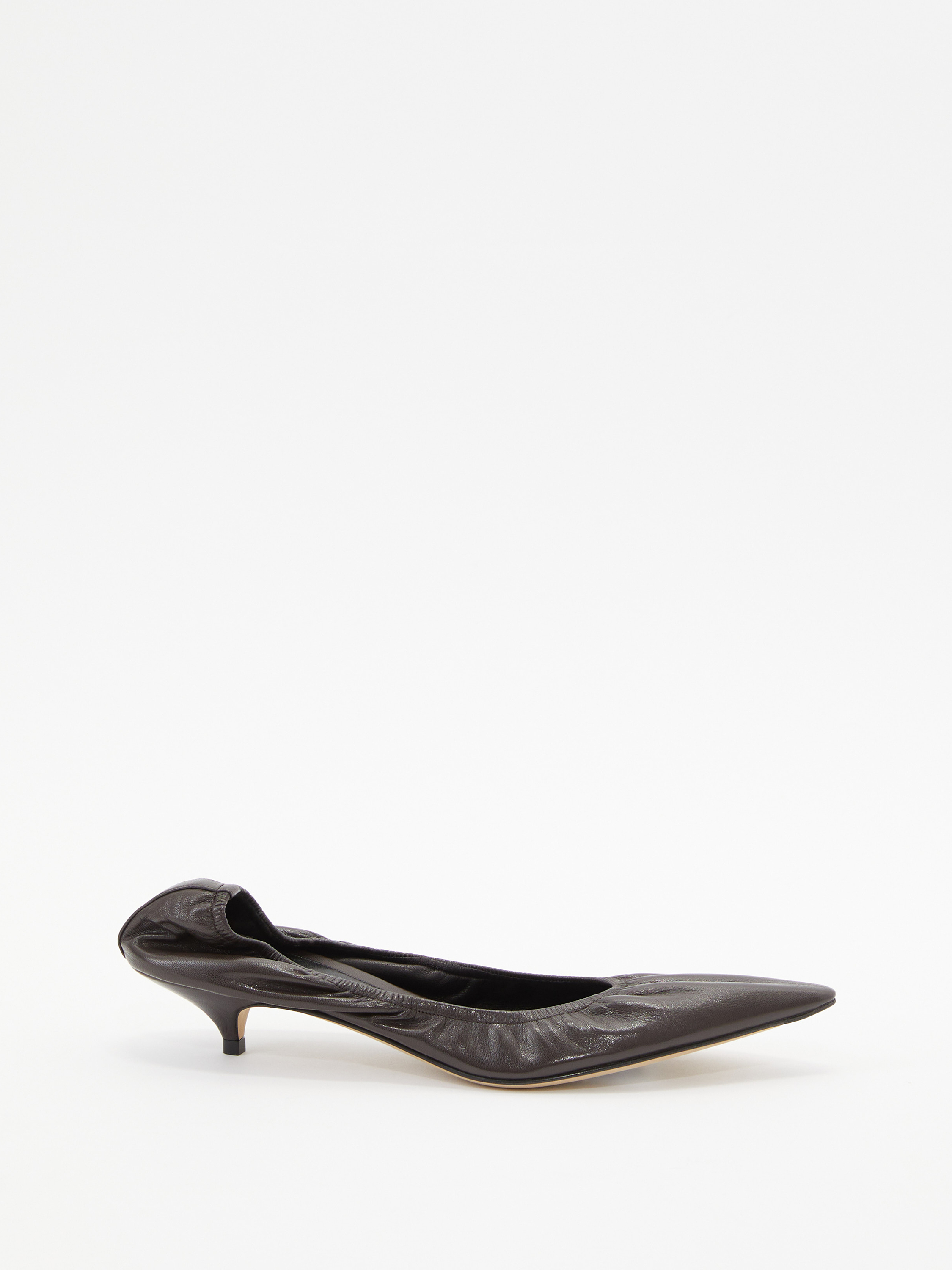 Die Pumps 'Liisa Kitten' in Dunkelbraun von The Row wurden aus hochwertigem Lammleder gefertigt und bestechen durch eine spitze Zehenpartie. Der runde Ausschnitt zeichnet das Modell aus, während die elastische Zehenpartie und der mittelhohe Stilettoabsatz das Design stilvoll abrunden.