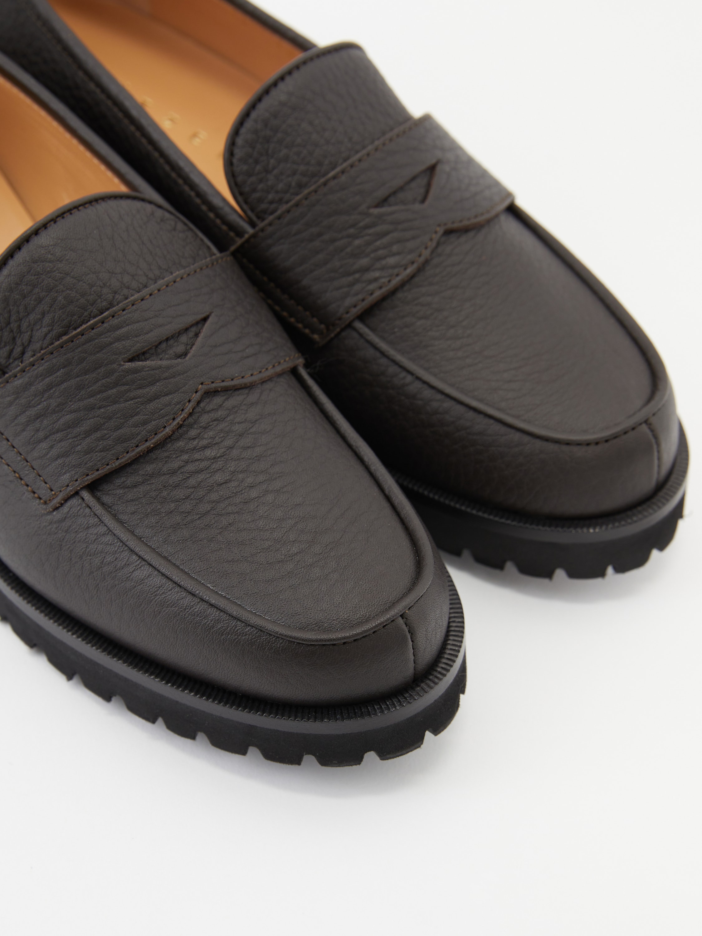 Der Loafer 'Grained' in Braun von Unützer wurde aus Glattleder gefertigt und begeistert durch einen dynamischen, robusten Stil. Die runde Spitze und die Lasche verleihen dem Schuh ein einmaliges Finish.