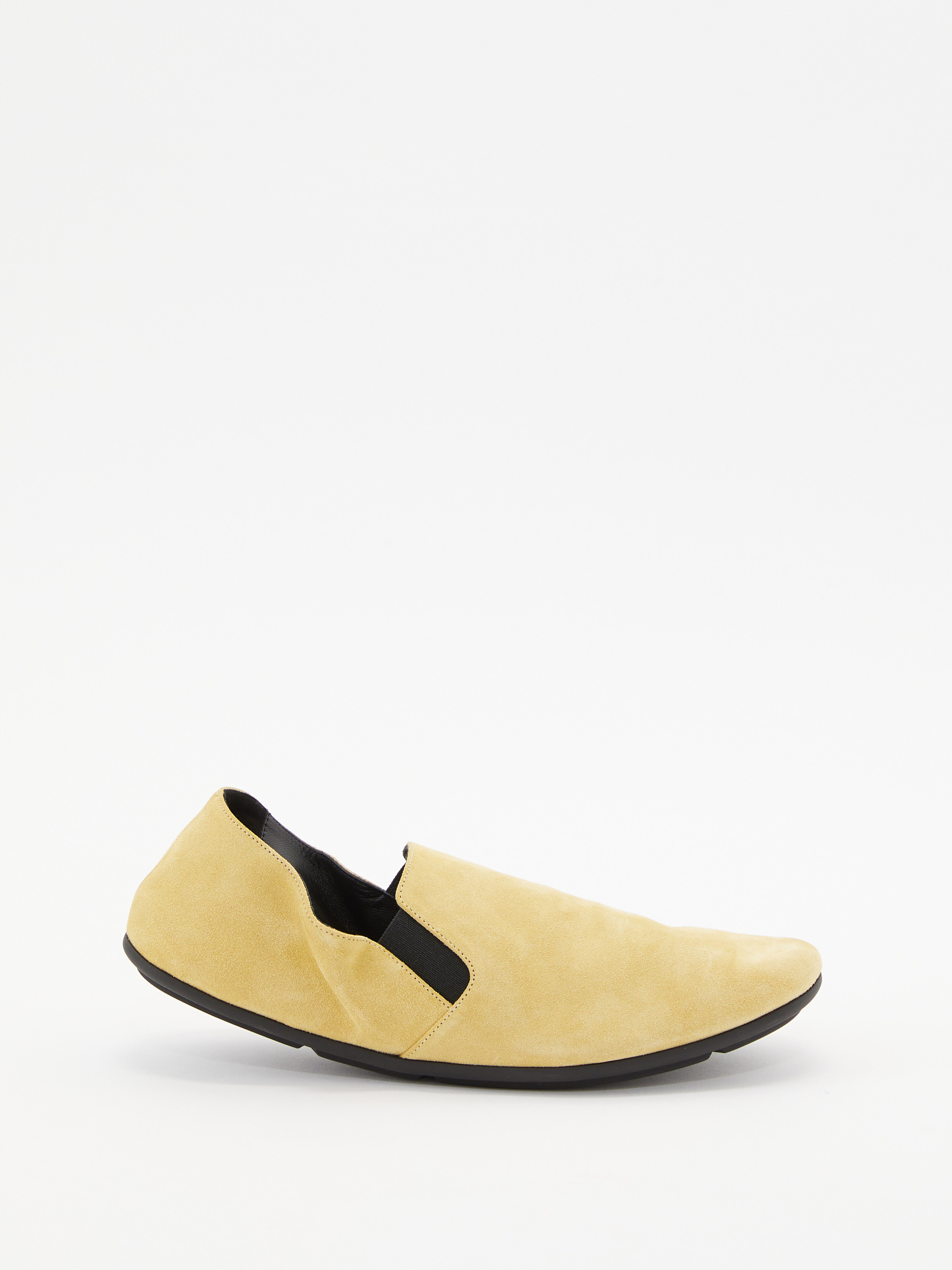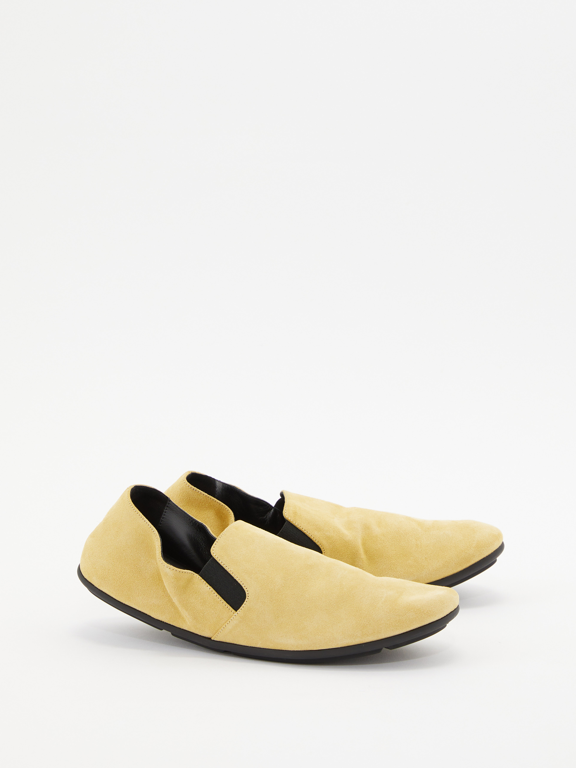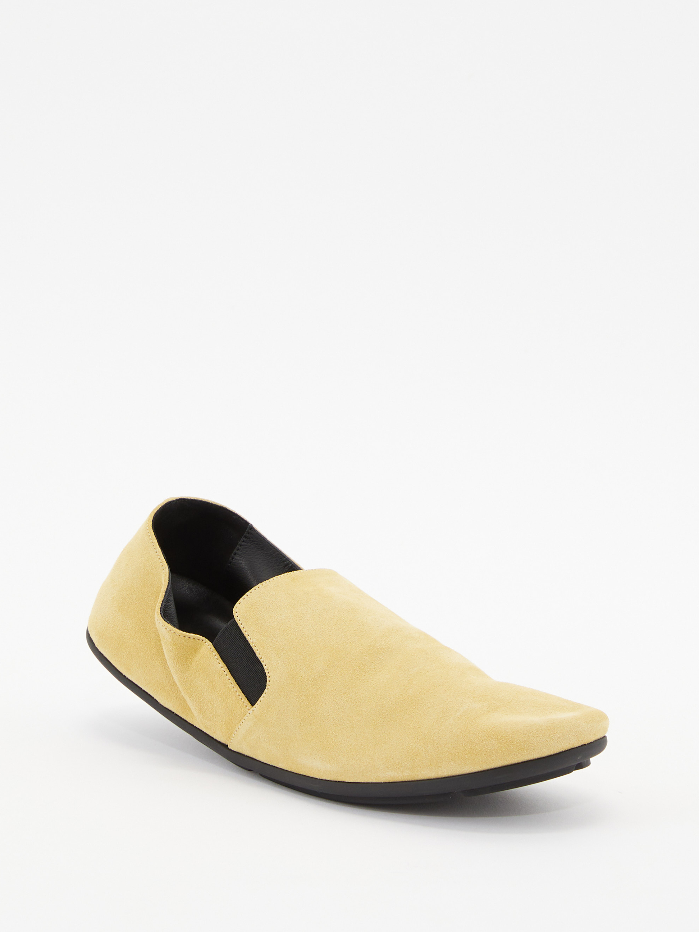 Die Loafer 'Vincit' in Gelb von The Row wurden aus butterweichem Leder gefertigt und begeistert durch den elastischen Ausschnitt. Die abgerundete Spitze und die Zuglasche verleihen dem Schuh ein zeitloses Aussehen.