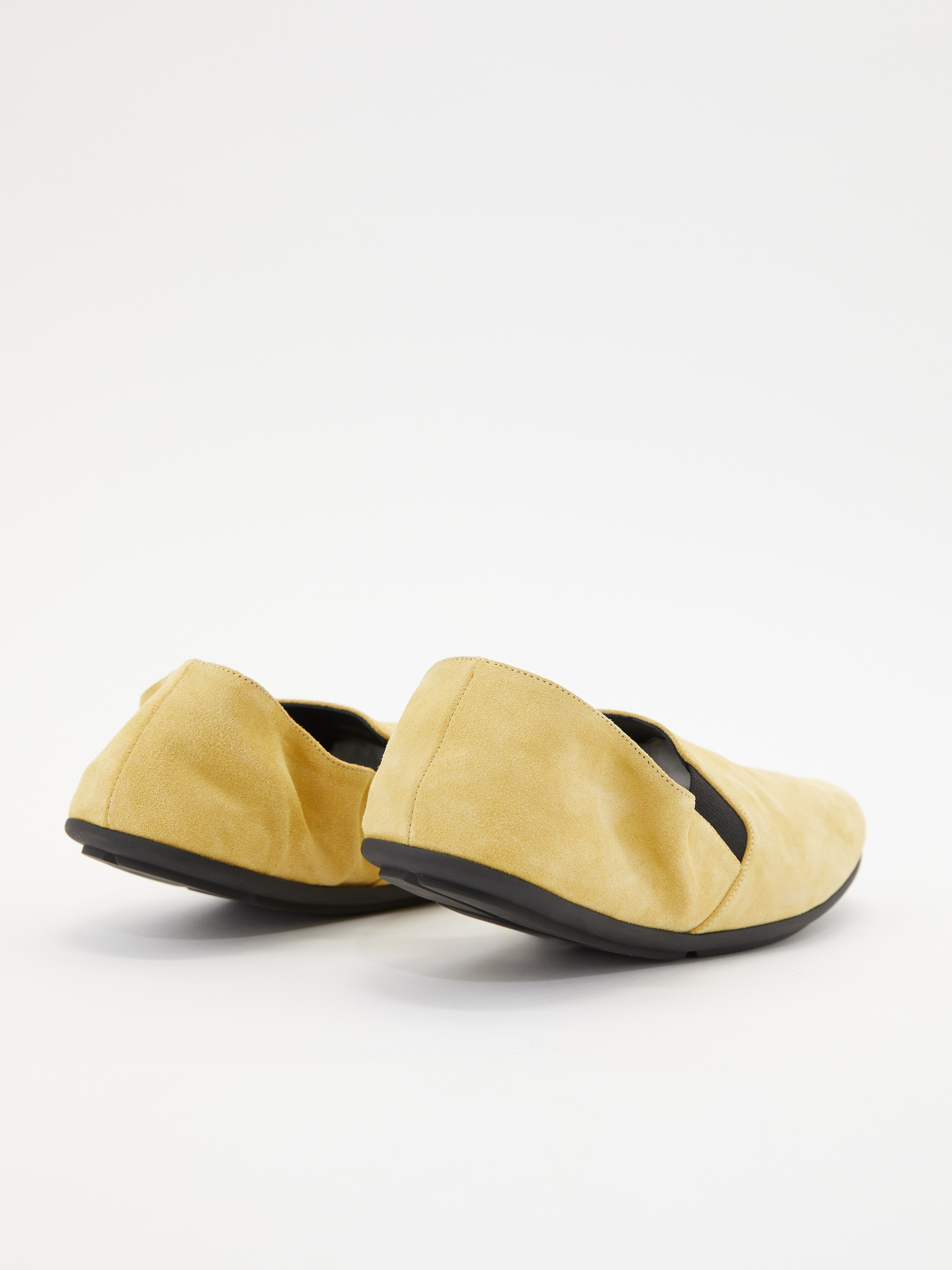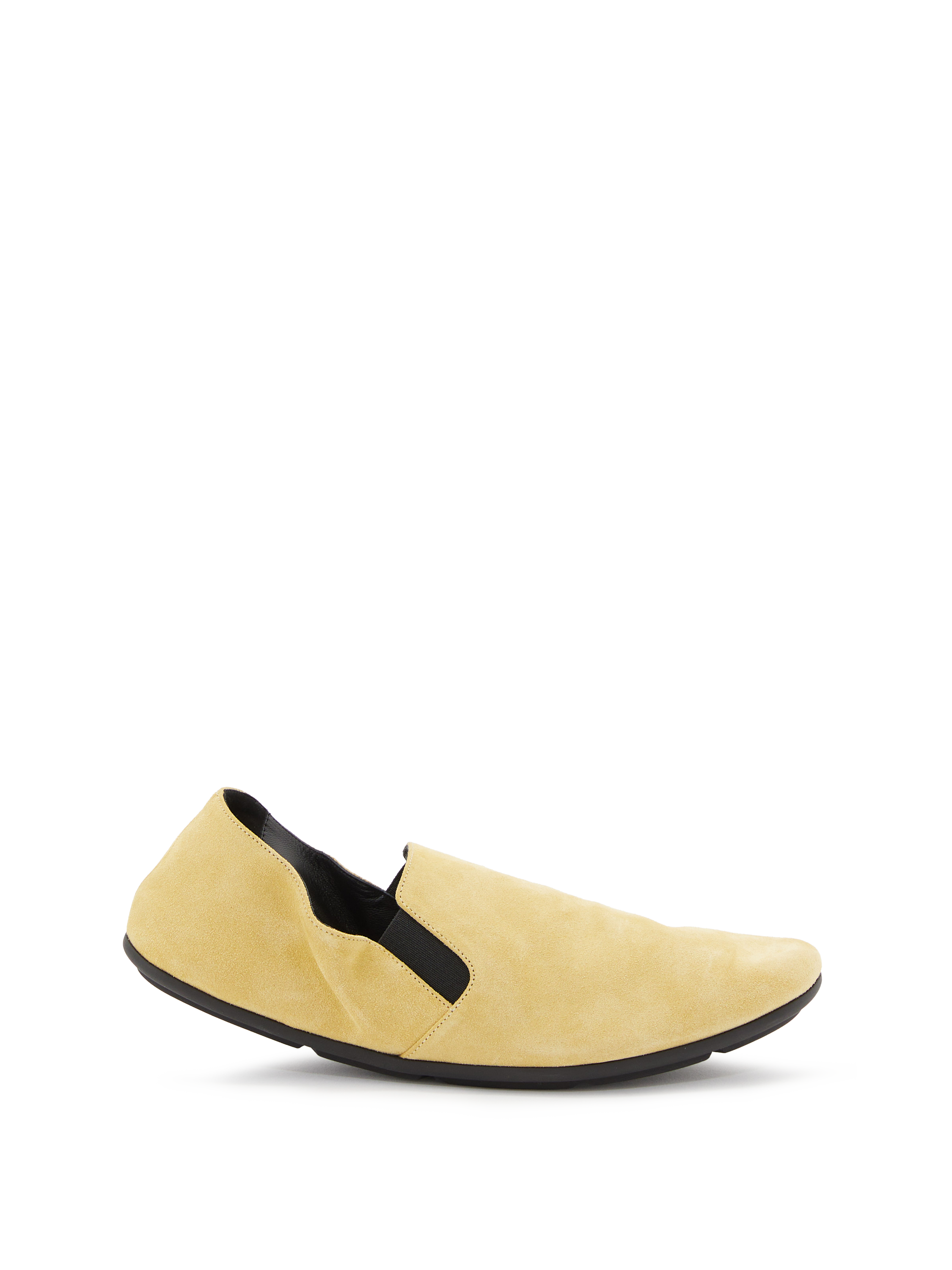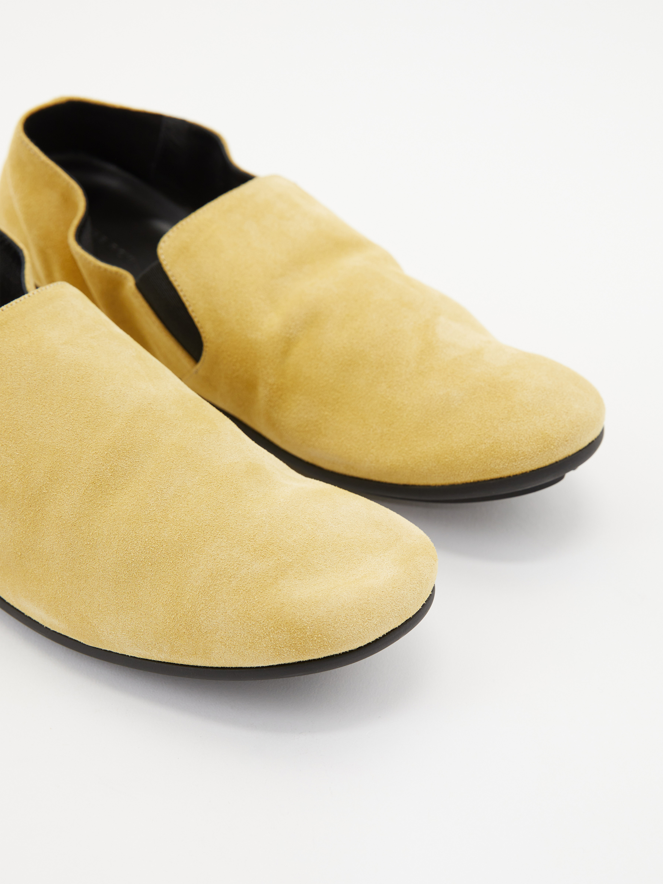 Die Loafer 'Vincit' in Gelb von The Row wurden aus butterweichem Leder gefertigt und begeistert durch den elastischen Ausschnitt. Die abgerundete Spitze und die Zuglasche verleihen dem Schuh ein zeitloses Aussehen.