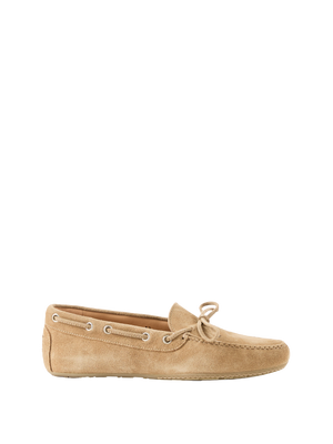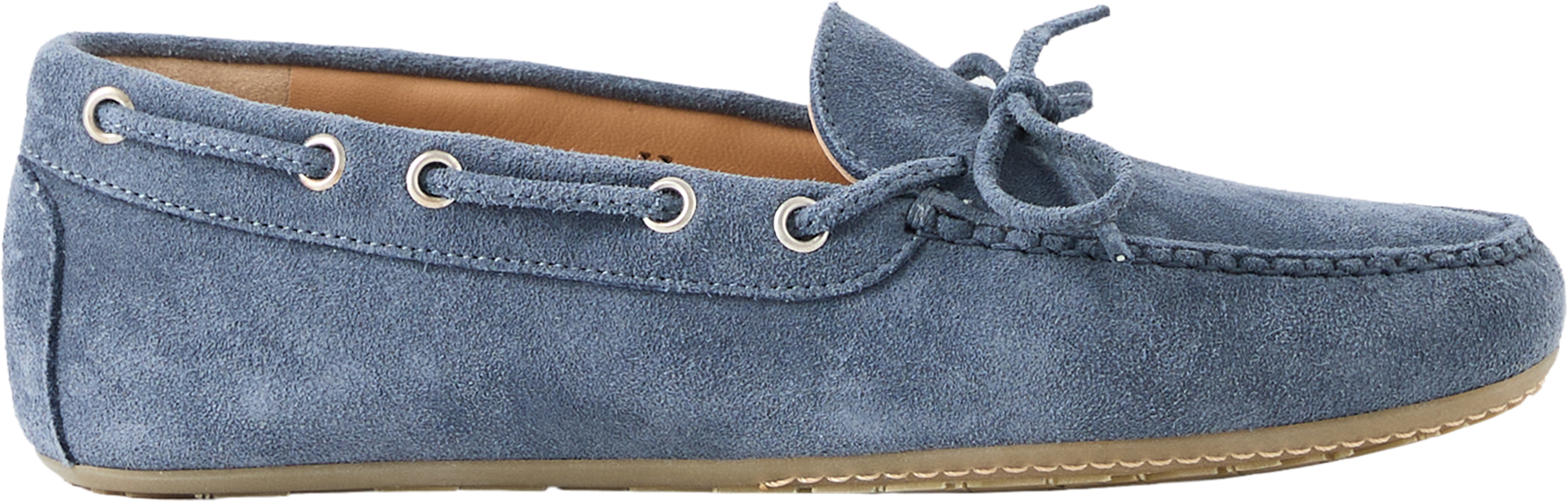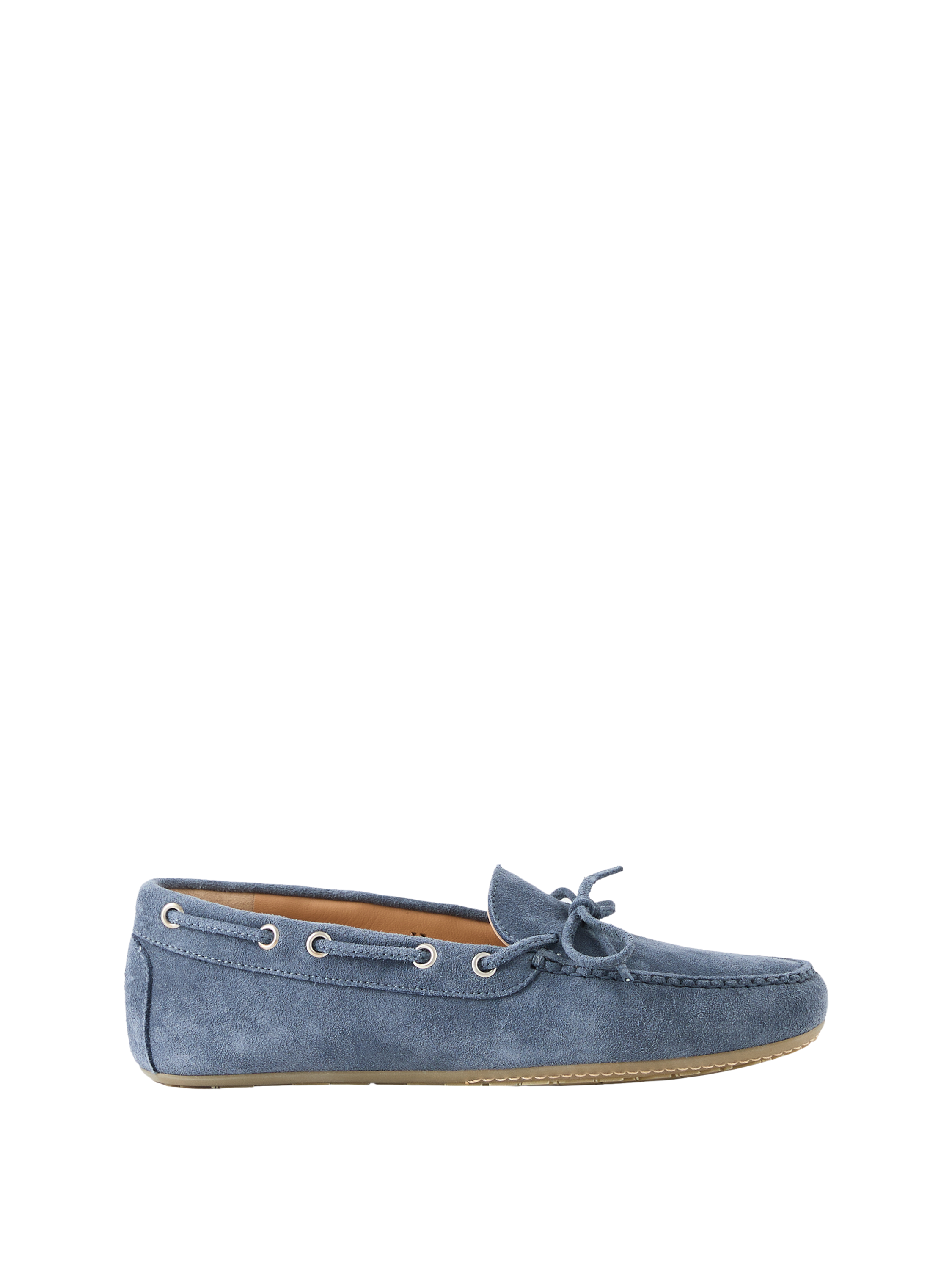 Mokassins aus Veloursleder mit Schleife Hellblau