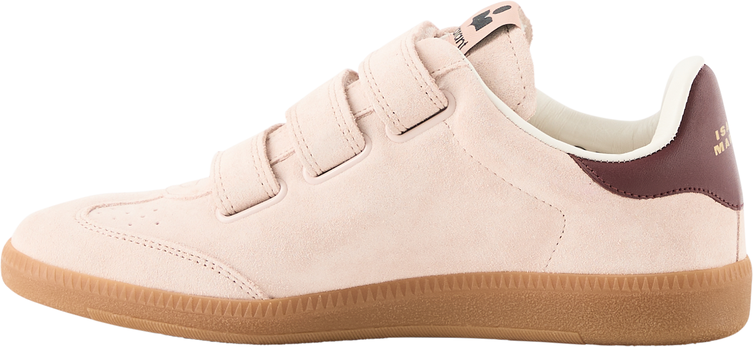 Der Sneaker 'Beth' in Rosé von Isabel Marant wurde aus Rindsleder gefertigt und besticht durch den seitlichen Einsatz mit kontrastierendem Logo-Detail. Die gepolsterte Zunge mit Label-Patch, der Riemen mit Klettverschluss sowie das geprägte Detail auf der Rückseite unterstreichen das Design. Innensohle und Futter aus Leder runden den hochwertigen Look harmonisch ab.