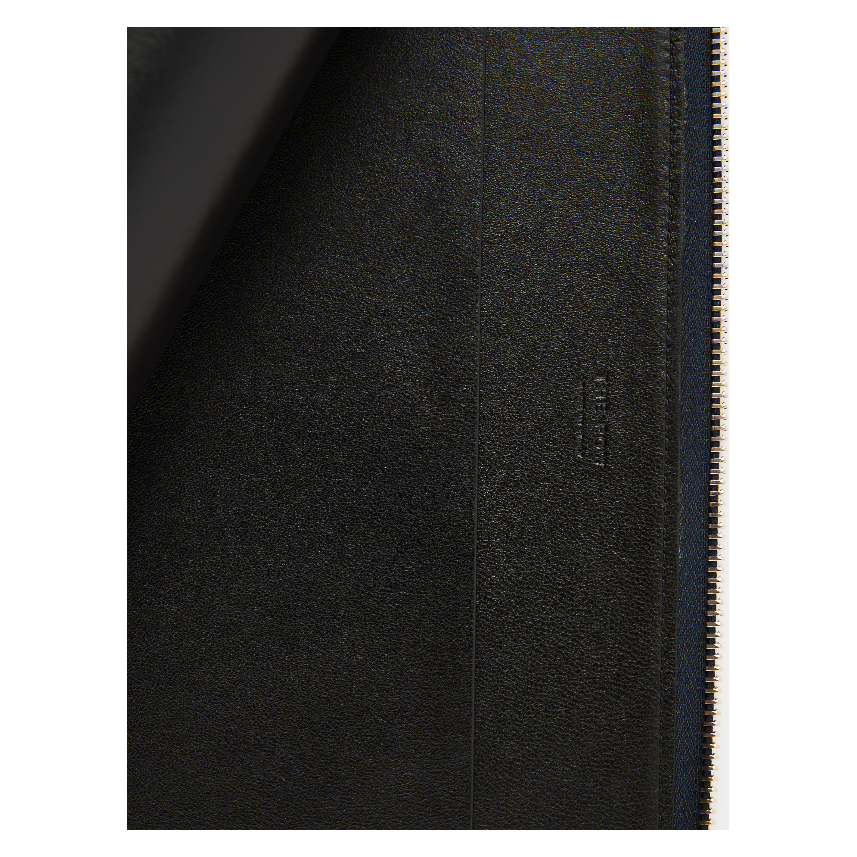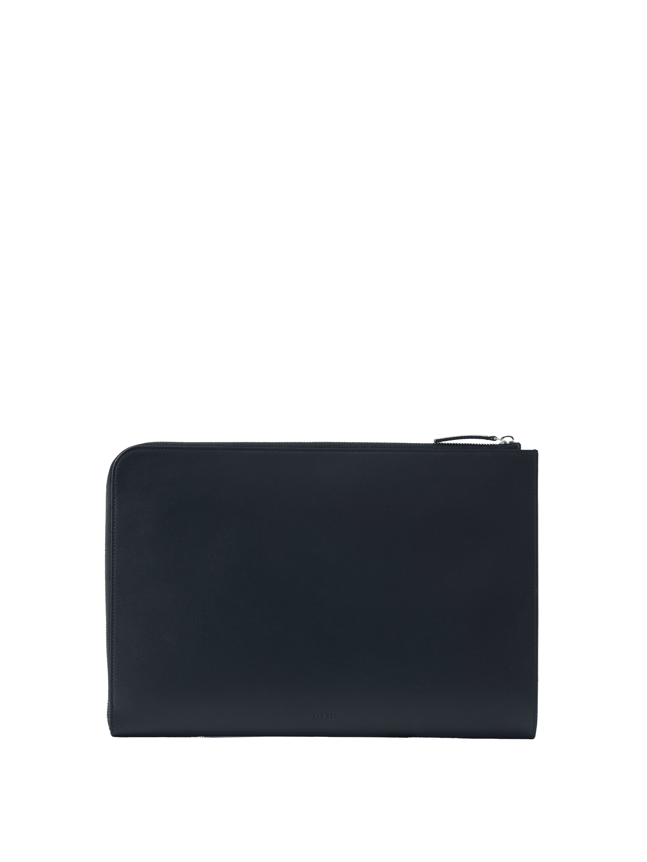 Diese Tasche in Dunkelblau von The Row wurde aus glattem Rindsleder gefertigt und besticht durch das minimalistische Design. Ein silberfarbener Reißverschluss und ein verstellbarer Handgelenkriemen sorgen für ein angenehmes Tragegefühl. Das Modell verfügt über zwei Innenfächer, in denen sich Essentials des Alltags stilvoll verstauen lassen. Eine dezente Logoprägung rundet das Design elegant ab.