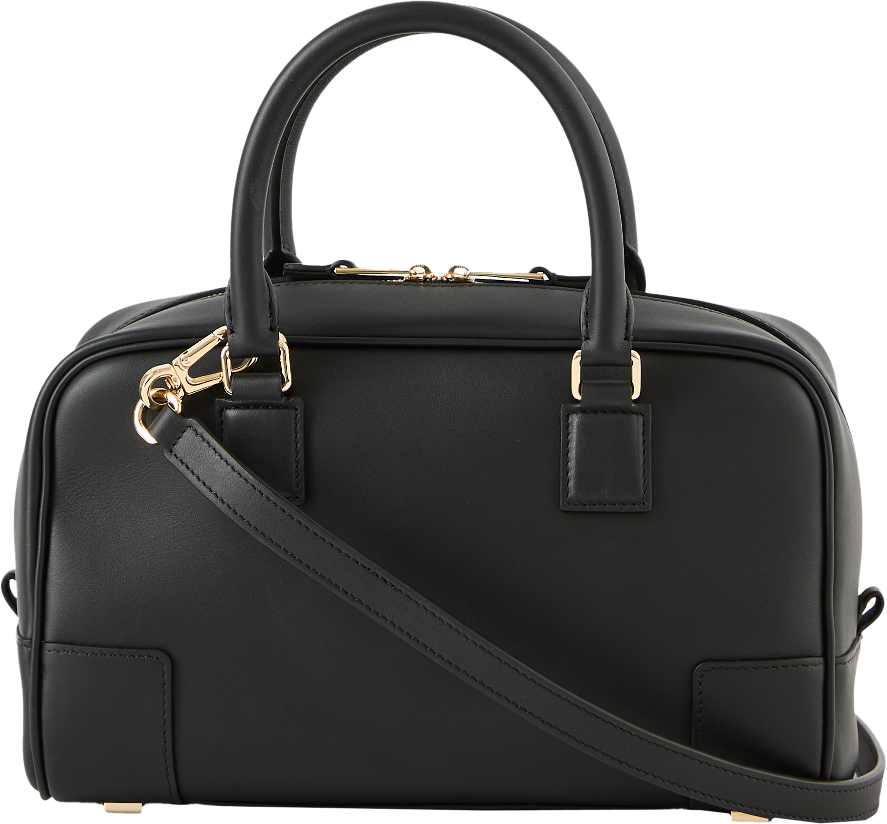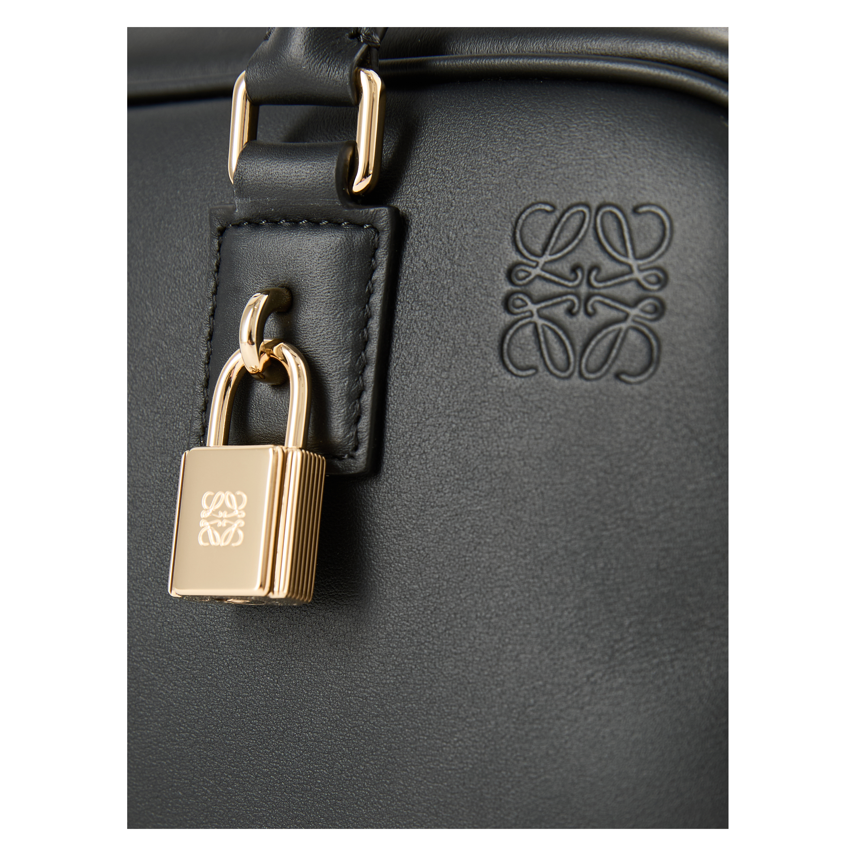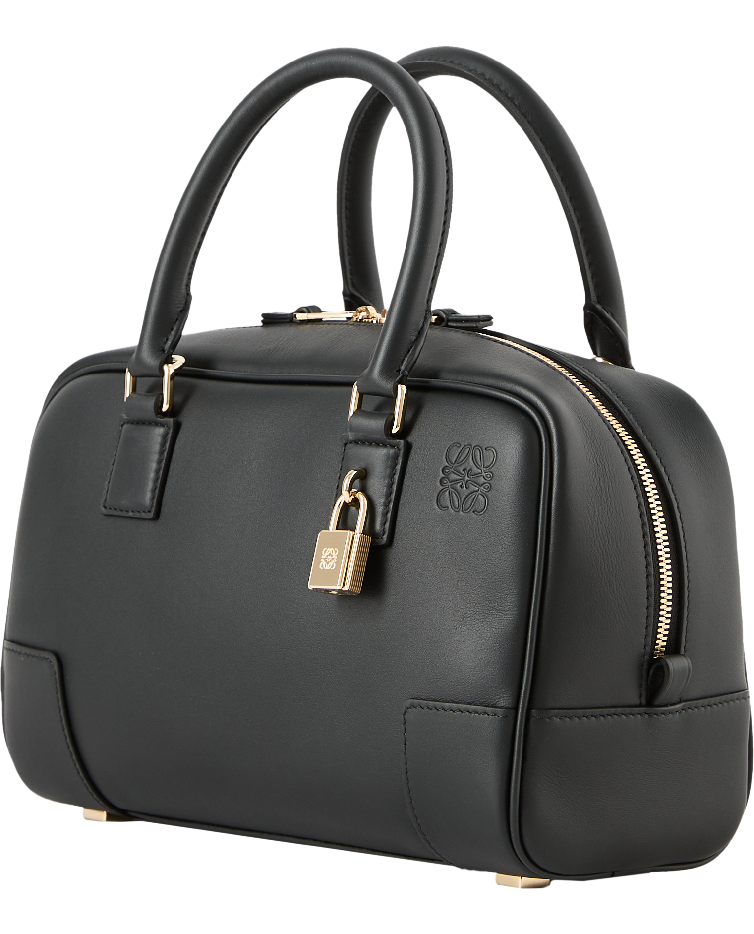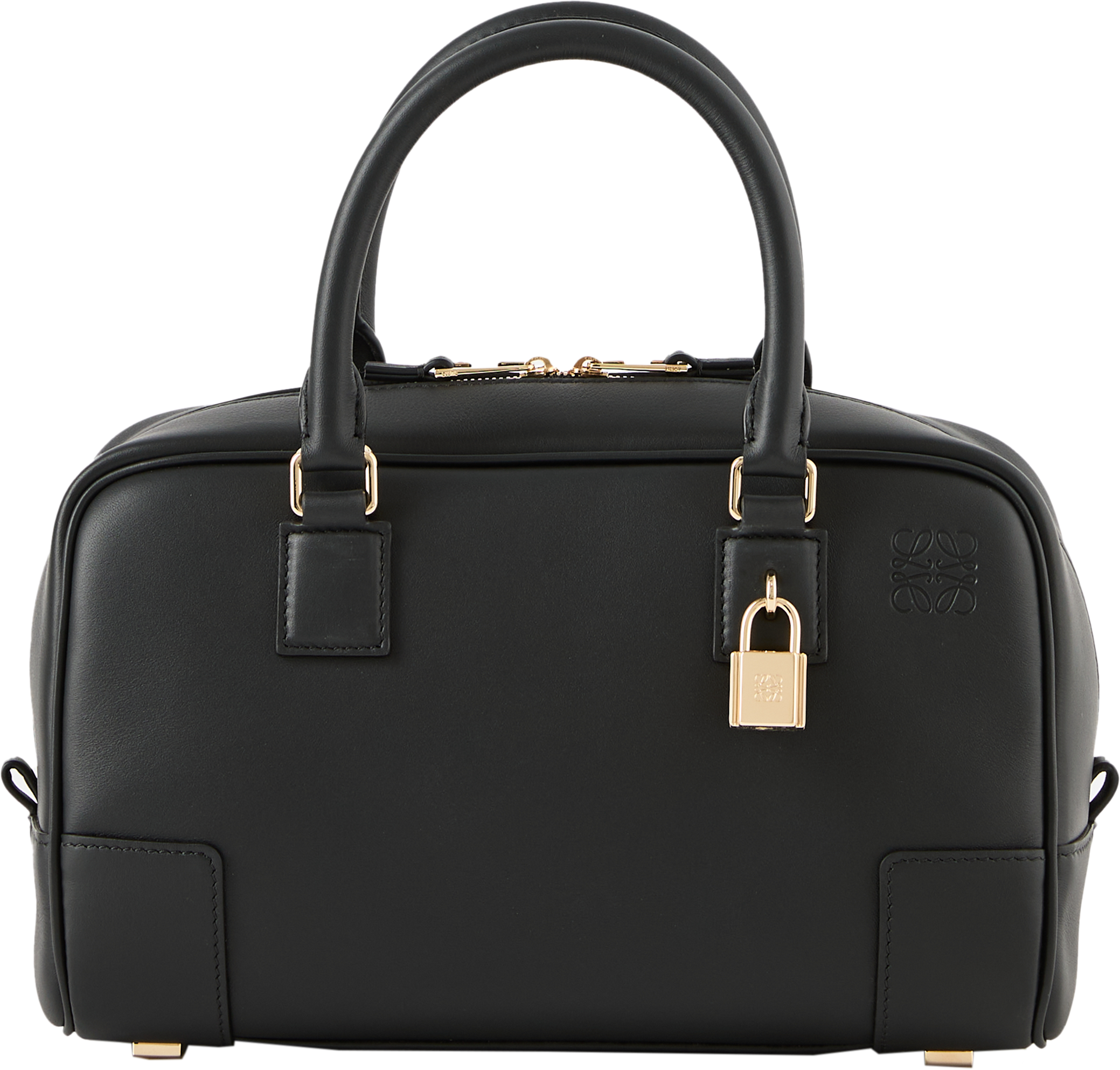 Die Handtasche 'Amazona 23' in Schwarz von LOEWE wurde aus weichem Kalbsleder gefertigt und besticht durch die quadratische Form. Die frontale Anagramm-Prägung und das charakteristische Vorhängeschloss setzen elegante Akzente und bilden einen stilvollen Blickfang. Funktional wird das Design durch die Tragehenkel abgerundet, die sich bei Bedarf durch abnehmbare Schulterriemen erweitern lassen.