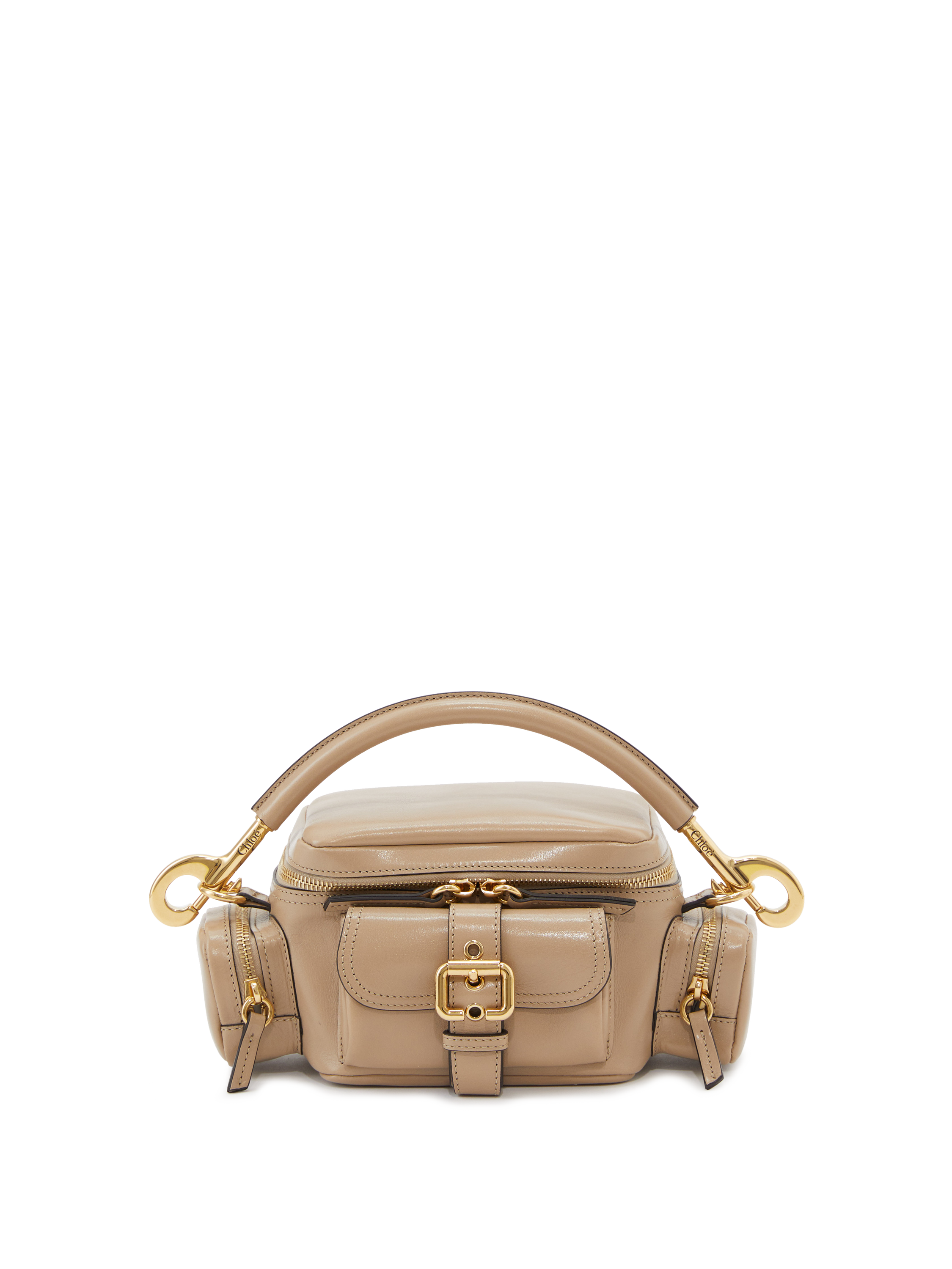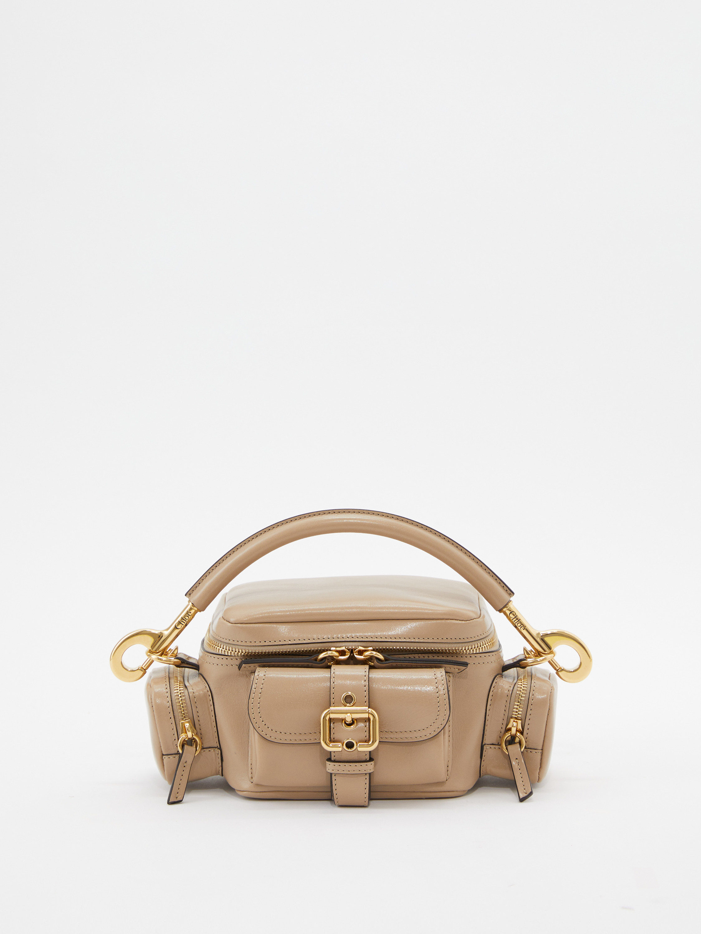 Die Handtasche 'Camera Small' von Chloé in der Farbe Boyish Brown wurde aus genarbtem Büffelleder gefertigt und mit goldener Hardware abgerundet. Der Griff bietet die Tragevariante in der Hand oder über der Schulter. Das geräumige Fach sowie zahlreiche Innenfächer bieten Stauraum für alles, was man im Alltag braucht. Die aufgesetzten Taschen mit den Schnallen runden das Design ab.