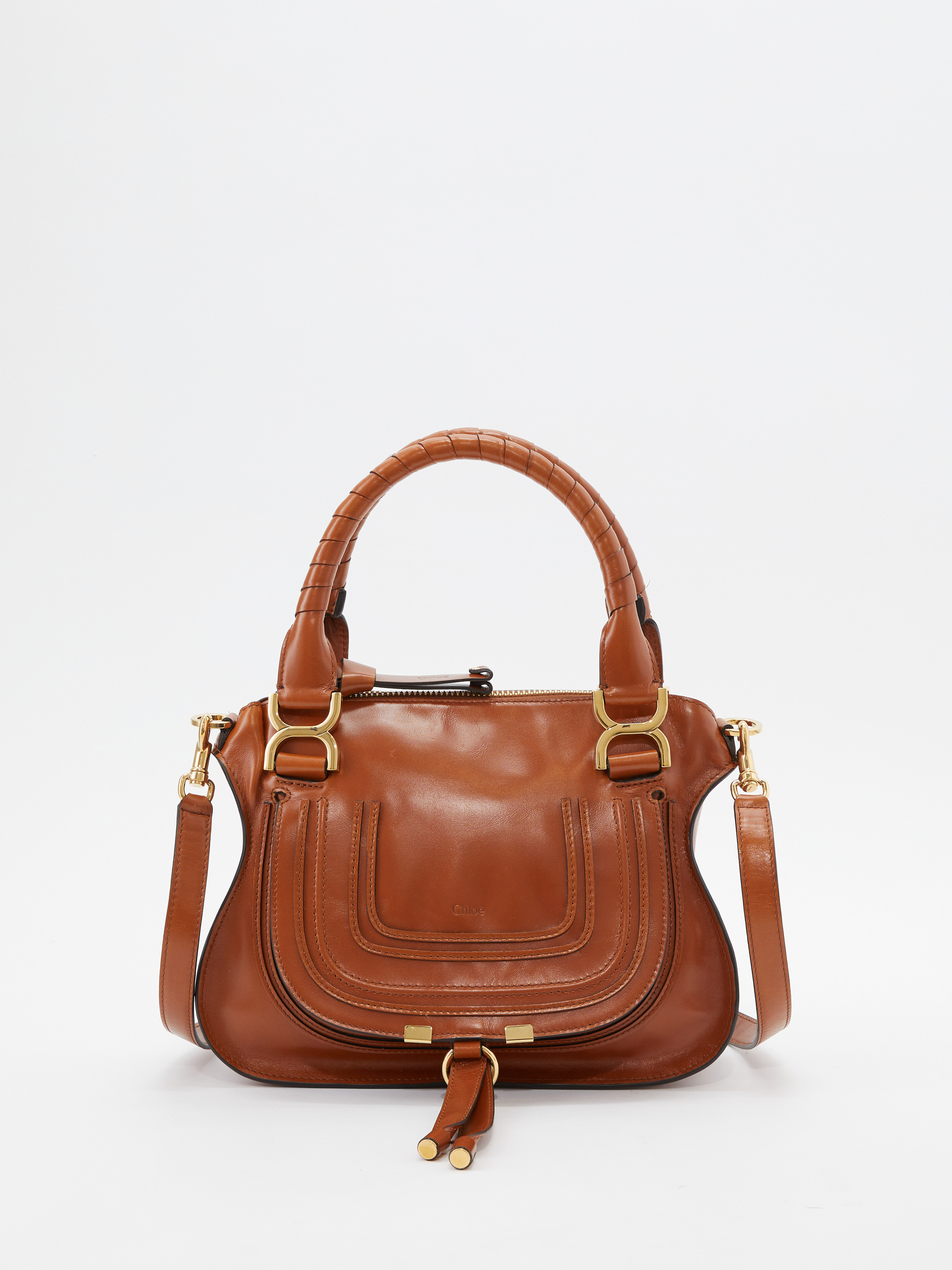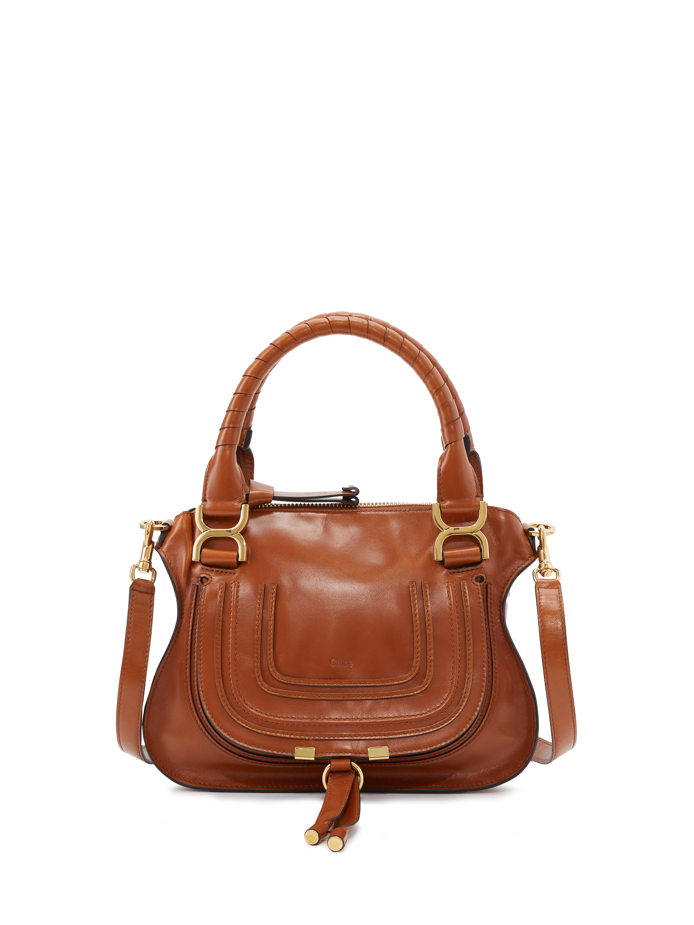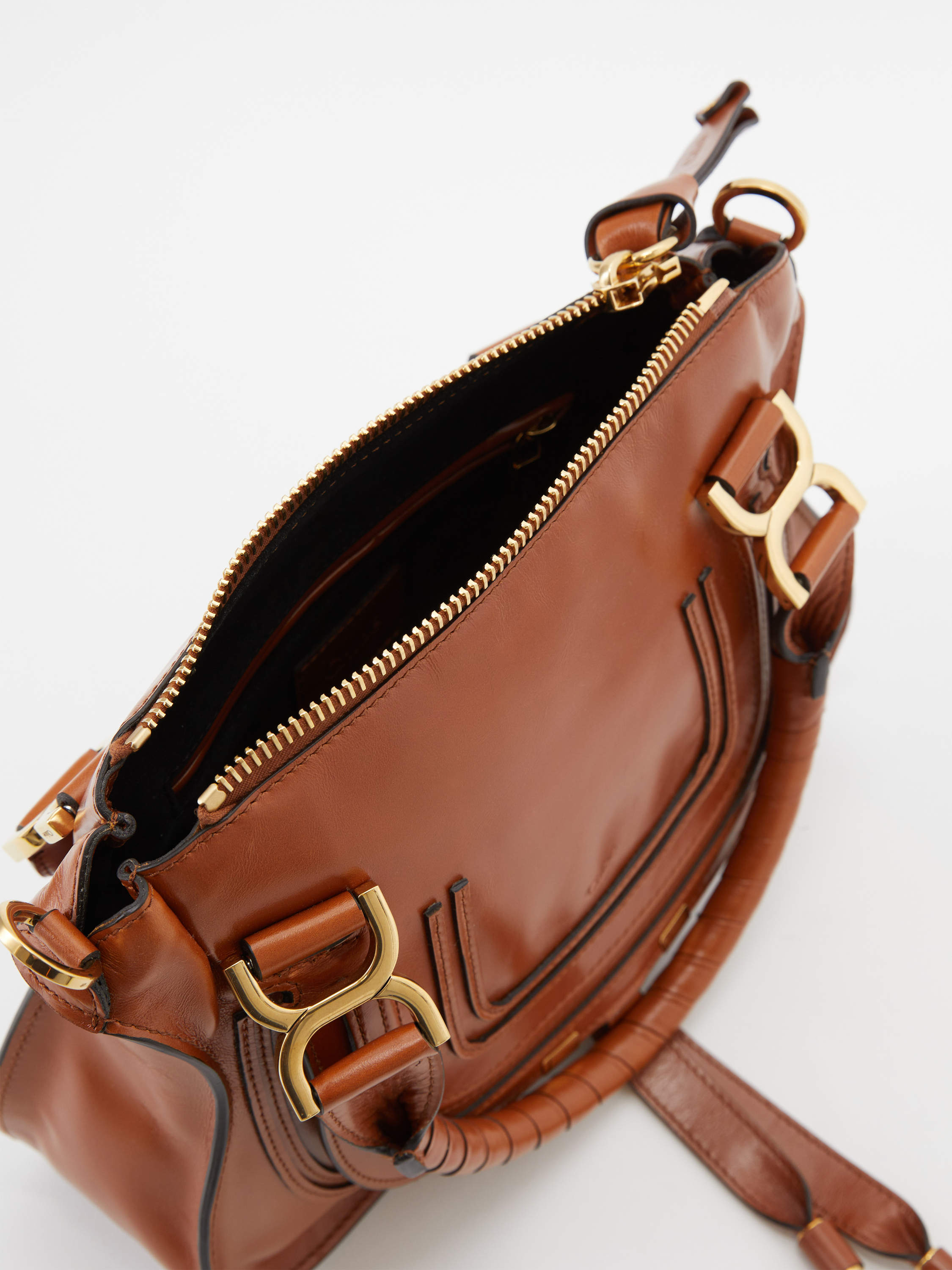 Die Handtasche 'Marcie Small' in Clay Brown von Chloé in Braun wurde aus Kalbsleder gefertigt und mit goldener Hardware abgerundet. Der Griff bietet die Tragevariante in der Hand oder über der Schulter. Das geräumige Fach sowie zahlreiche Innenfächer bieten Stauraum für alles, was man im Alltag braucht. Das schlichte Design macht die Tasche zu einem sportlich-eleganten Klassiker.