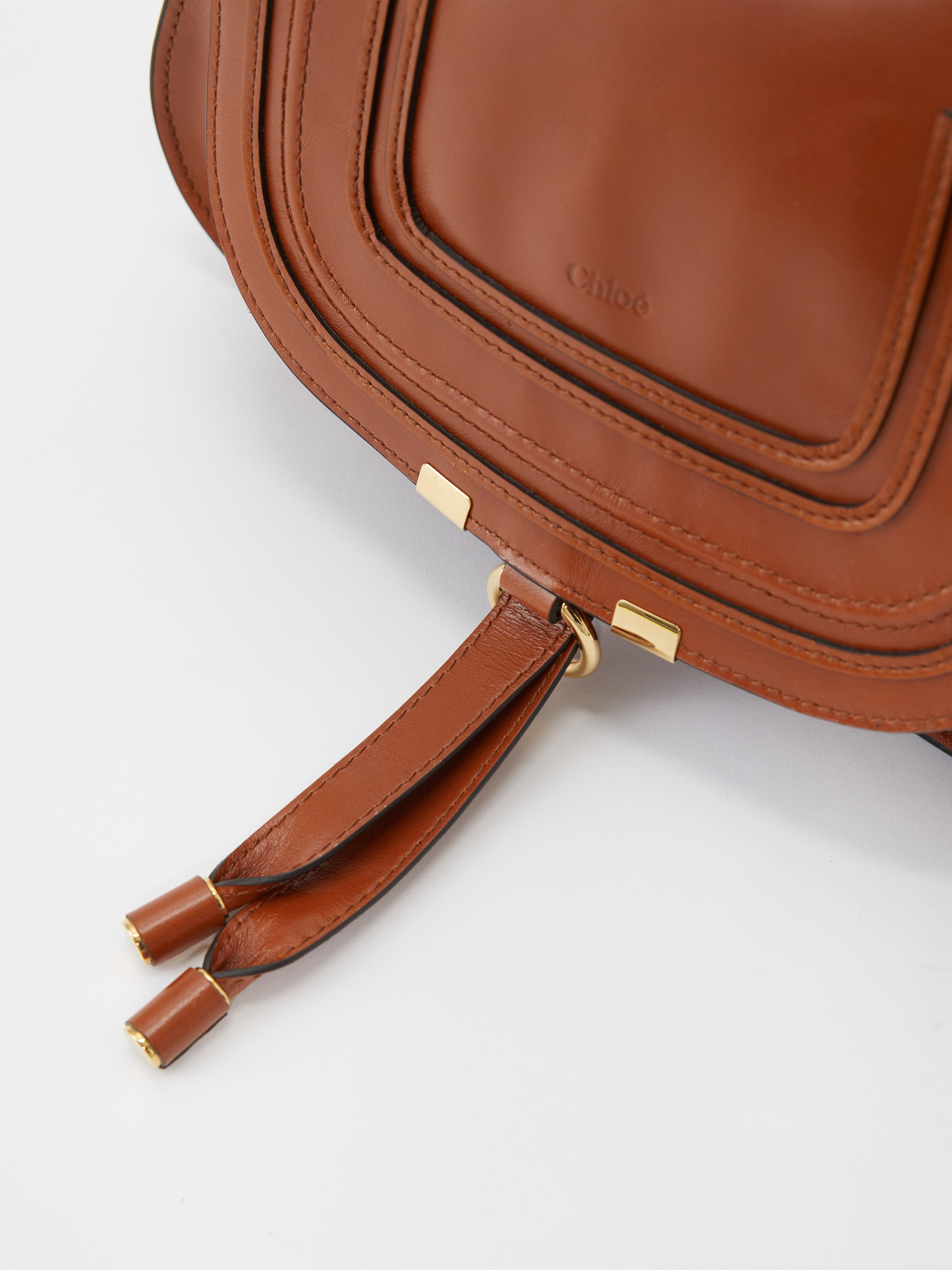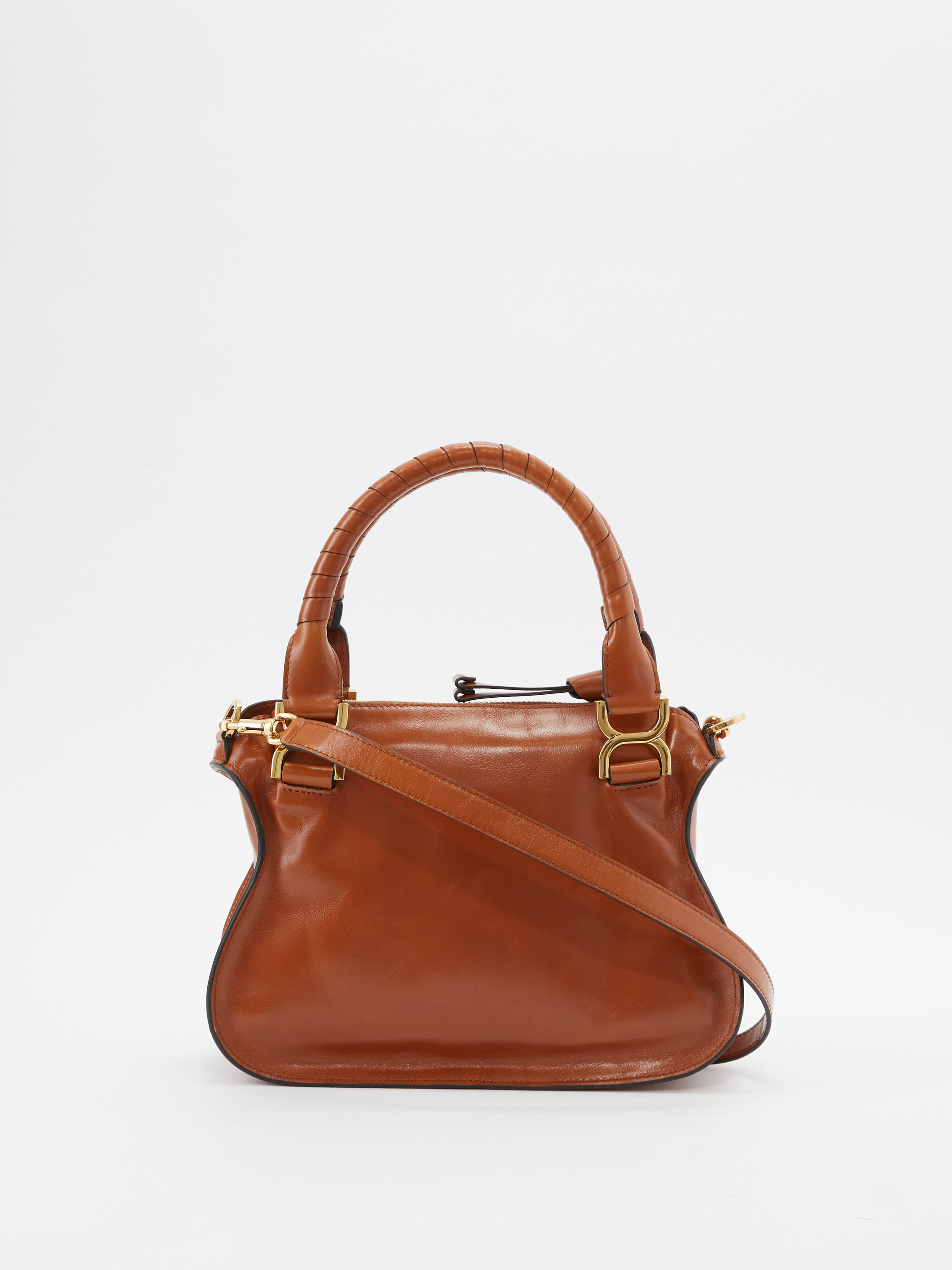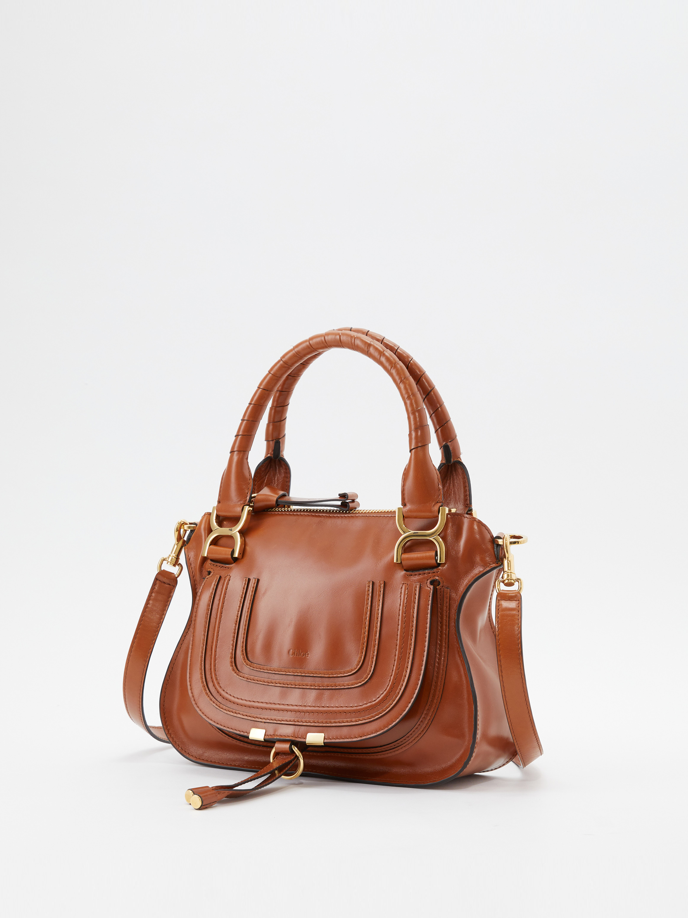Die Handtasche 'Marcie Small' in Clay Brown von Chloé in Braun wurde aus Kalbsleder gefertigt und mit goldener Hardware abgerundet. Der Griff bietet die Tragevariante in der Hand oder über der Schulter. Das geräumige Fach sowie zahlreiche Innenfächer bieten Stauraum für alles, was man im Alltag braucht. Das schlichte Design macht die Tasche zu einem sportlich-eleganten Klassiker.