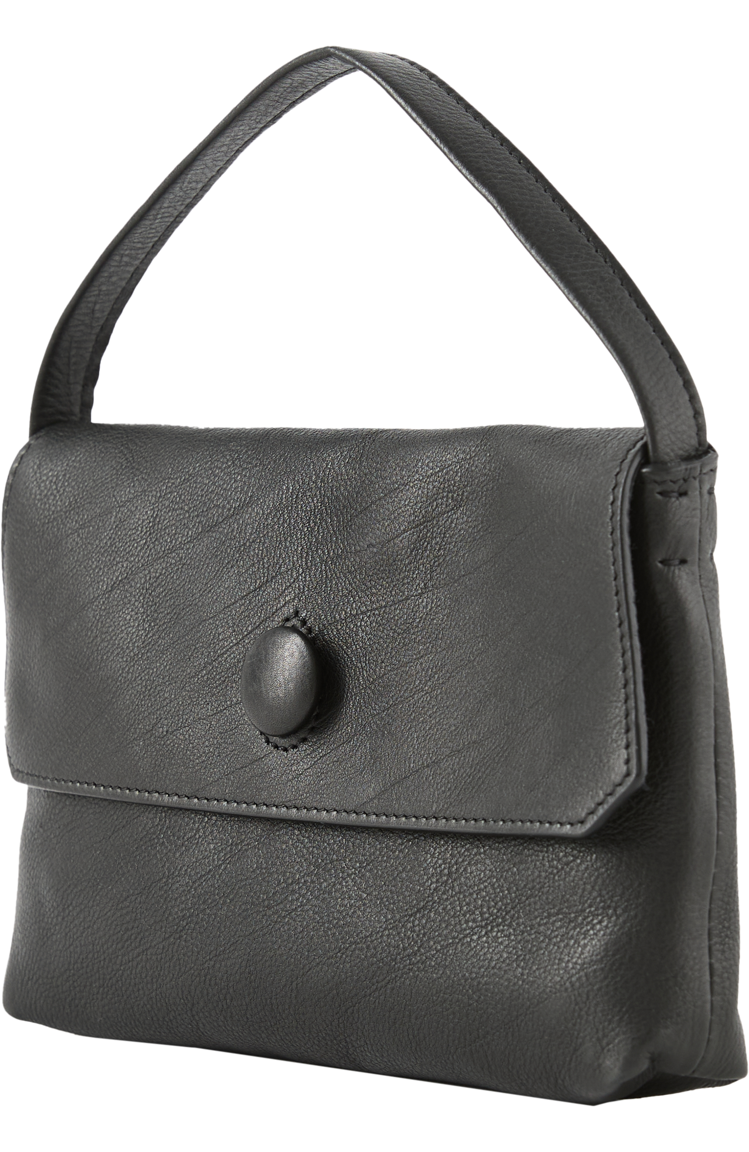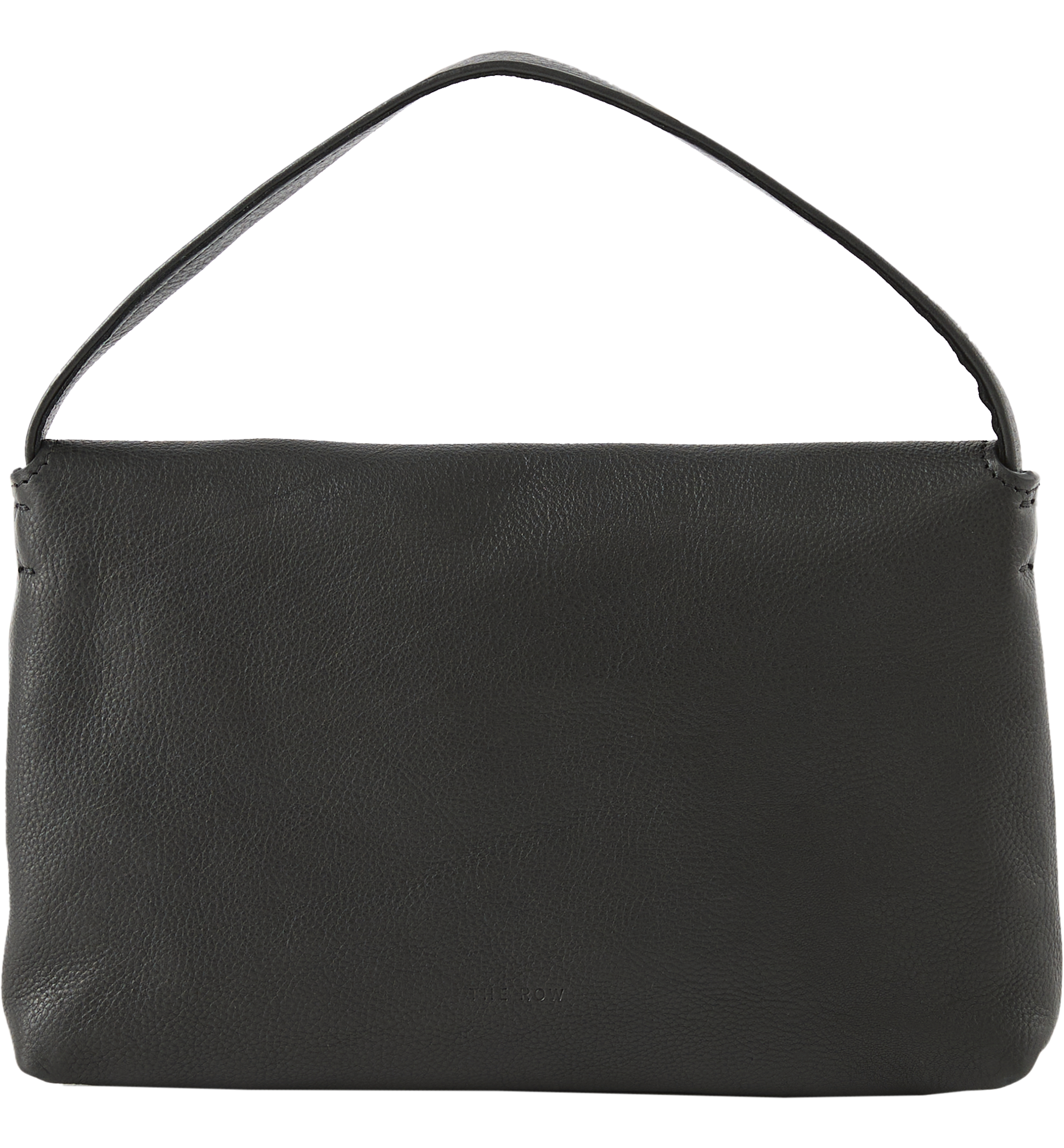 Die Handtasche 'Sally' in Schwarz von The Row wurde aus genarbtem Kalbsleder gefertigt und besticht durch die weiche Haptik und den leicht dezenten Glanz. Die flachen Henkel, der Überschlag mit lederbezogenem Knopfverschluss und das kleine Einschubfach machen dieses Modell zu einem wahren Eyecatcher.