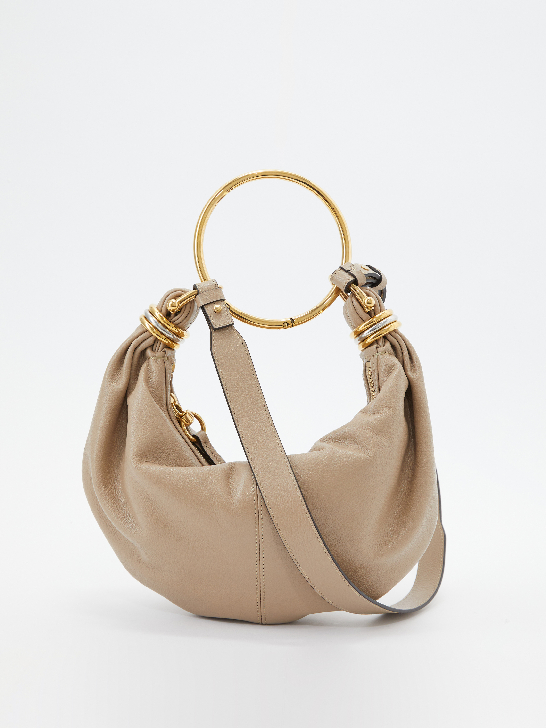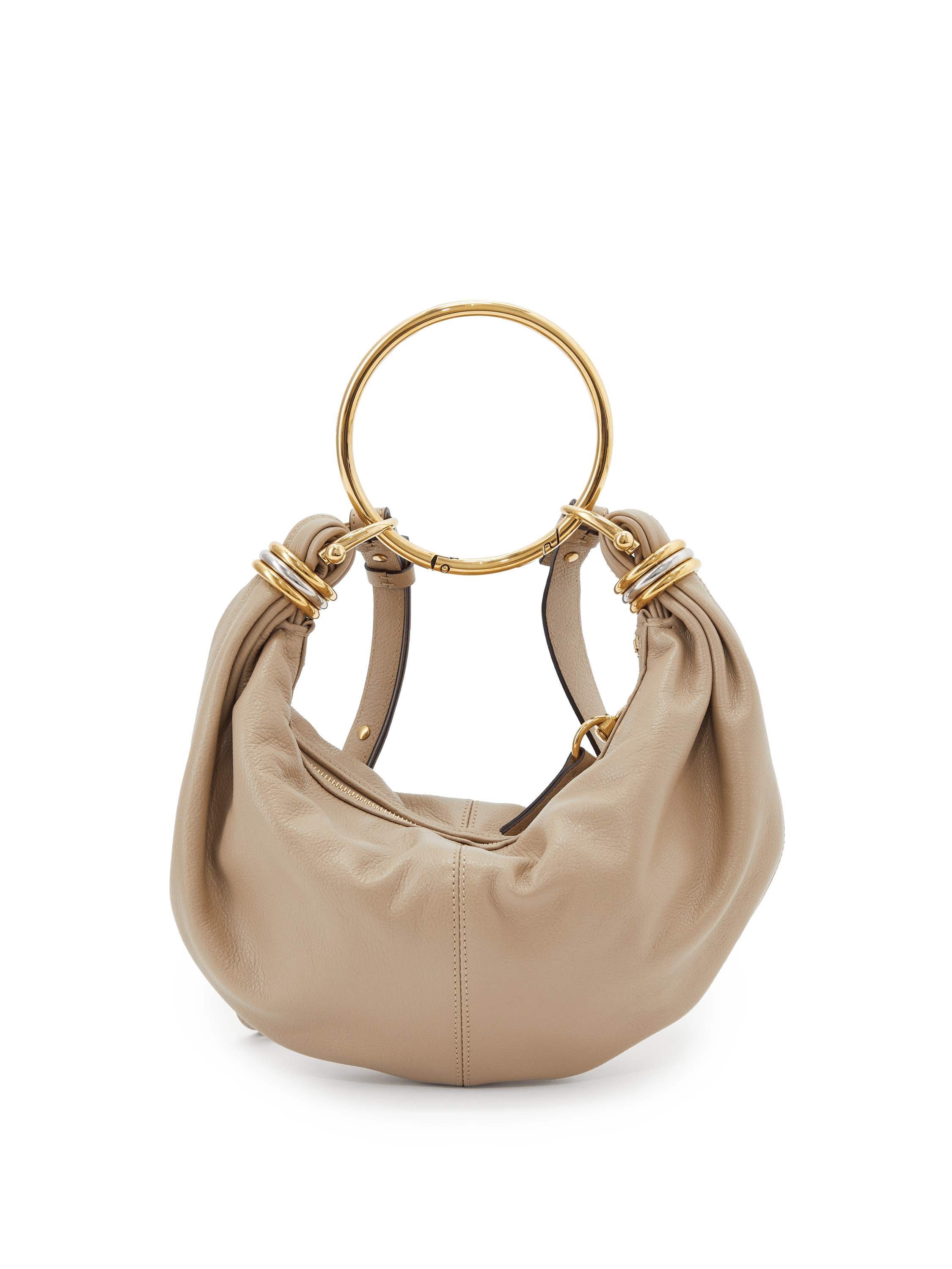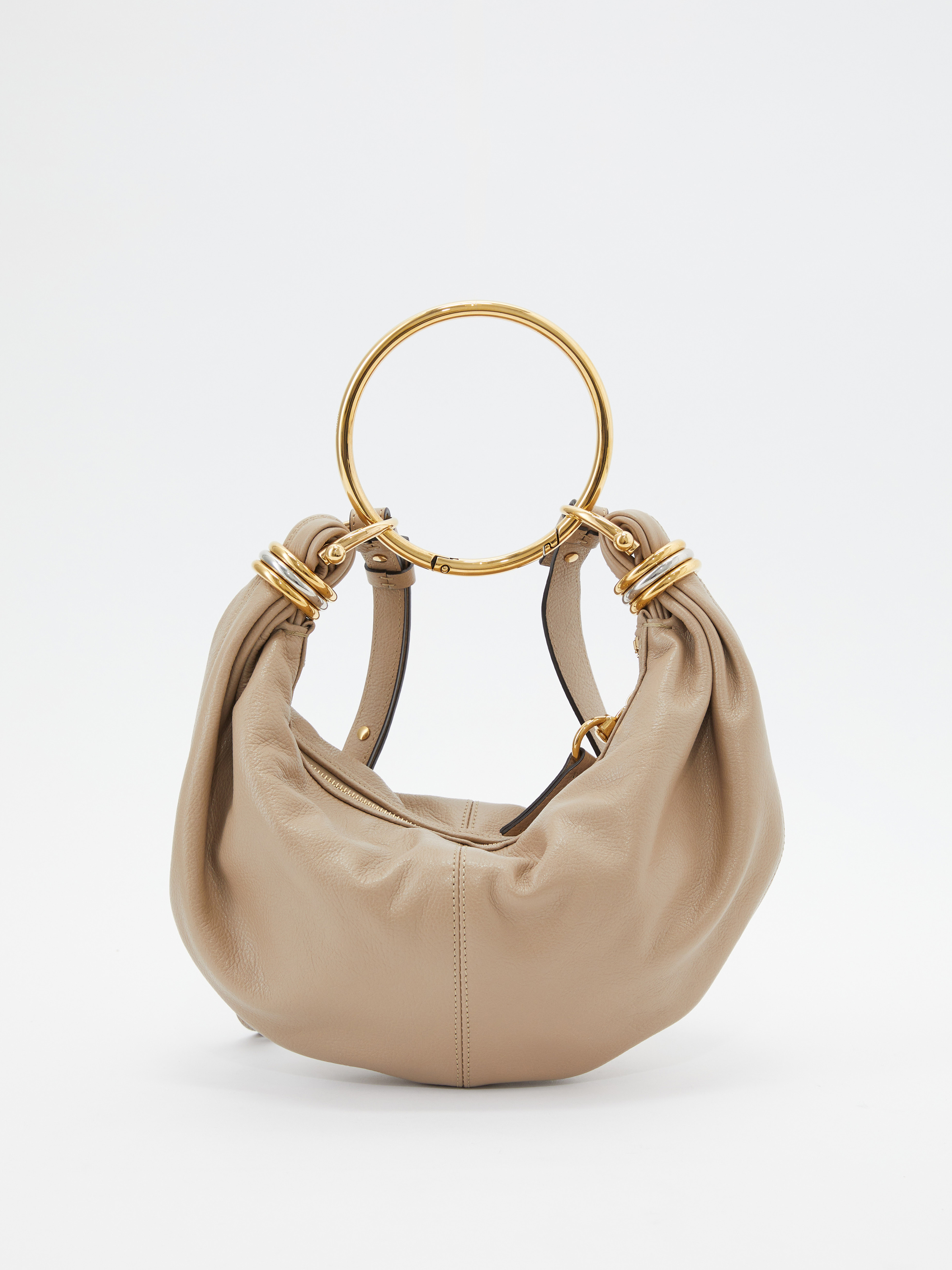Die Handtasche 'Bracelet Small' in Boyish Brown von Chloé wurde aus genarbtem Kalbsleder gefertigt und mit goldener Hardware abgerundet. Der Griff bietet die Tragevariante in der Hand oder über der Schulter. Die Handtasche besticht durch die goldenen Handgelenkschlaufe und durch die zweifarbigen Ringe an den Enden wird das Design abgerundet.