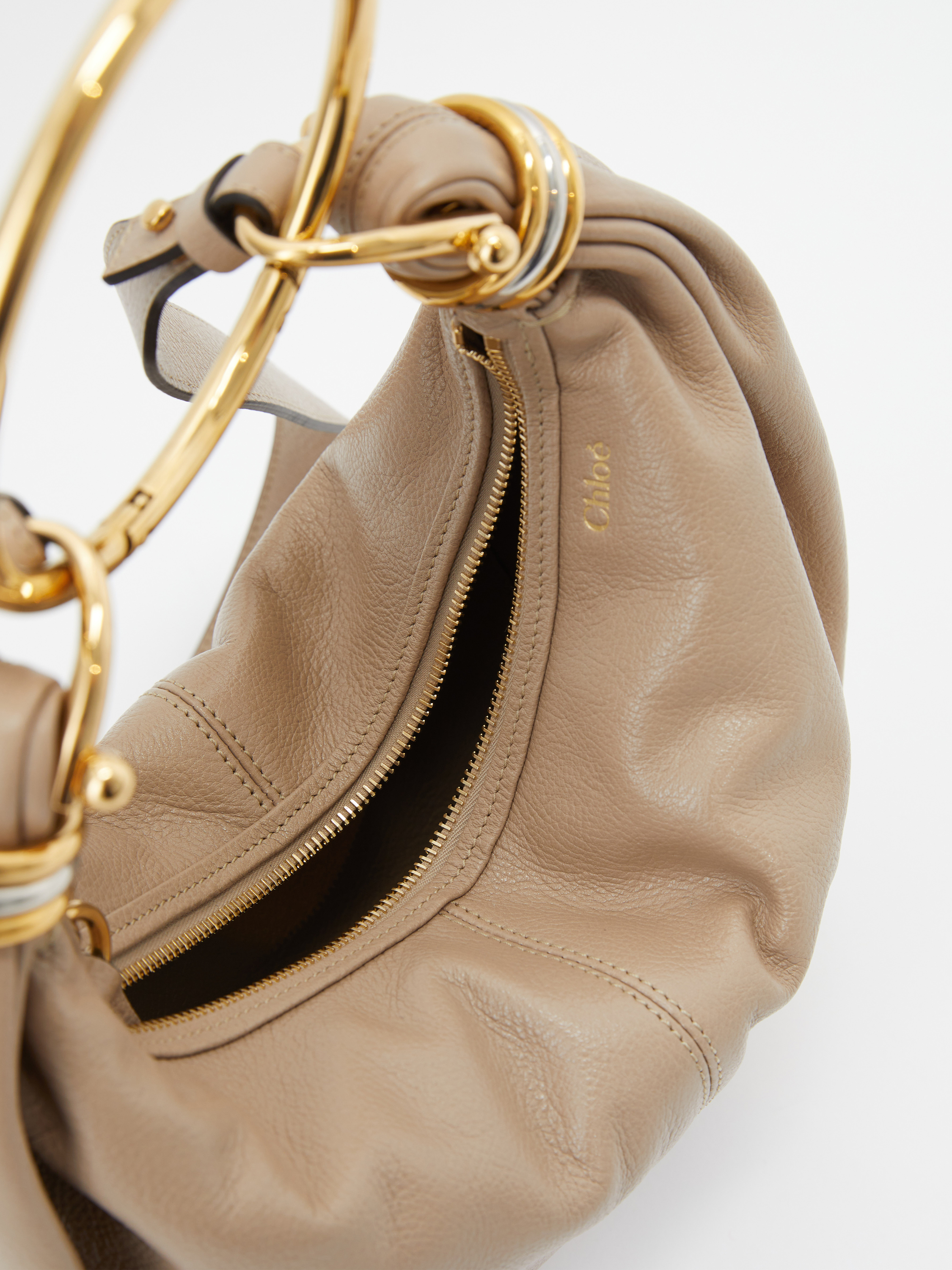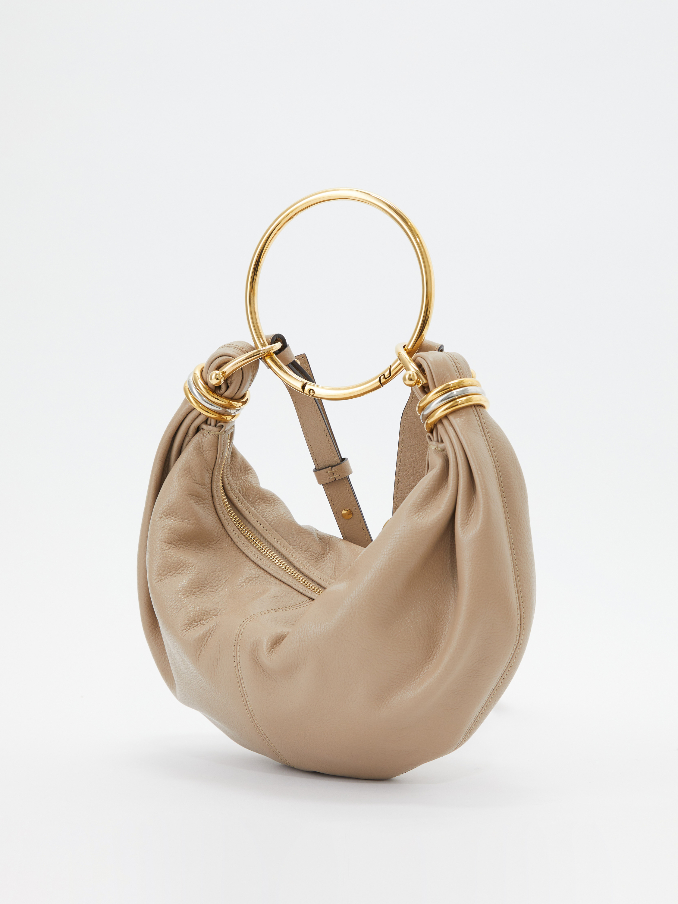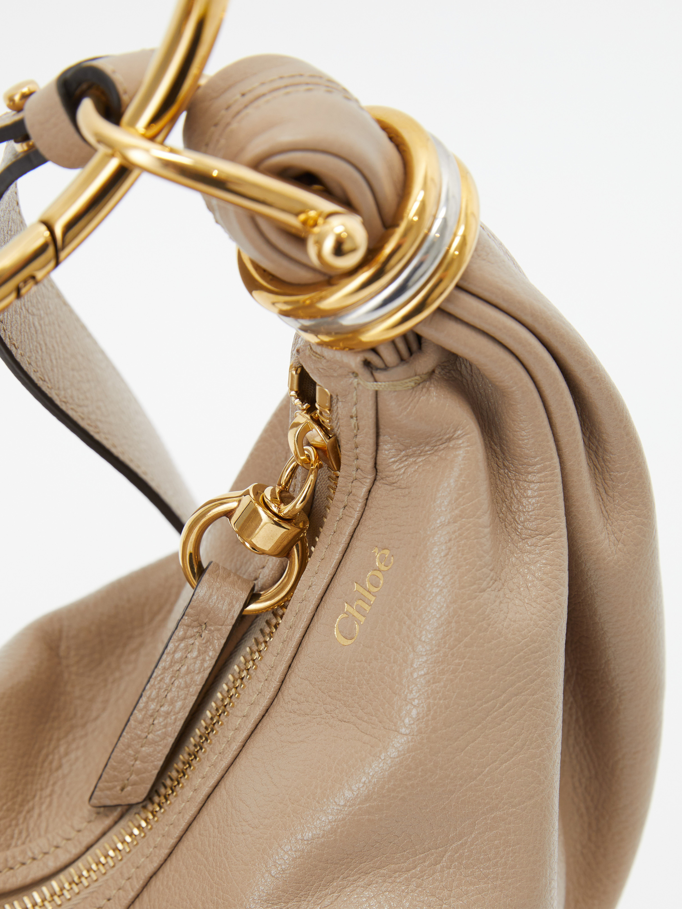 Die Handtasche 'Bracelet Small' in Boyish Brown von Chloé wurde aus genarbtem Kalbsleder gefertigt und mit goldener Hardware abgerundet. Der Griff bietet die Tragevariante in der Hand oder über der Schulter. Die Handtasche besticht durch die goldenen Handgelenkschlaufe und durch die zweifarbigen Ringe an den Enden wird das Design abgerundet.