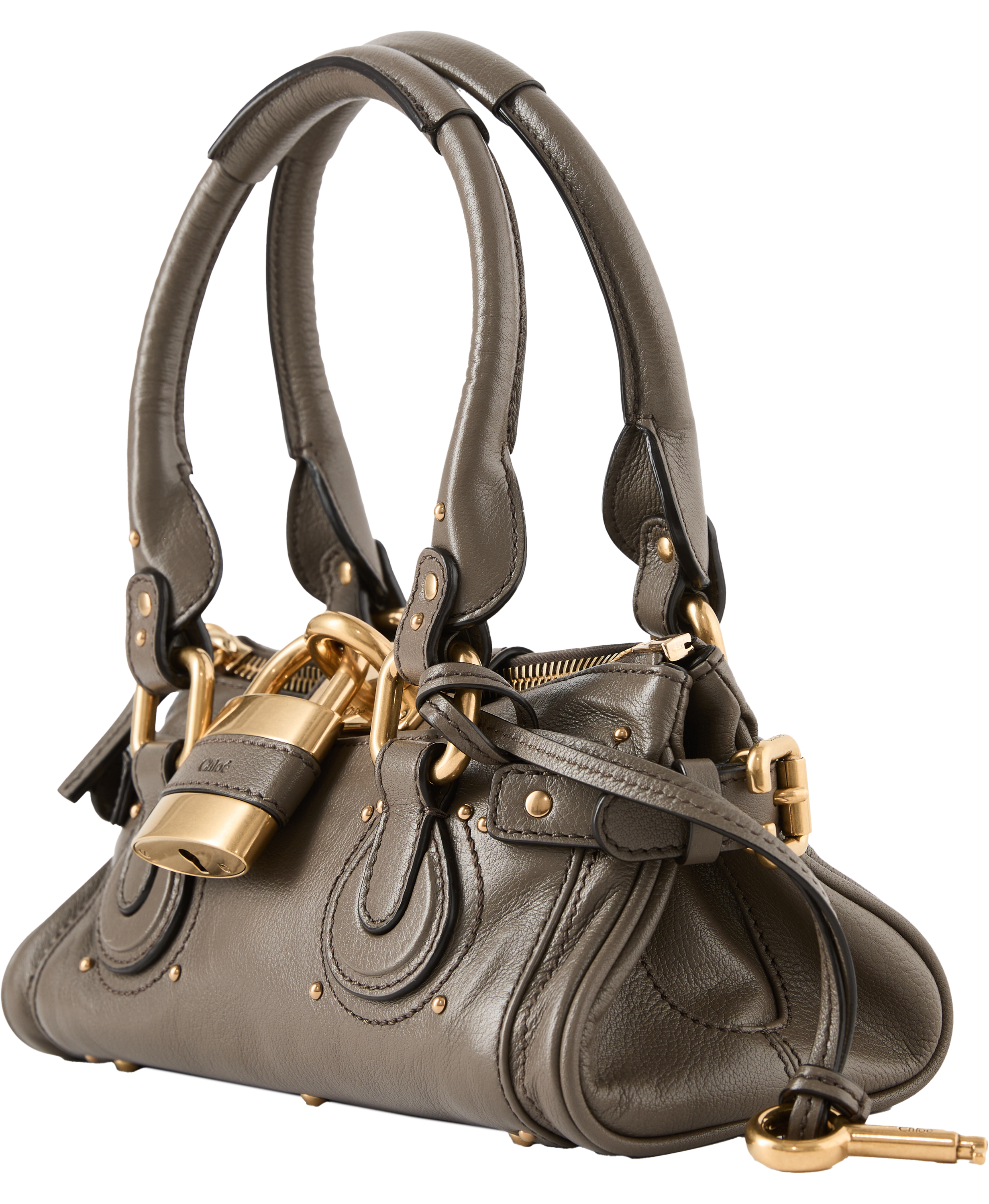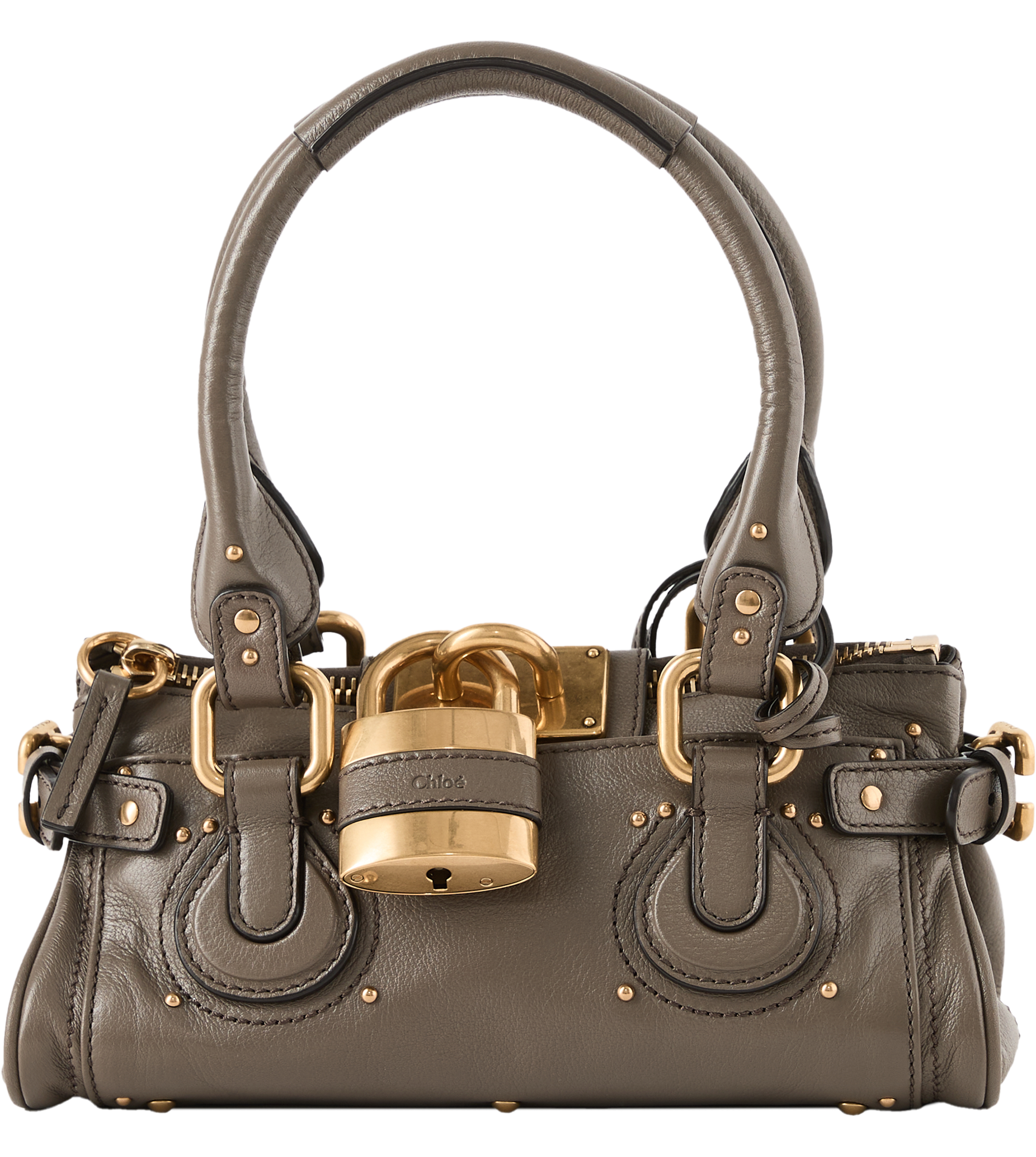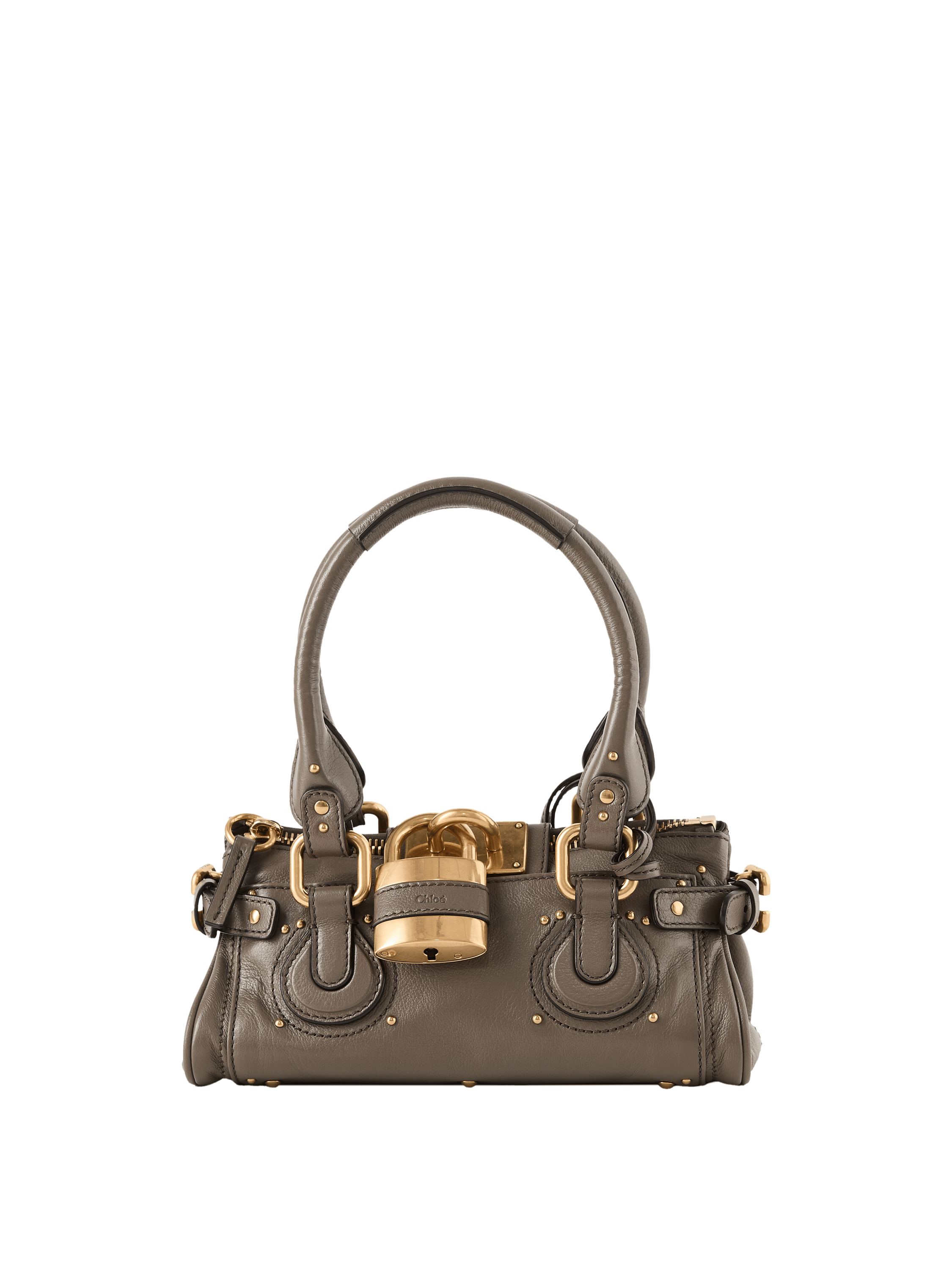 Die Schultertasche 'Paddington' von Chloé in Flannel Grey wurde aus genarbtem Büffelleder gefertigt und besticht durch die lockere Silhouette. Der Reißverschluss, das übergroße Vorhängeschloss mit Schlüssel und die C-förmige Schnalle bilden ein unverkennbares Detail. Die Tragevariante in der Hand oder über der Schulter macht dieses Modell zu einem echten Hingucker.