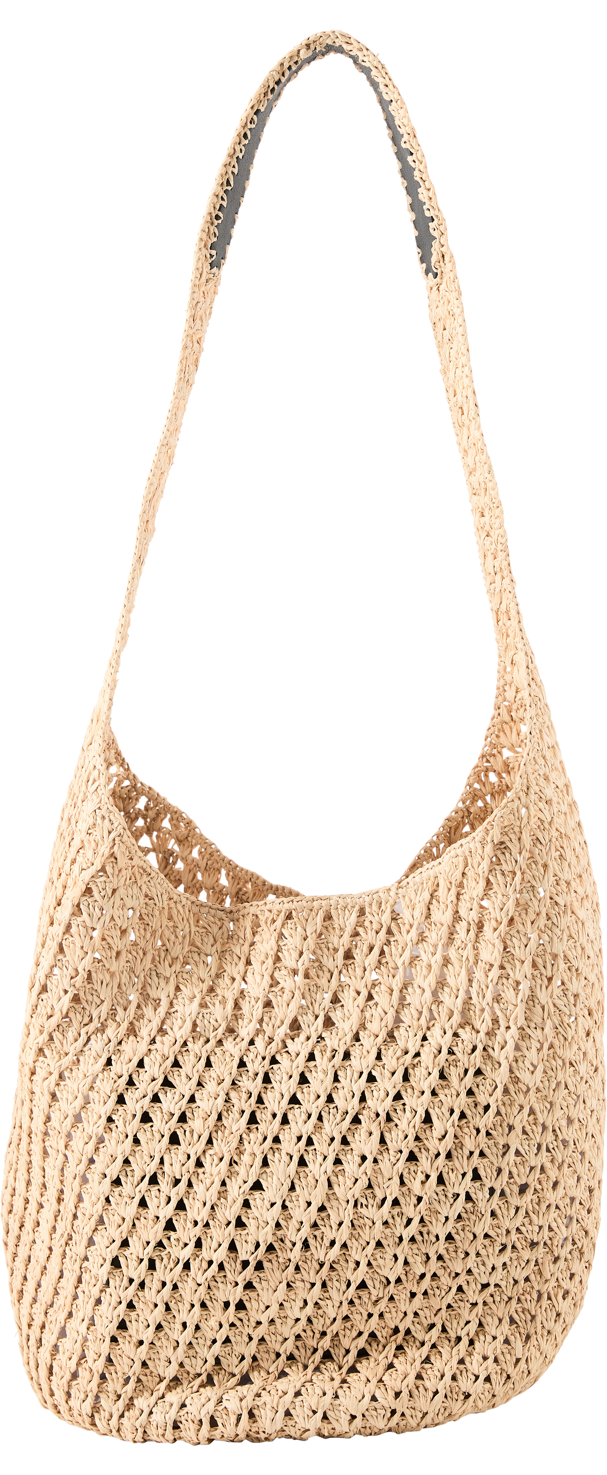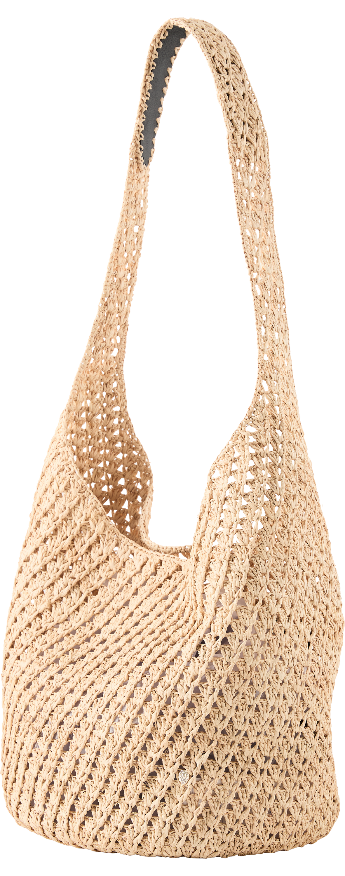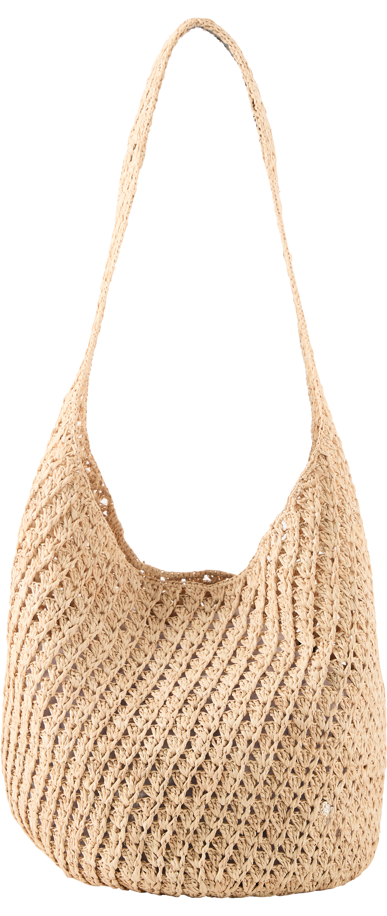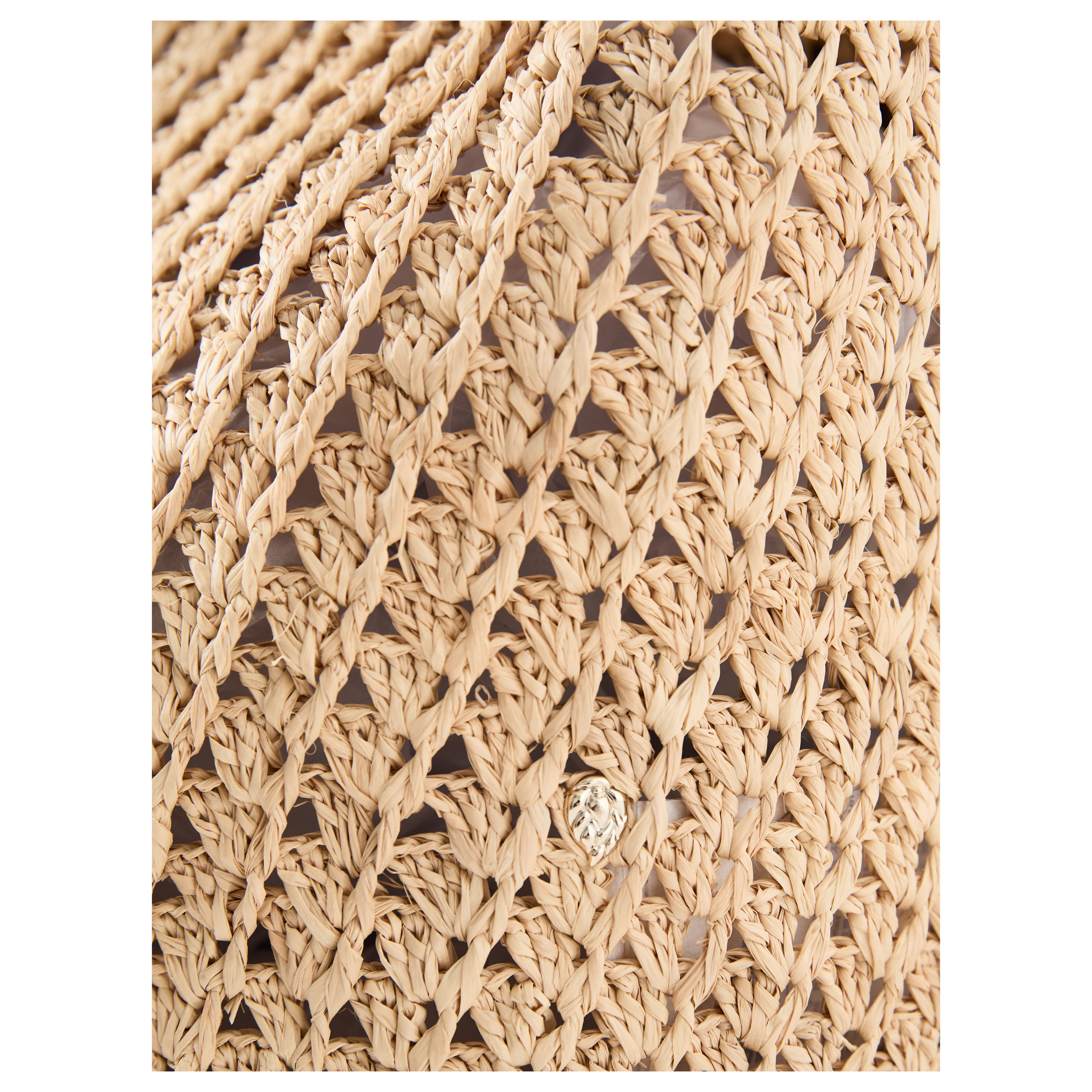 Die Schultertasche 'Lani Sac' in Beige von HELEN KAMINSKI wurde aus handgehäkeltem Bast gefertigt und besticht durch den strukturierten Iri-Stich. Die lässige Form, das Lederdetail sowie die Innentasche mit einem Fach prägen das sommerlich-elegante Design.