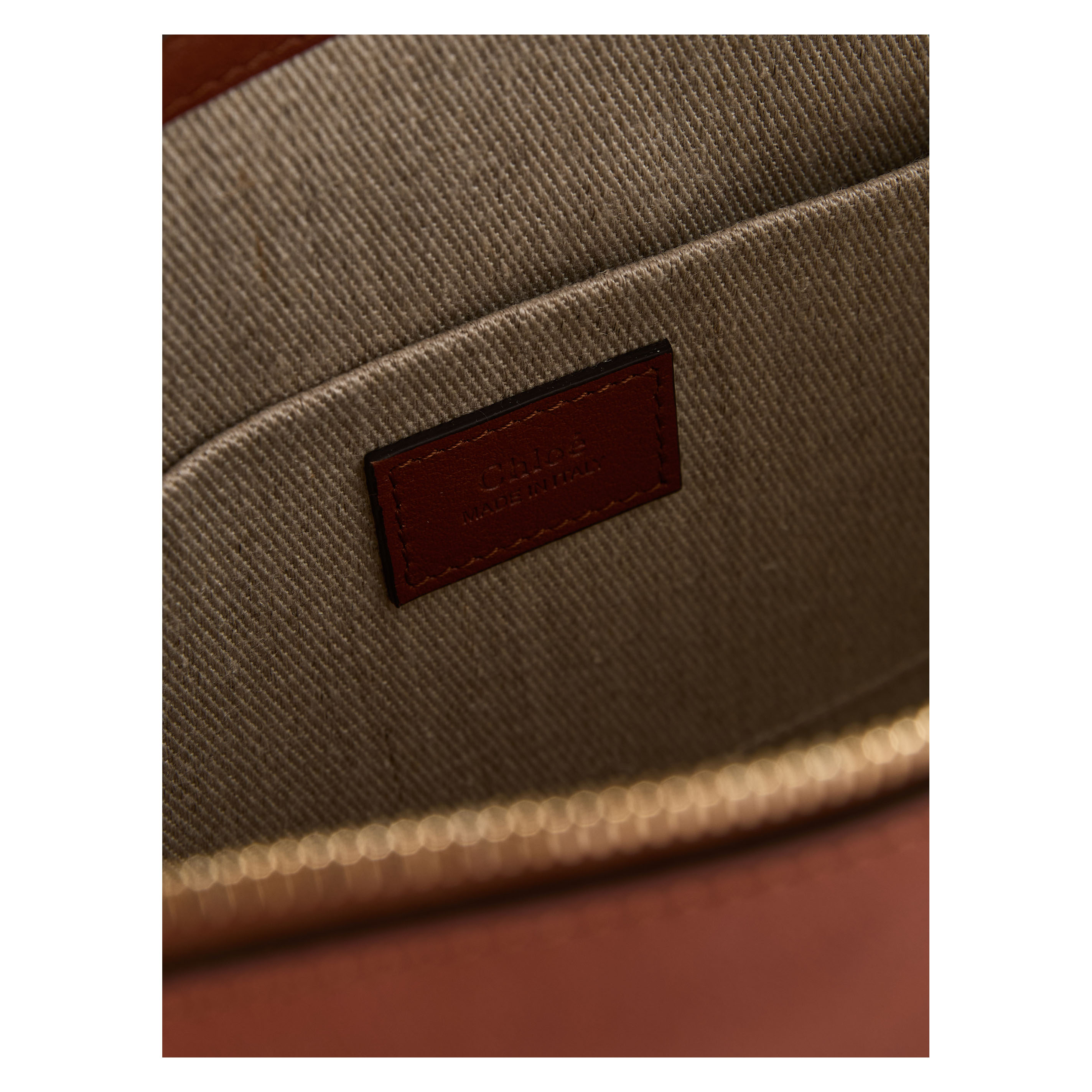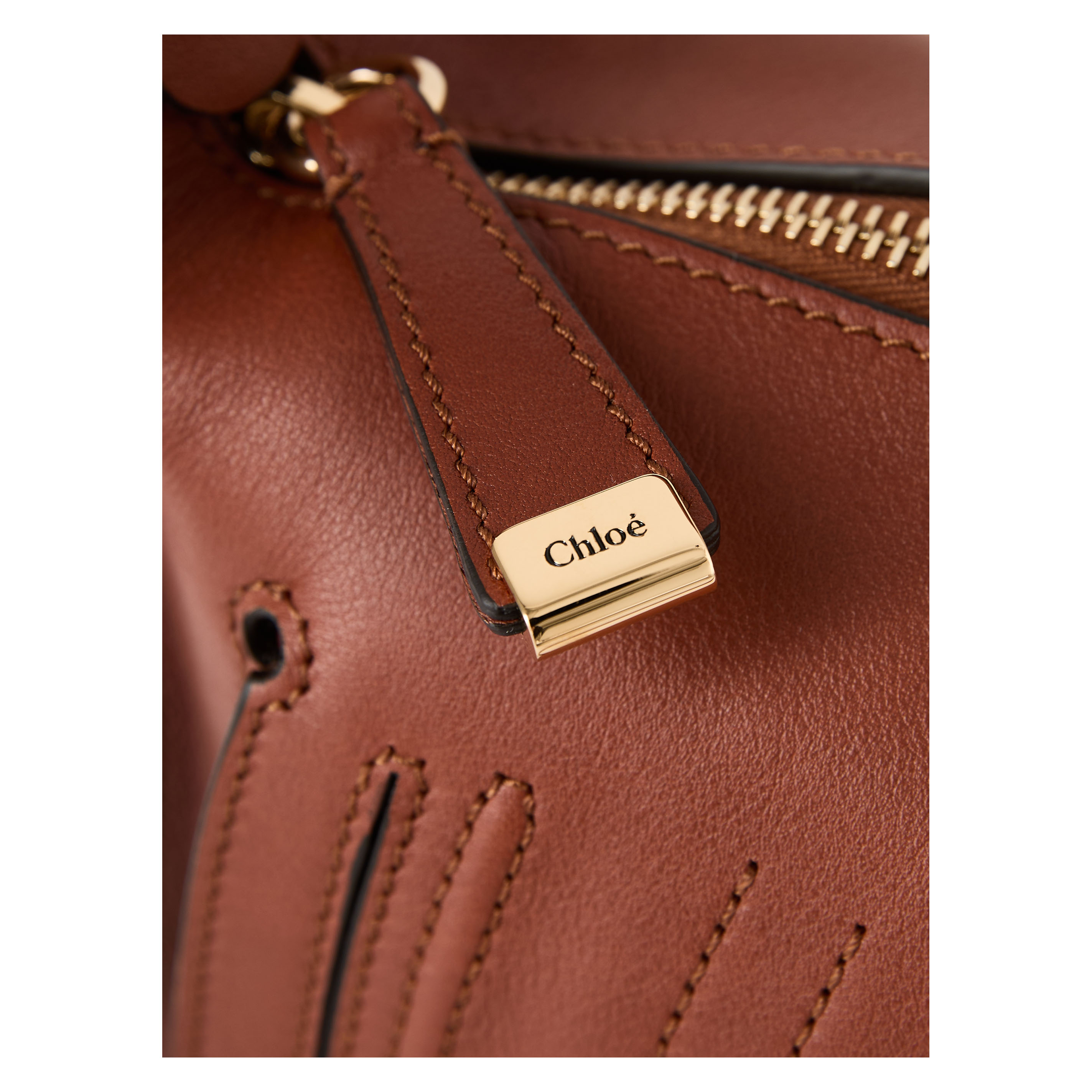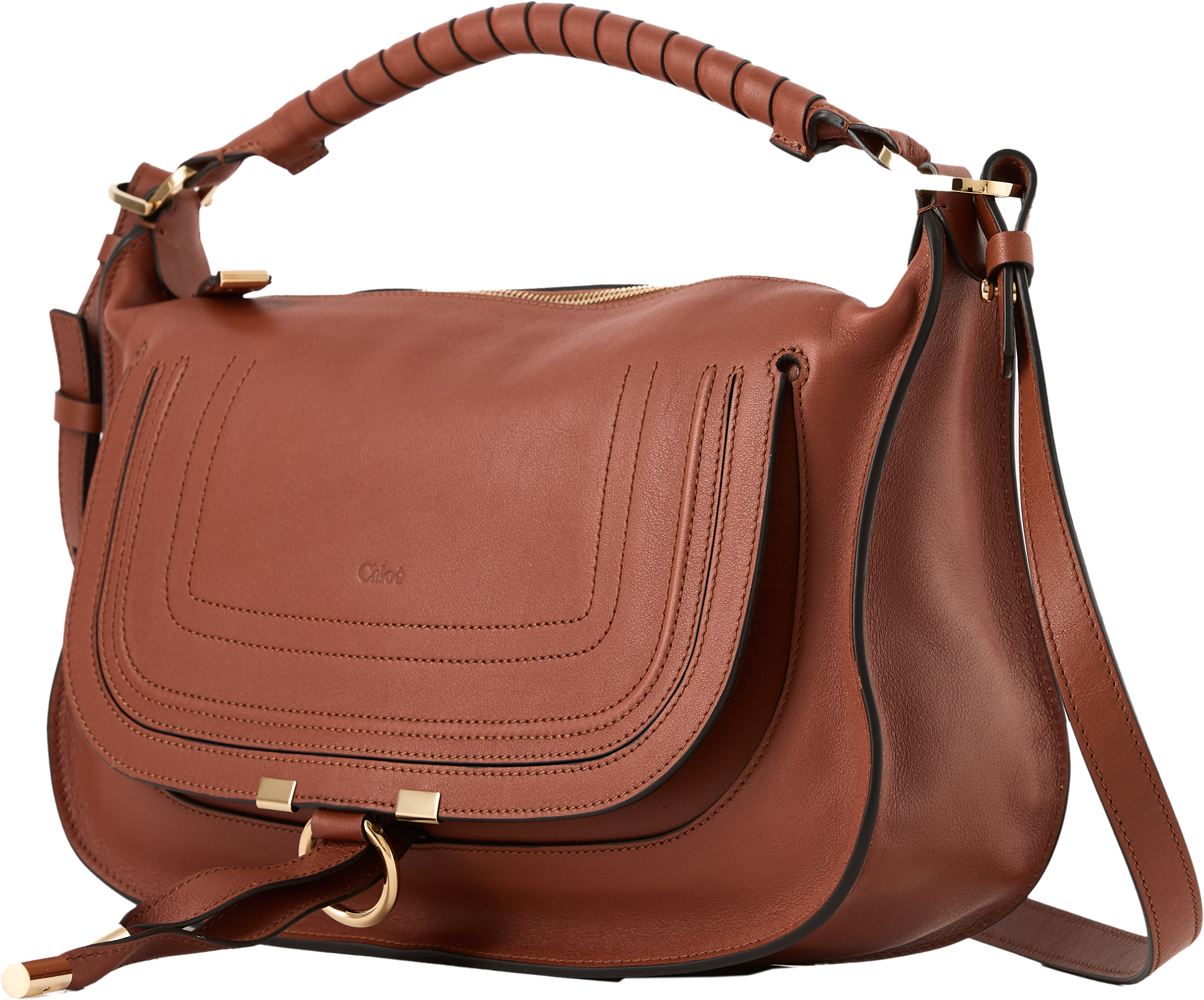 Die Handtasche 'Marcie Hobo' von Chloé in Clay Brown wurde aus glattem Kalbsleder gefertigt und besticht durch die Neuinterpretation der ikonischen Day Bag mit einer lockereren Form. Die Sattelnähte, der einzelne handgewickelte Griff und die goldfarbenen Beschläge machen die Tasche zu einem sportlich-eleganten Klassiker. Die herabhängenden Lederquasten der Linie schließen den Überschlag.