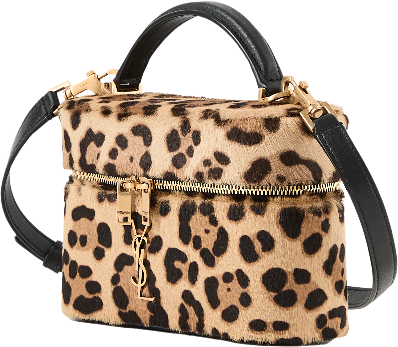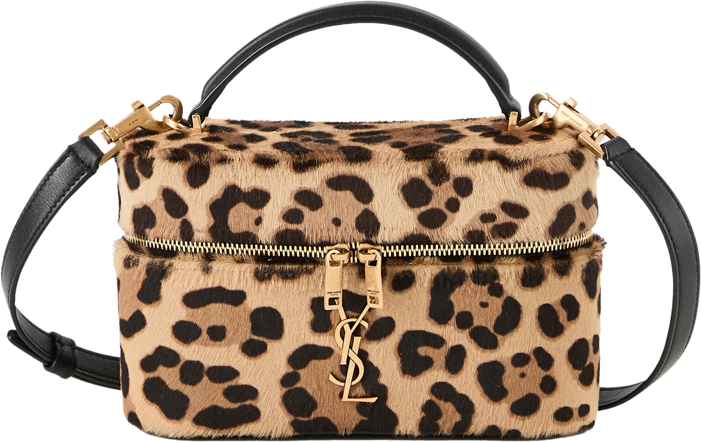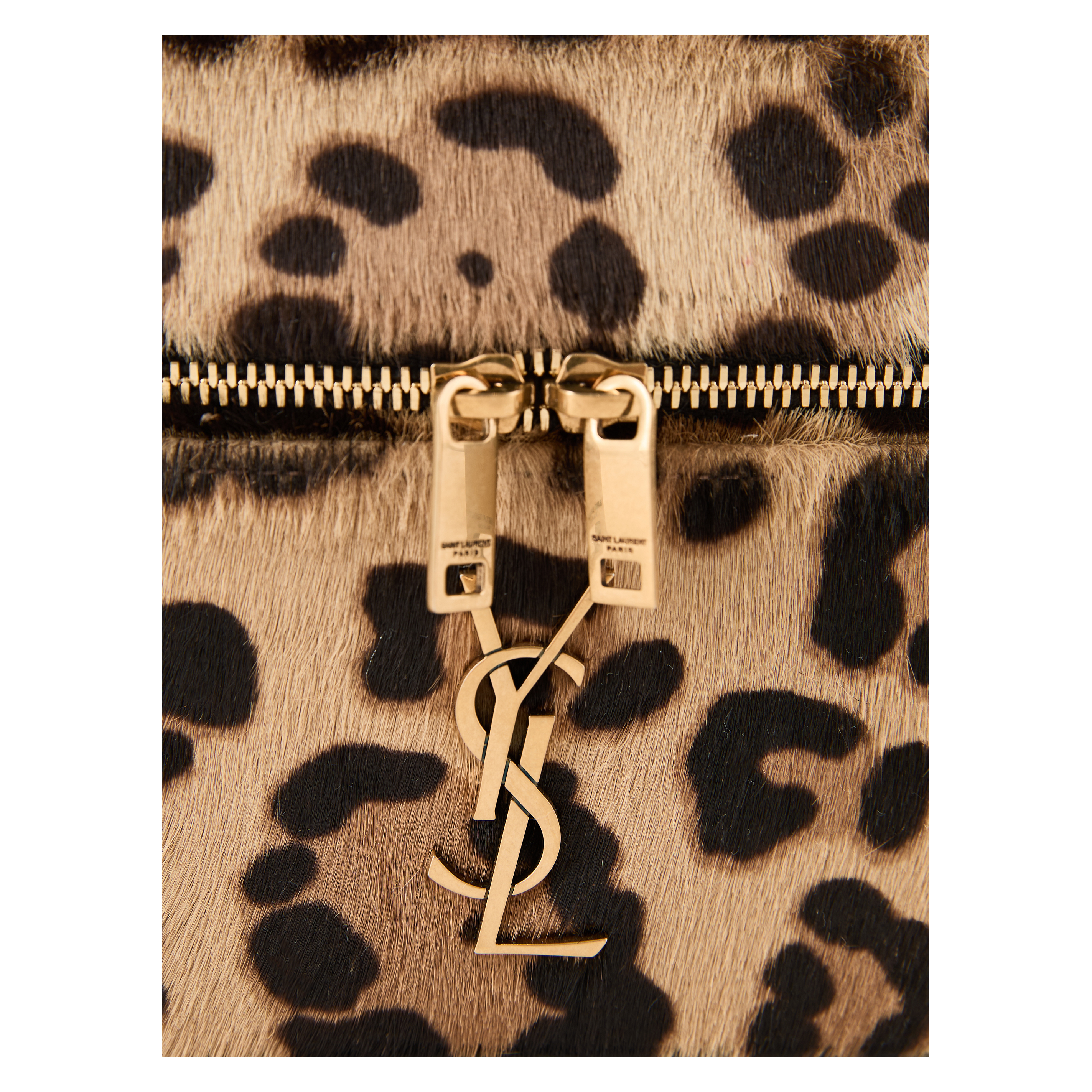 Die Handtasche 'Gaby' in Braun von Saint Laurent wurde aus hochwertigem Kalbshaar gefertigt und besticht durch die kompakte Silhouette. Das Leopardenmuster, die Cassandre-Hardware und der Zwei-Wege-Reißverschluss machen das Modell zu einem eleganten Klassiker. Die Tasche kann über der Schulter oder in der Hand getragen werden.